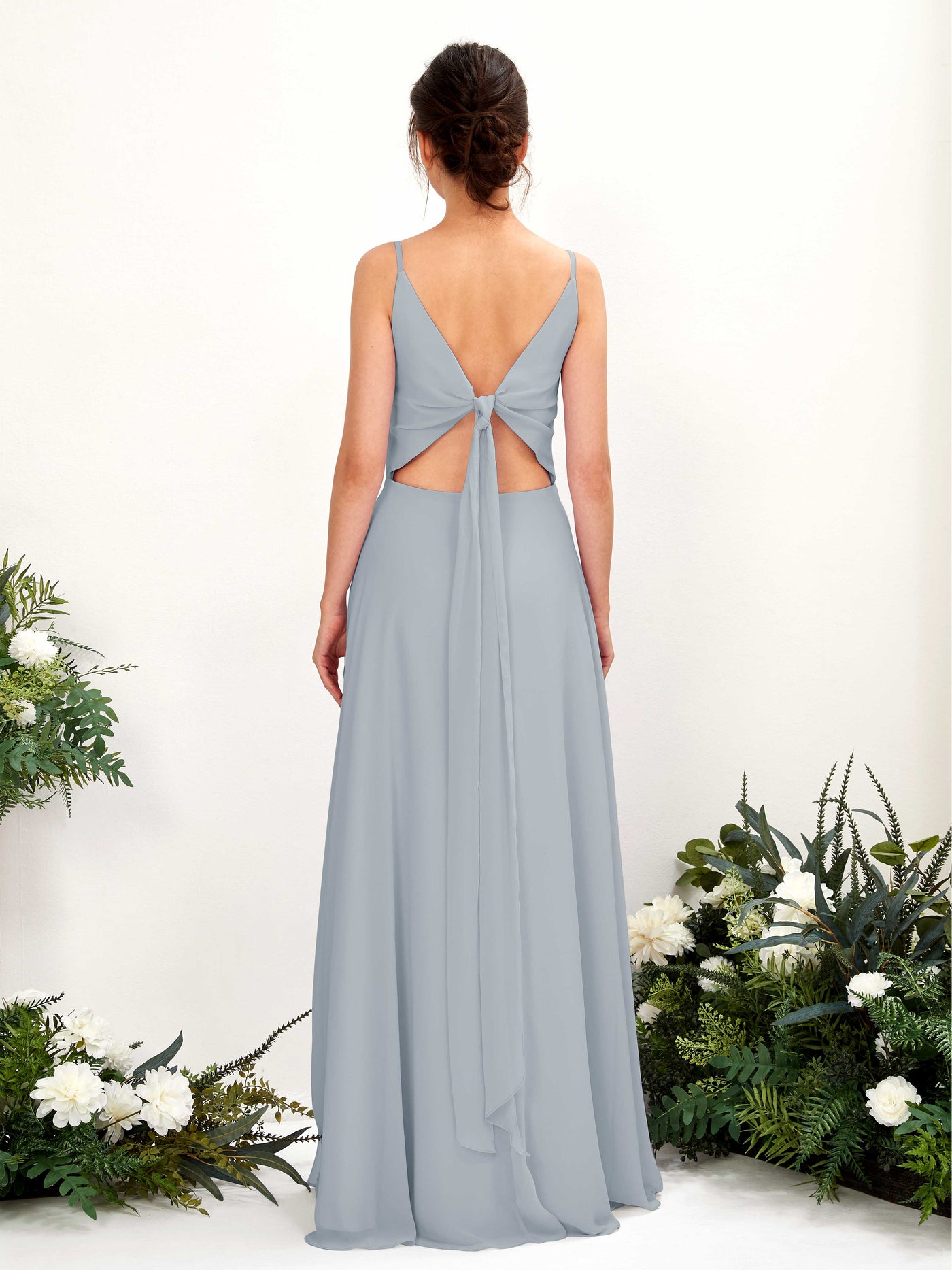 Carlyna Elsa A-Line Steel Gray Bridesmaid Dress Maxi Sleeveless V-Neck Dress Back View