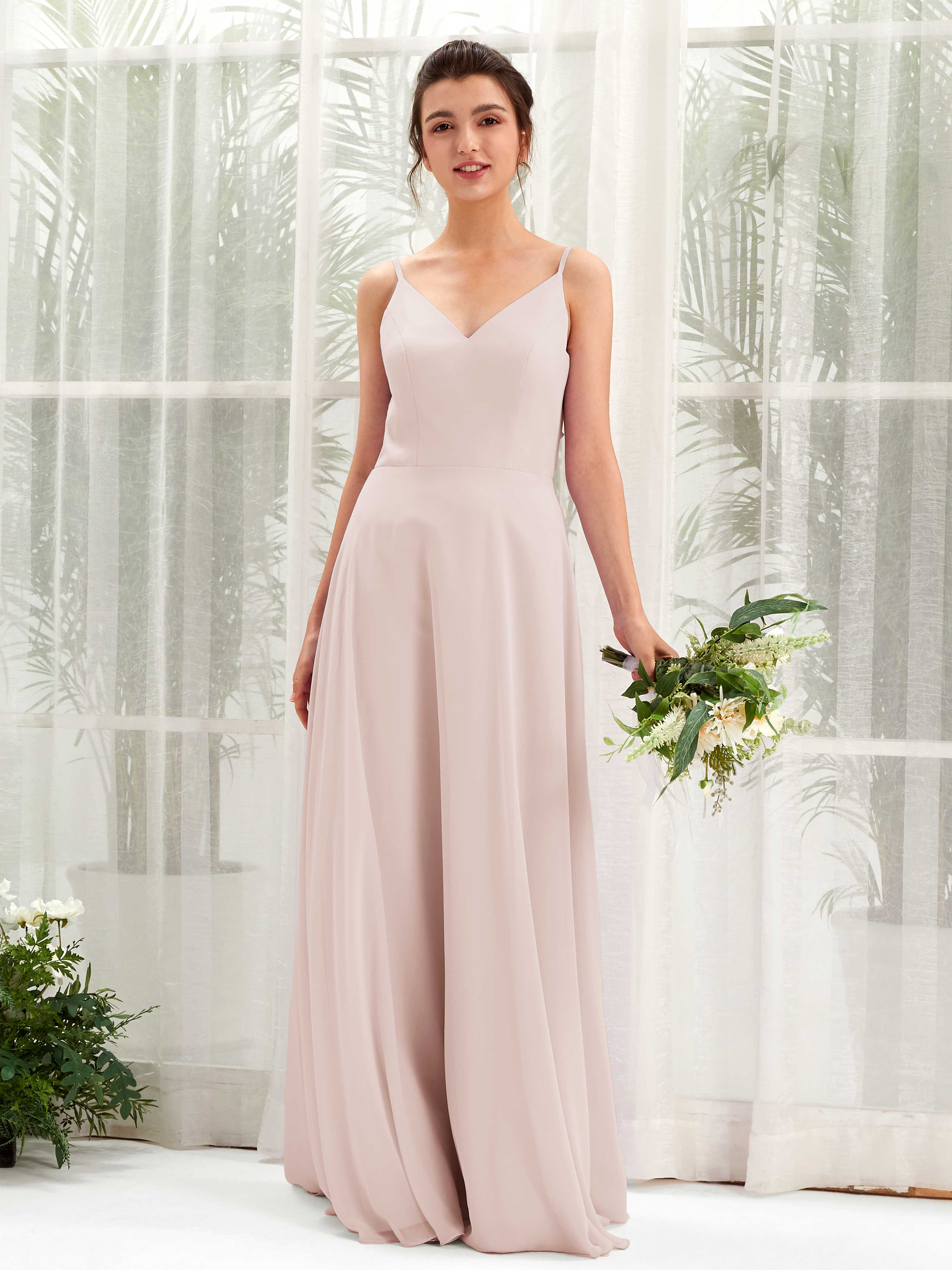 Carlyna Elsa A-Line Champagne Rose Bridesmaid Dress Maxi Sleeveless V-Neck Dress Front View