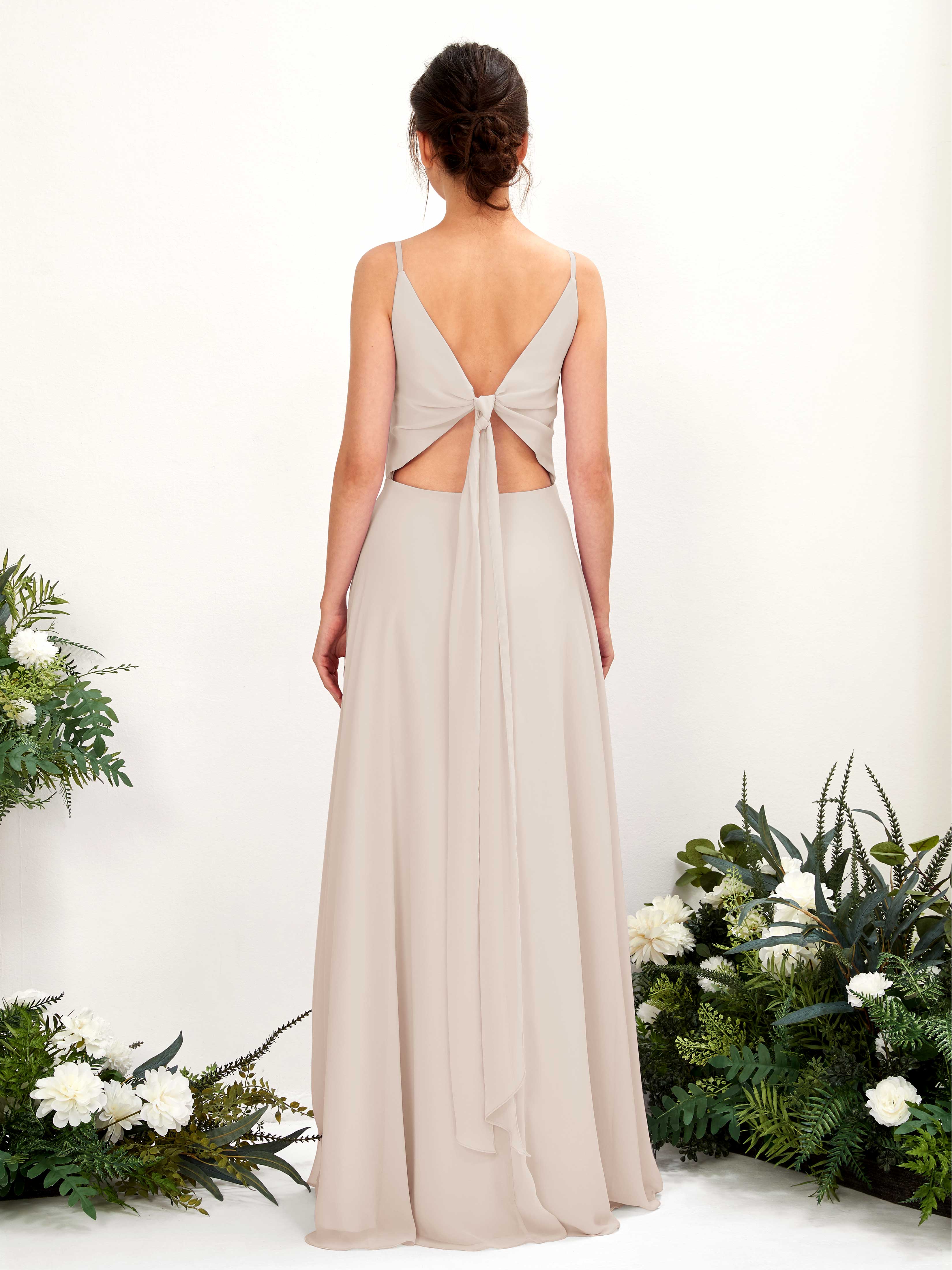 Carlyna Elsa A-Line Biscotti Bridesmaid Dress Maxi Sleeveless V-Neck Dress Back View