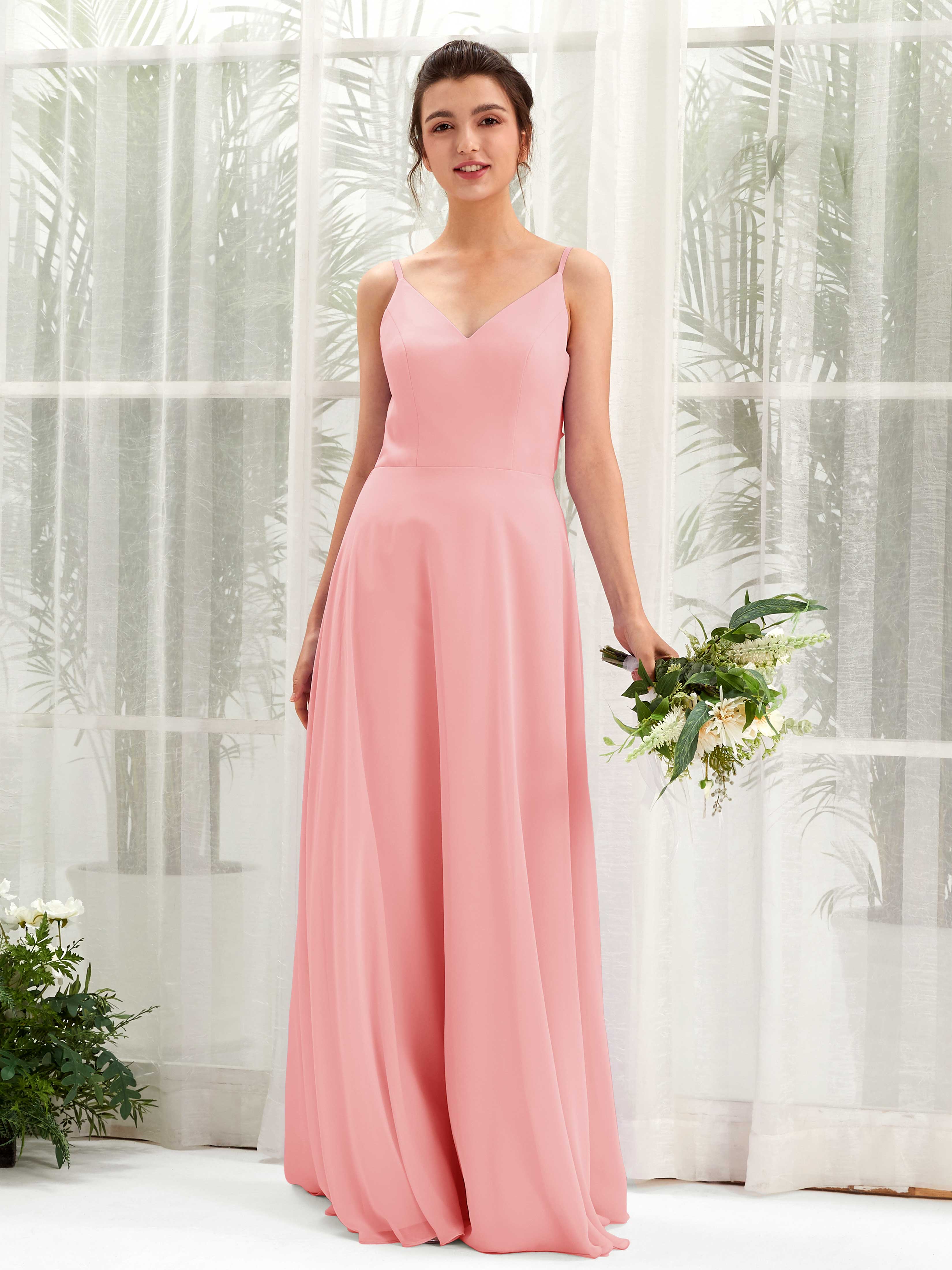 Carlyna Elsa A-Line Coral Pink Bridesmaid Dress Maxi Sleeveless V-Neck Dress Front View