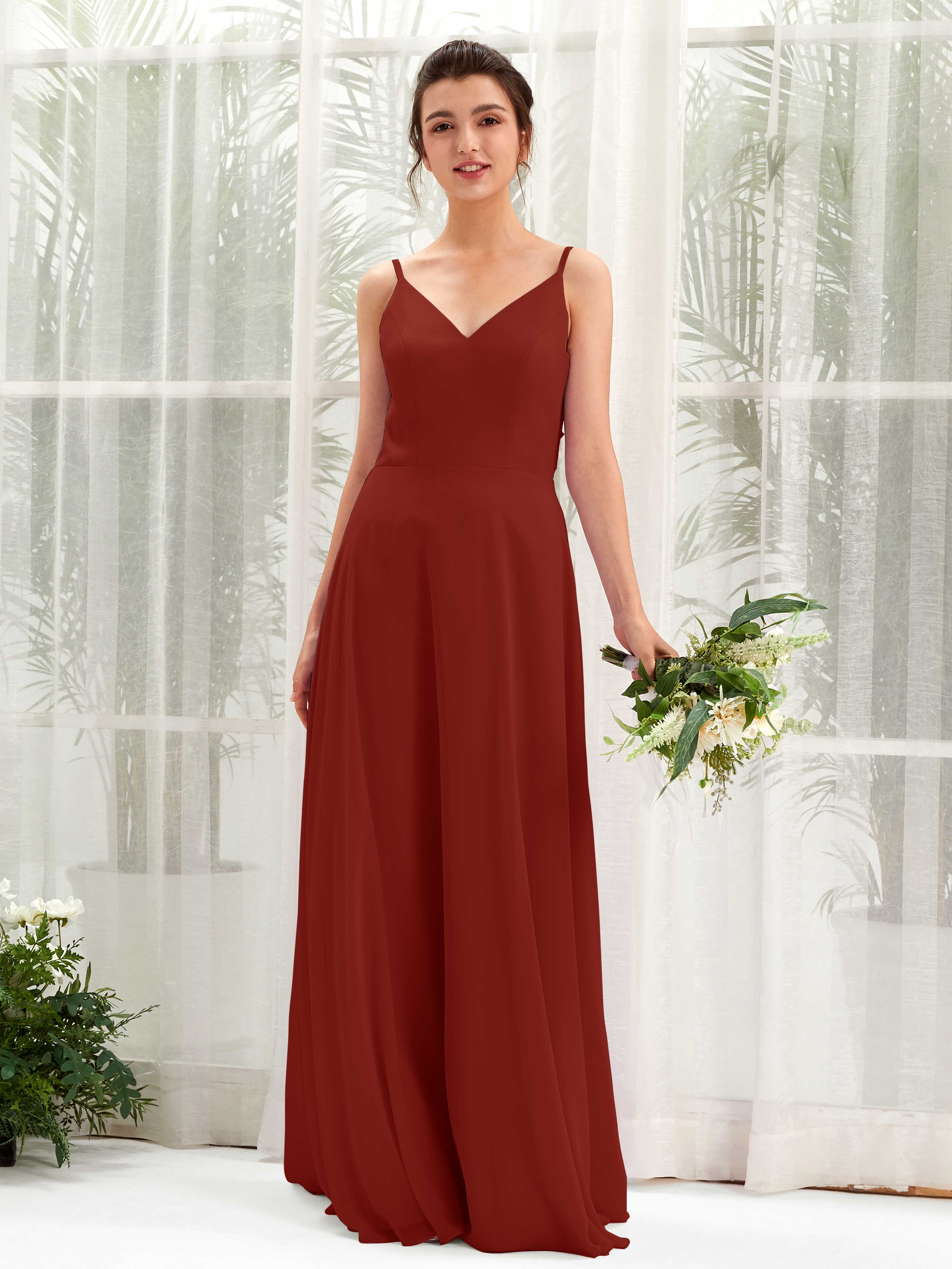 Carlyna Elsa A-Line Rust Bridesmaid Dress Maxi Sleeveless V-Neck Dress Front View