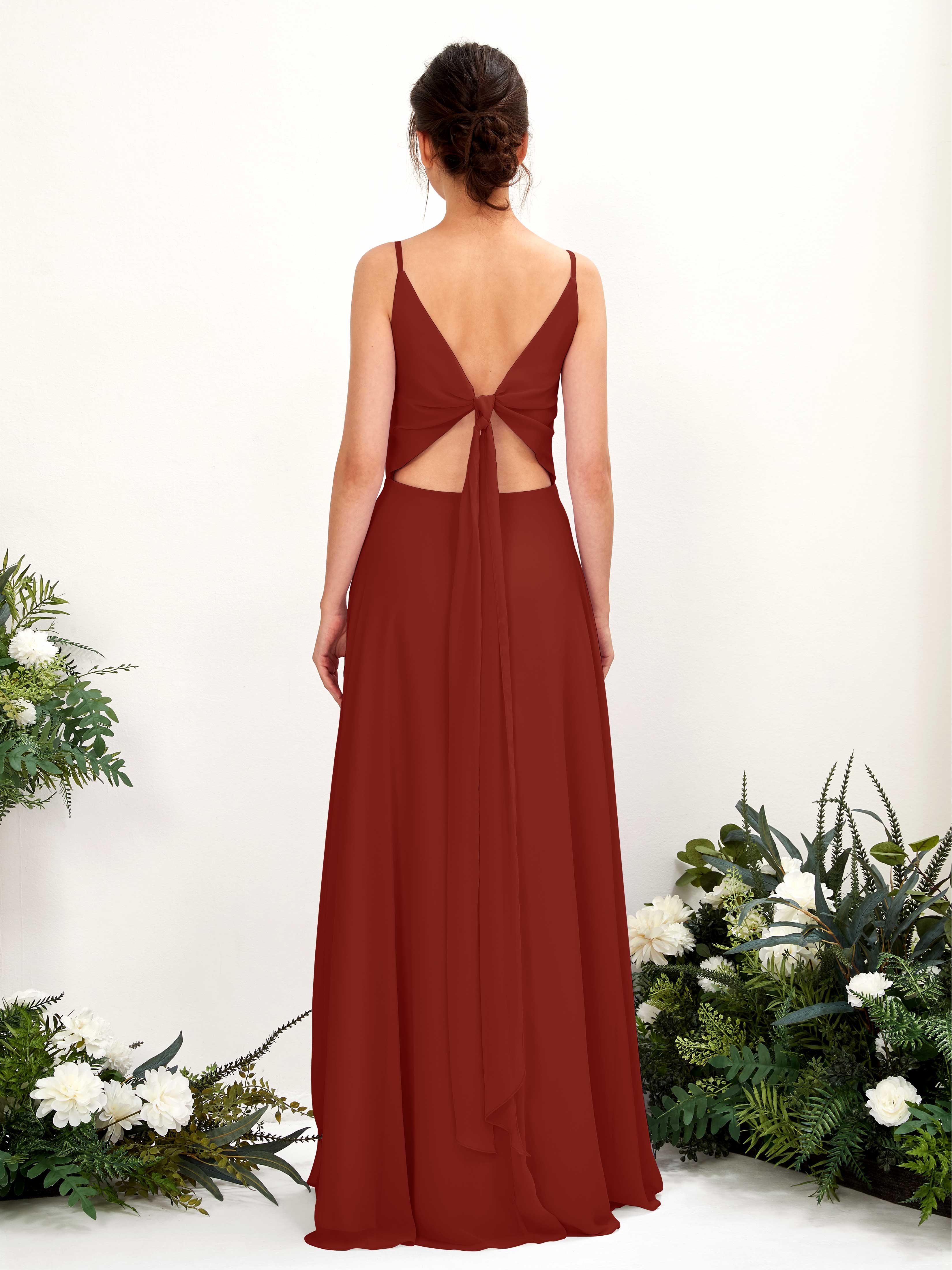 Carlyna Elsa A-Line Rust Bridesmaid Dress Maxi Sleeveless V-Neck Dress Back View