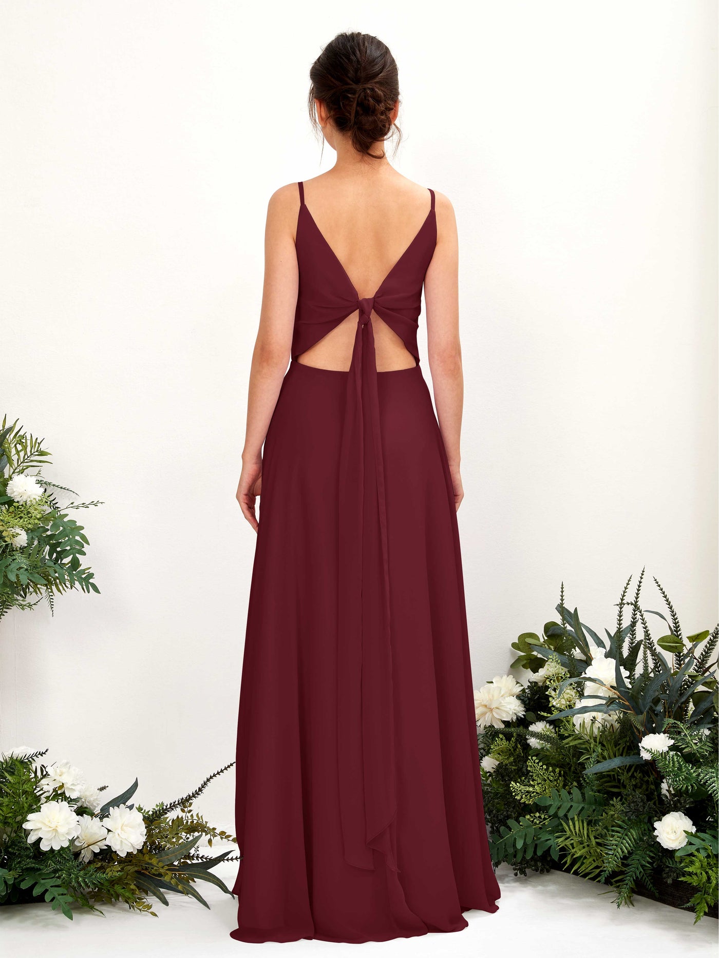 Carlyna Elsa A-Line Burgundy Bridesmaid Dress Maxi Sleeveless V-Neck Dress Back View