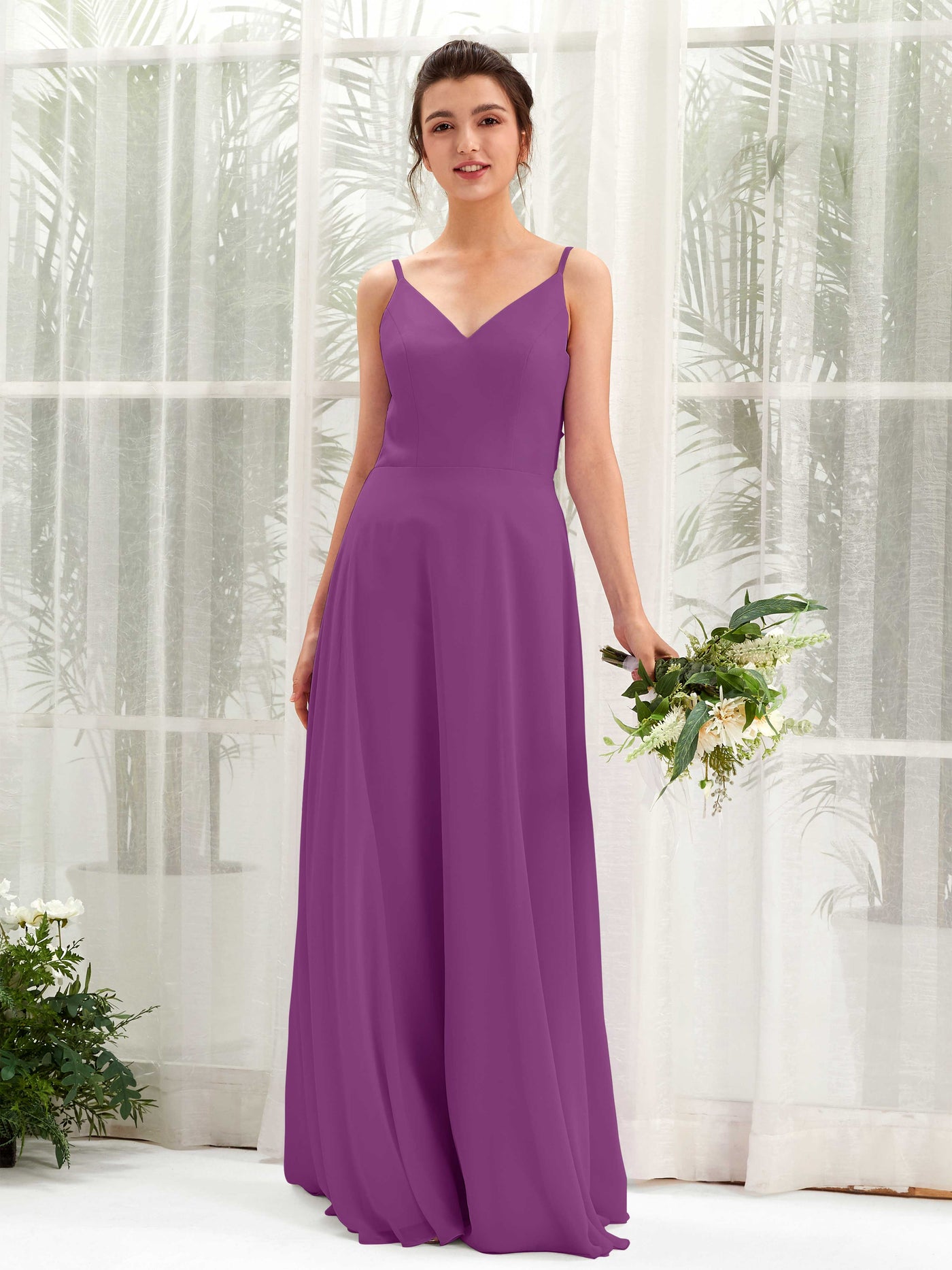 Carlyna Elsa A-Line Purple Bridesmaid Dress Maxi Sleeveless V-Neck Dress Front View