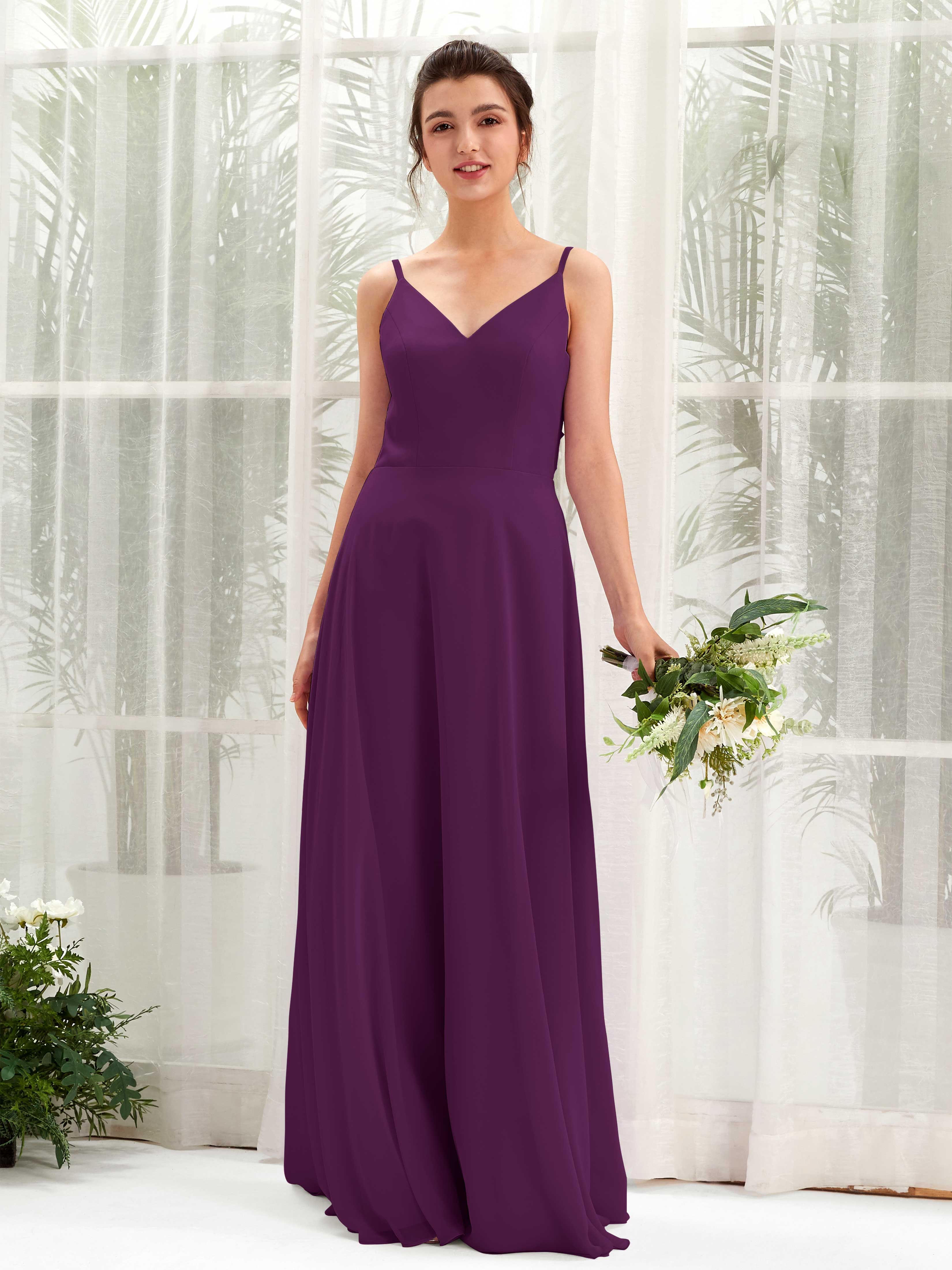 Carlyna Elsa A-Line Grape Bridesmaid Dress Maxi Sleeveless V-Neck Dress Front View