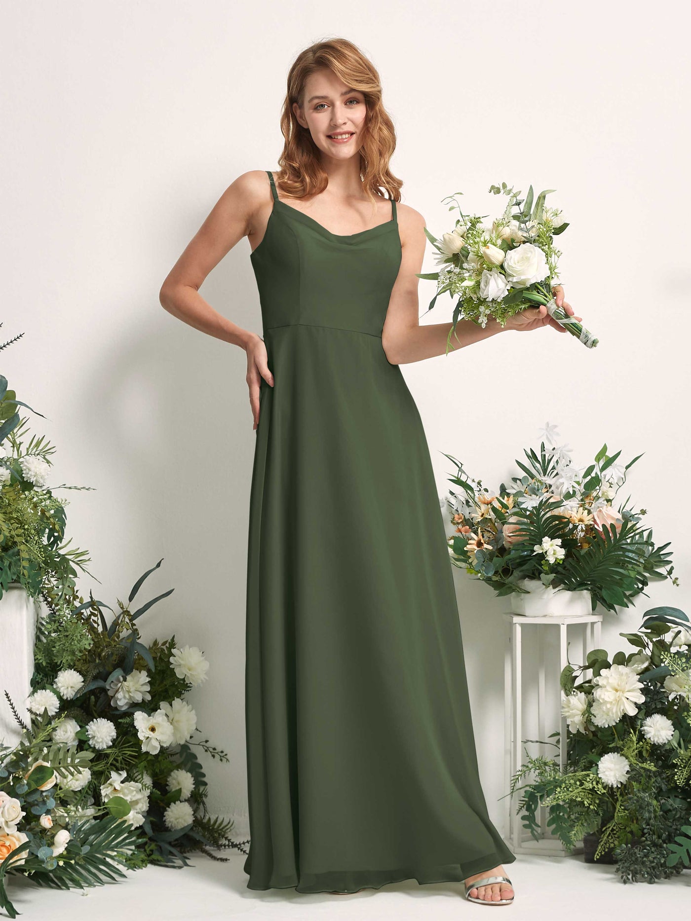 Carlyna Hannah A-Line Martini Olive Bridesmaid Dress Maxi Sleeveless Sweetheart Dress Front View