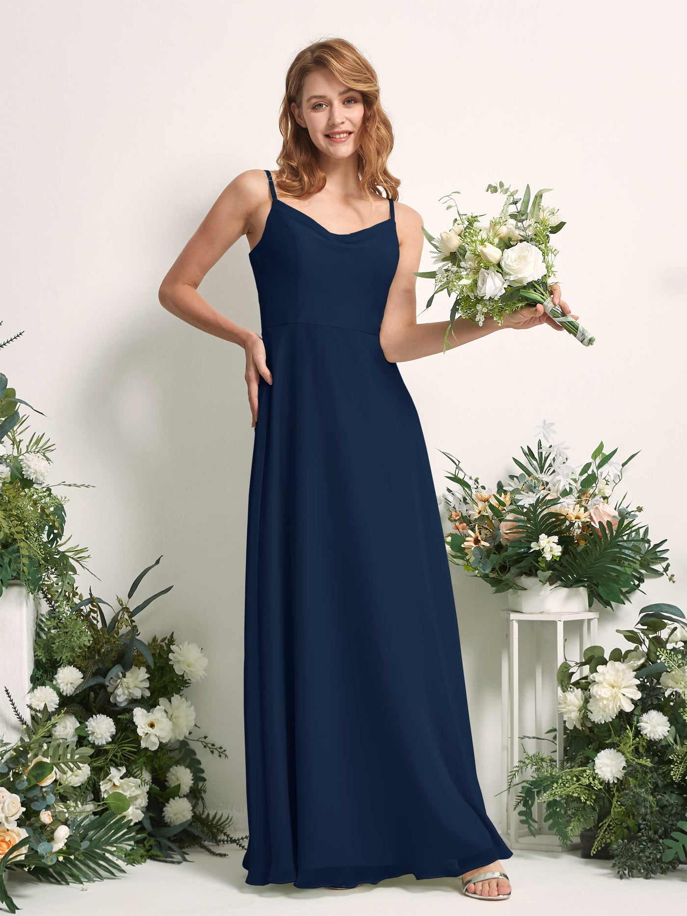 Carlyna Hannah A-Line Navy Bridesmaid Dress Maxi Sleeveless Sweetheart Dress Front View