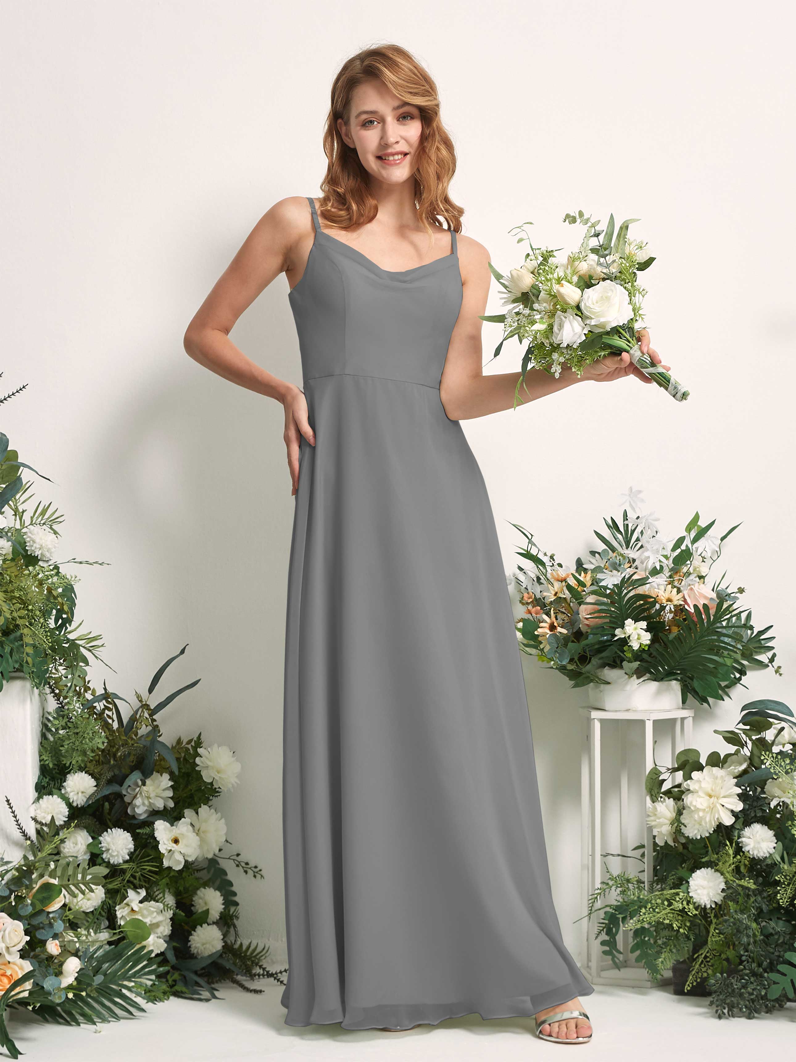 Carlyna Hannah A-Line Steel Gray Bridesmaid Dress Maxi Sleeveless Sweetheart Dress Front View