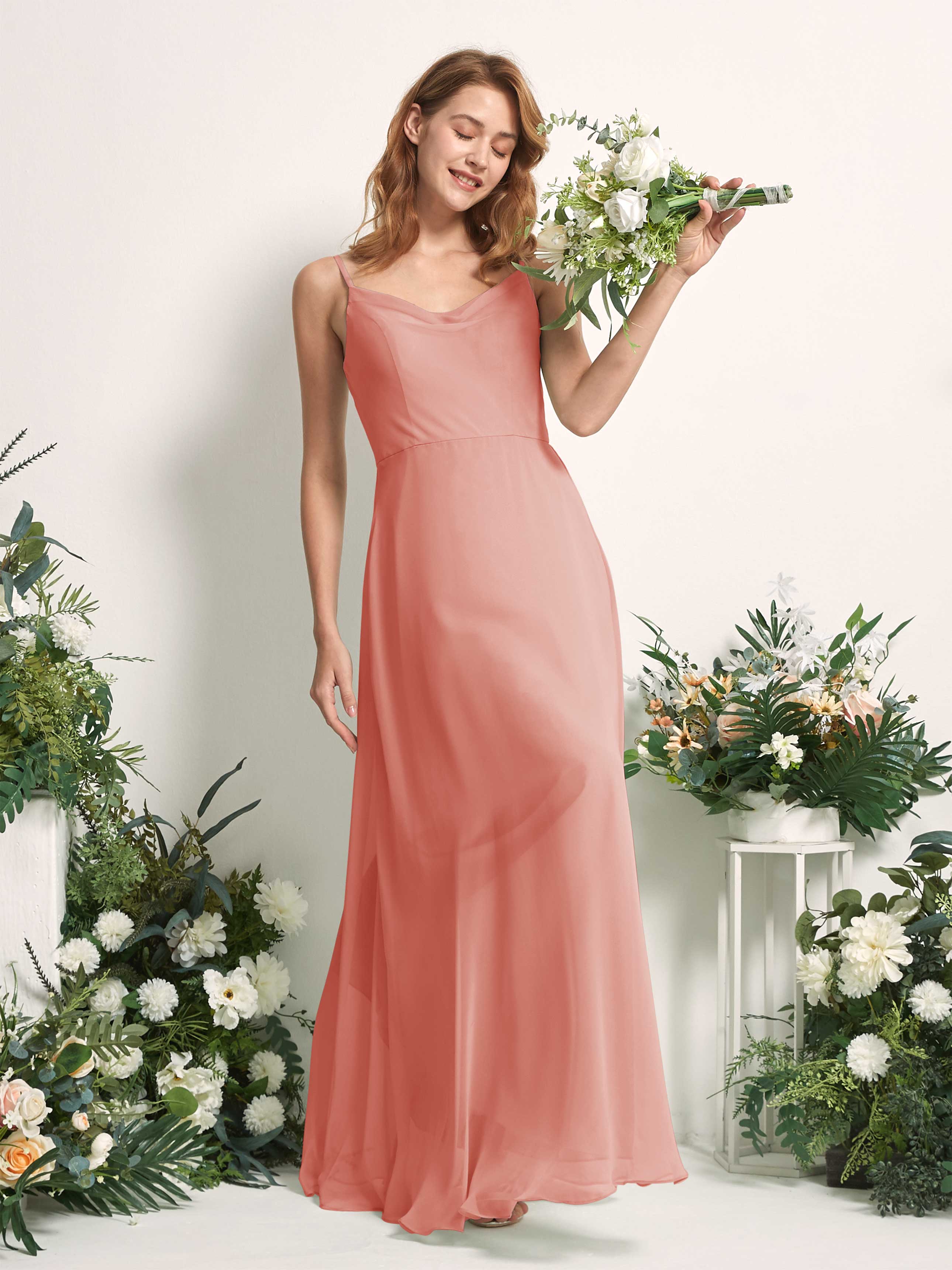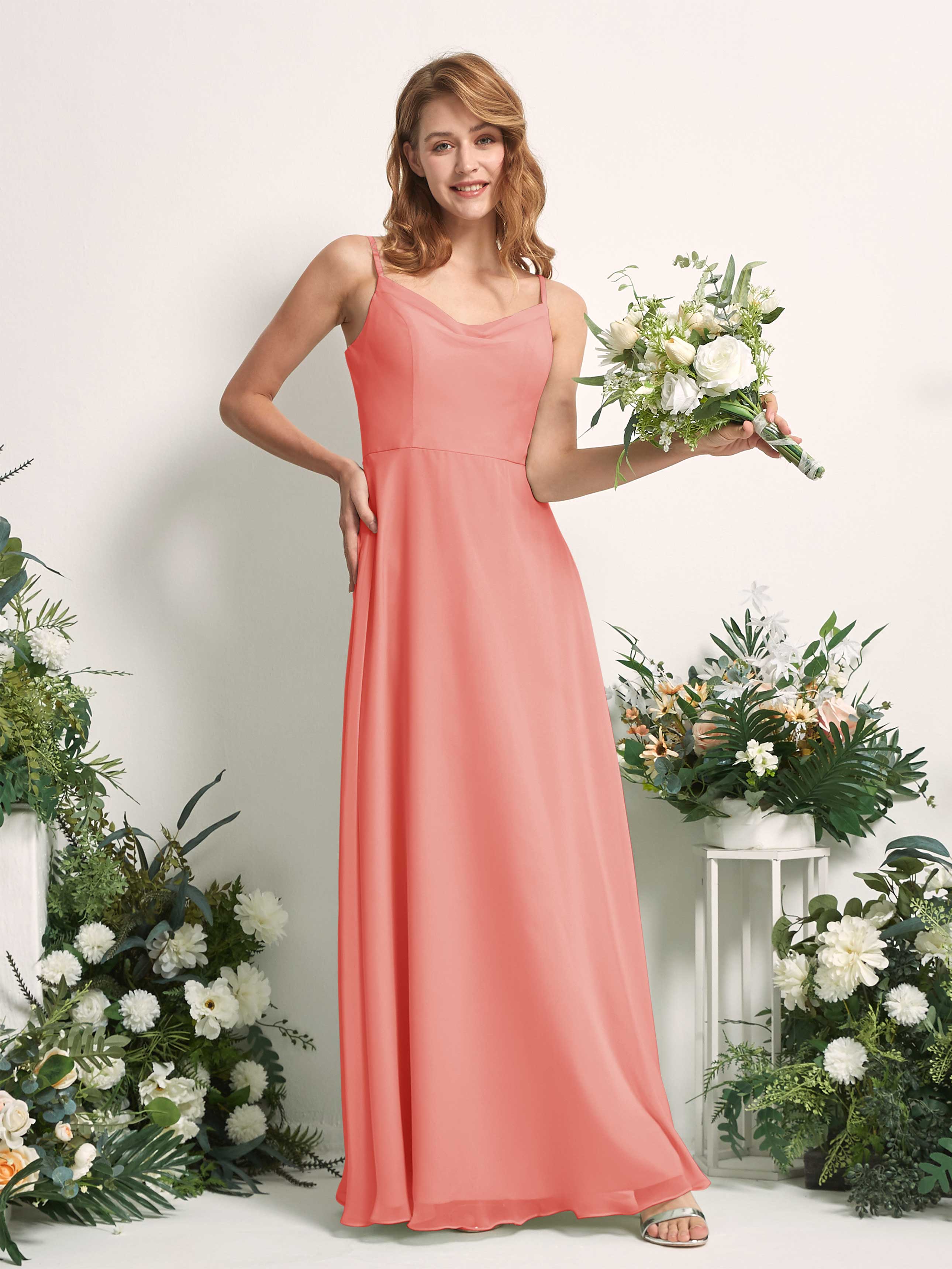 Carlyna Hannah A-Line Coral Pink Bridesmaid Dress Maxi Sleeveless Sweetheart Dress Front View