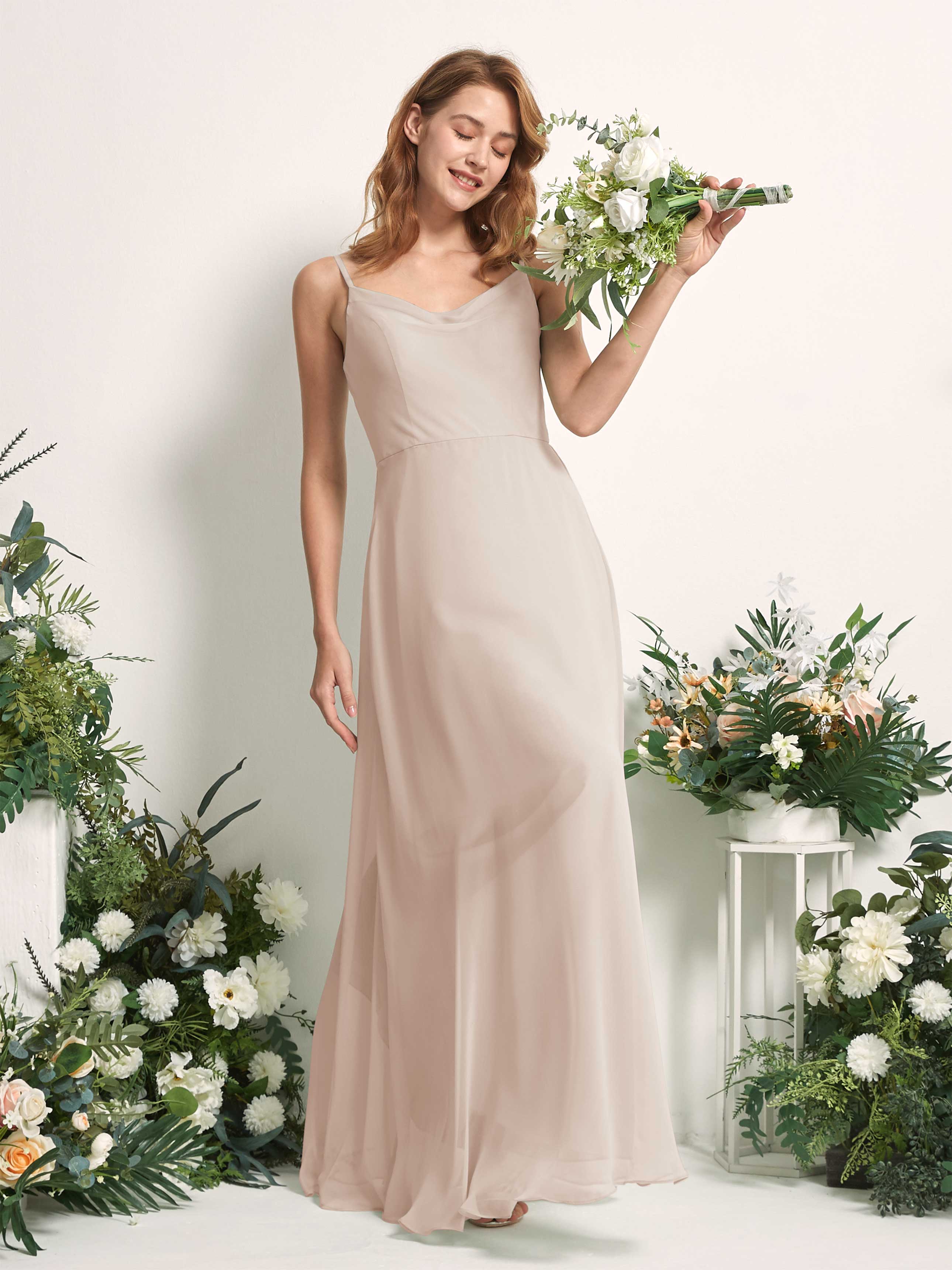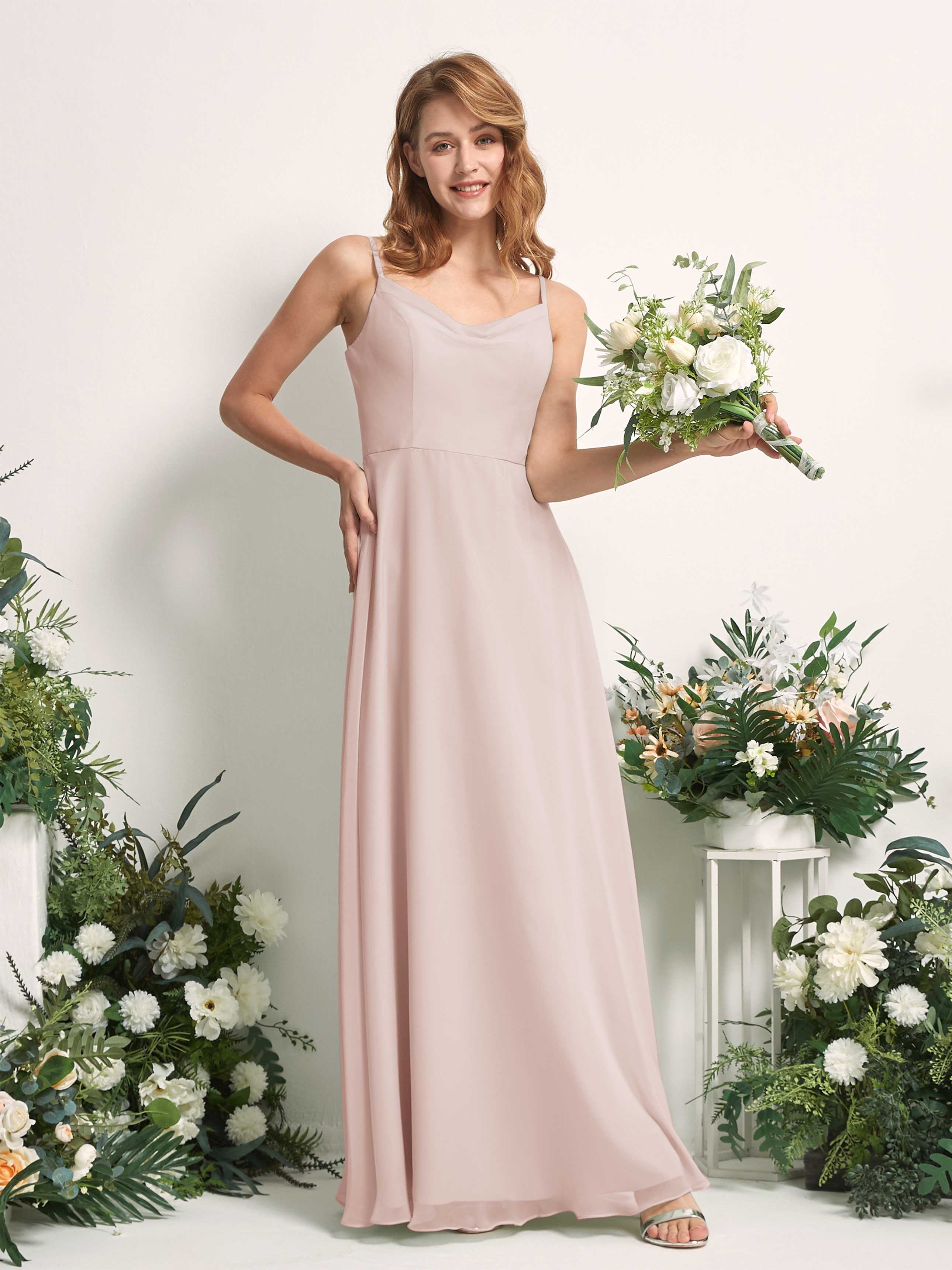 Carlyna Hannah A-Line Champagne Rose Bridesmaid Dress Maxi Sleeveless Sweetheart Dress Front View