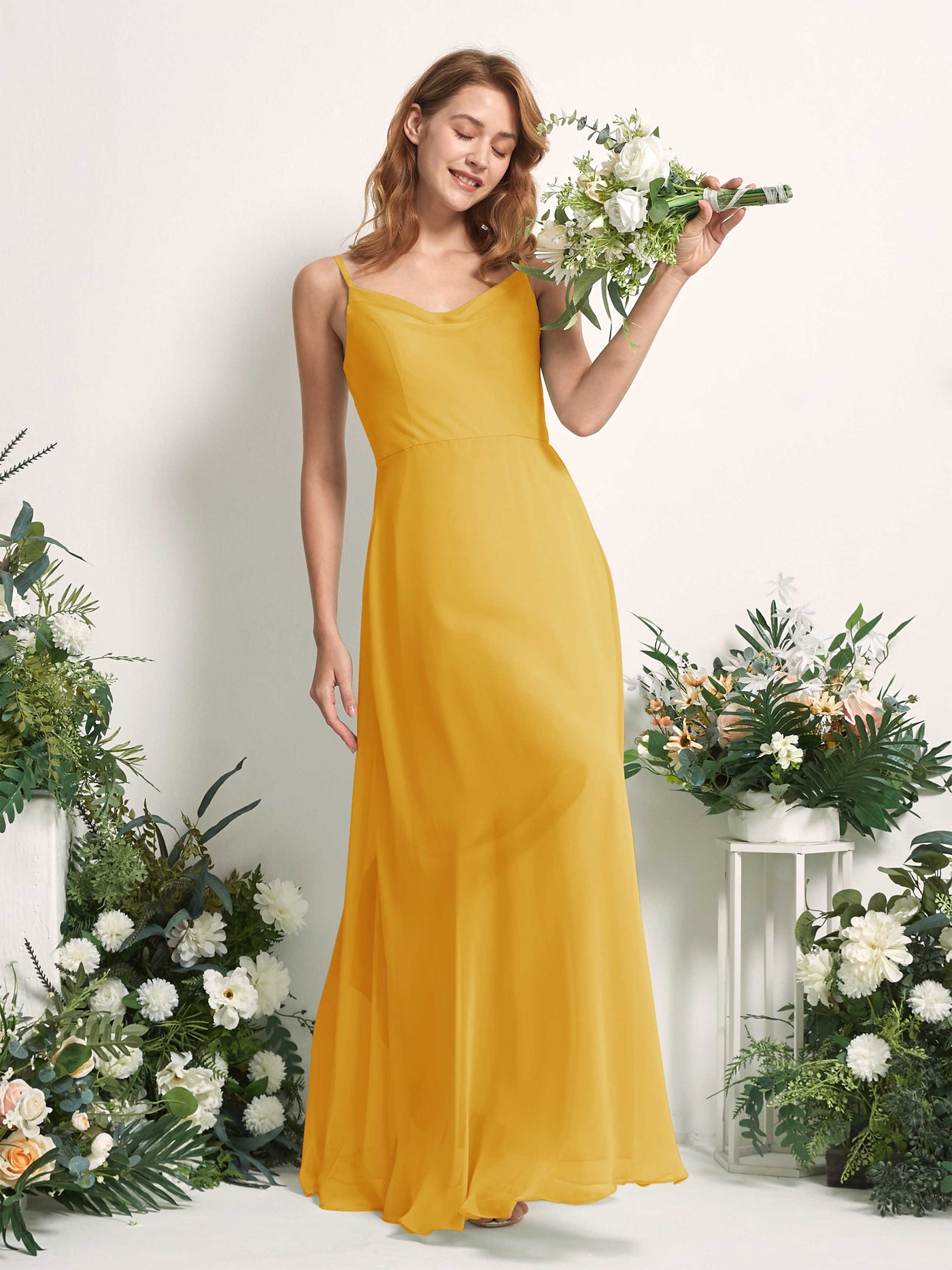 Carlyna Hannah A-Line Mustard Yellow Bridesmaid Dress Maxi Sleeveless Sweetheart Dress Front View