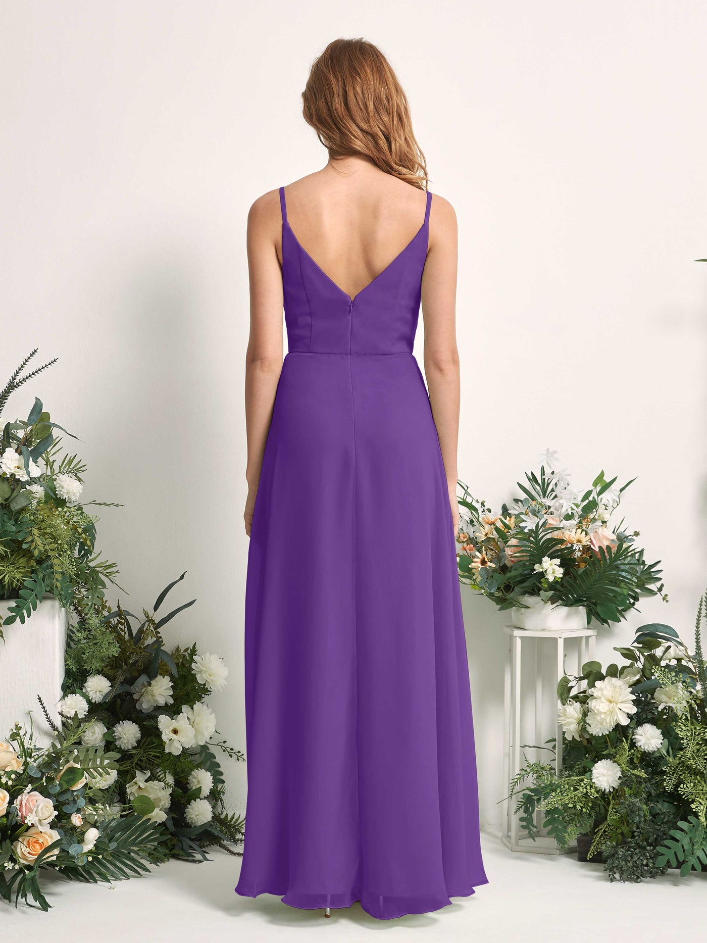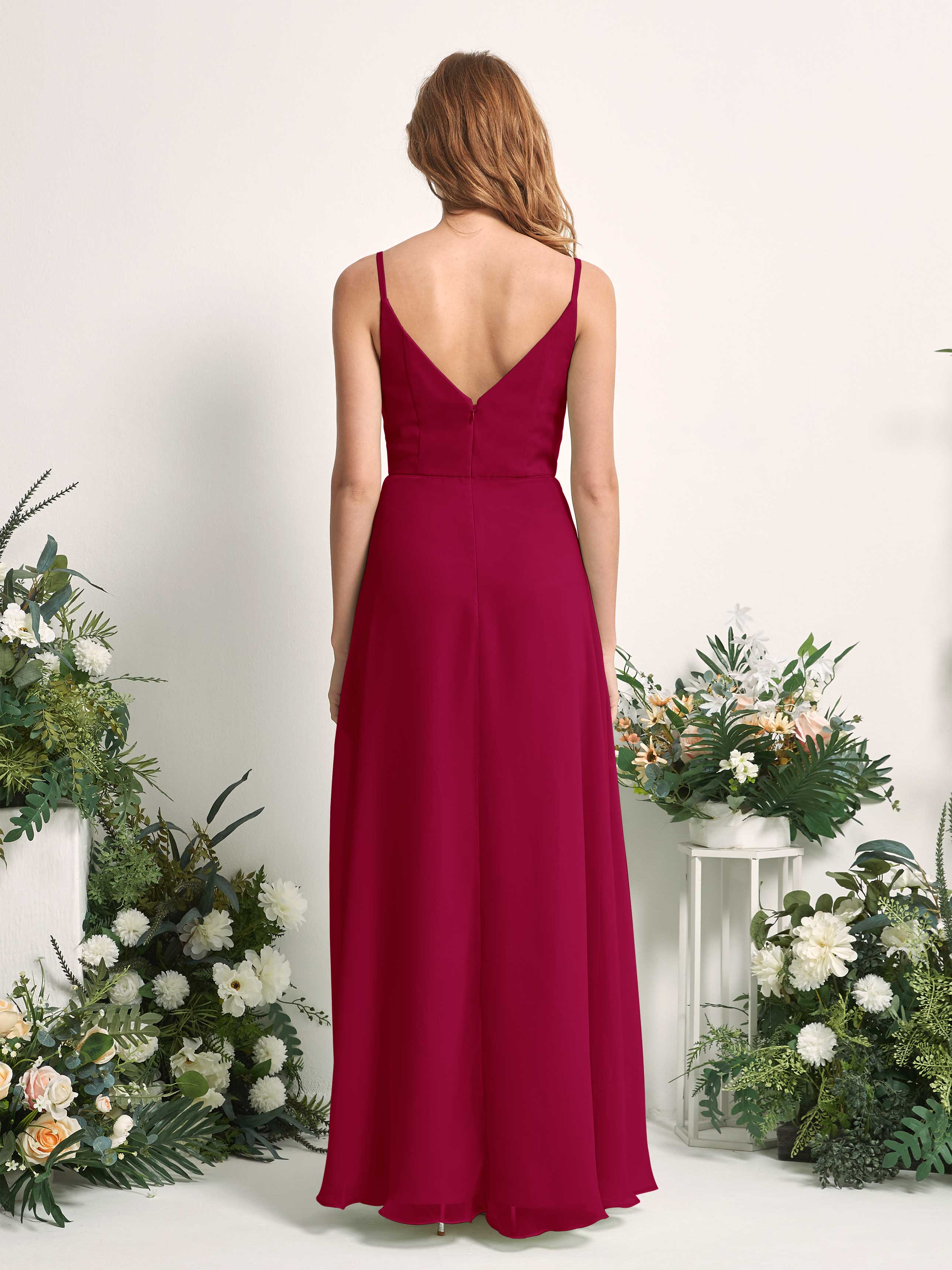 Burgundy Chiffon A-Line V-Neck Maxi Dress