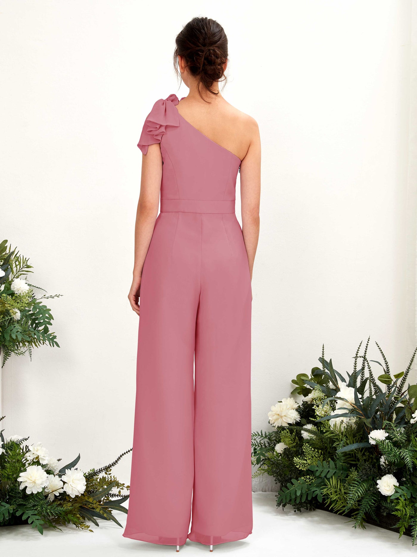Carlyna Jasmine Jumpsuit Dusty Rose Bridesmaid Dress Maxi Sleeveless One Shoulder Dress Front View