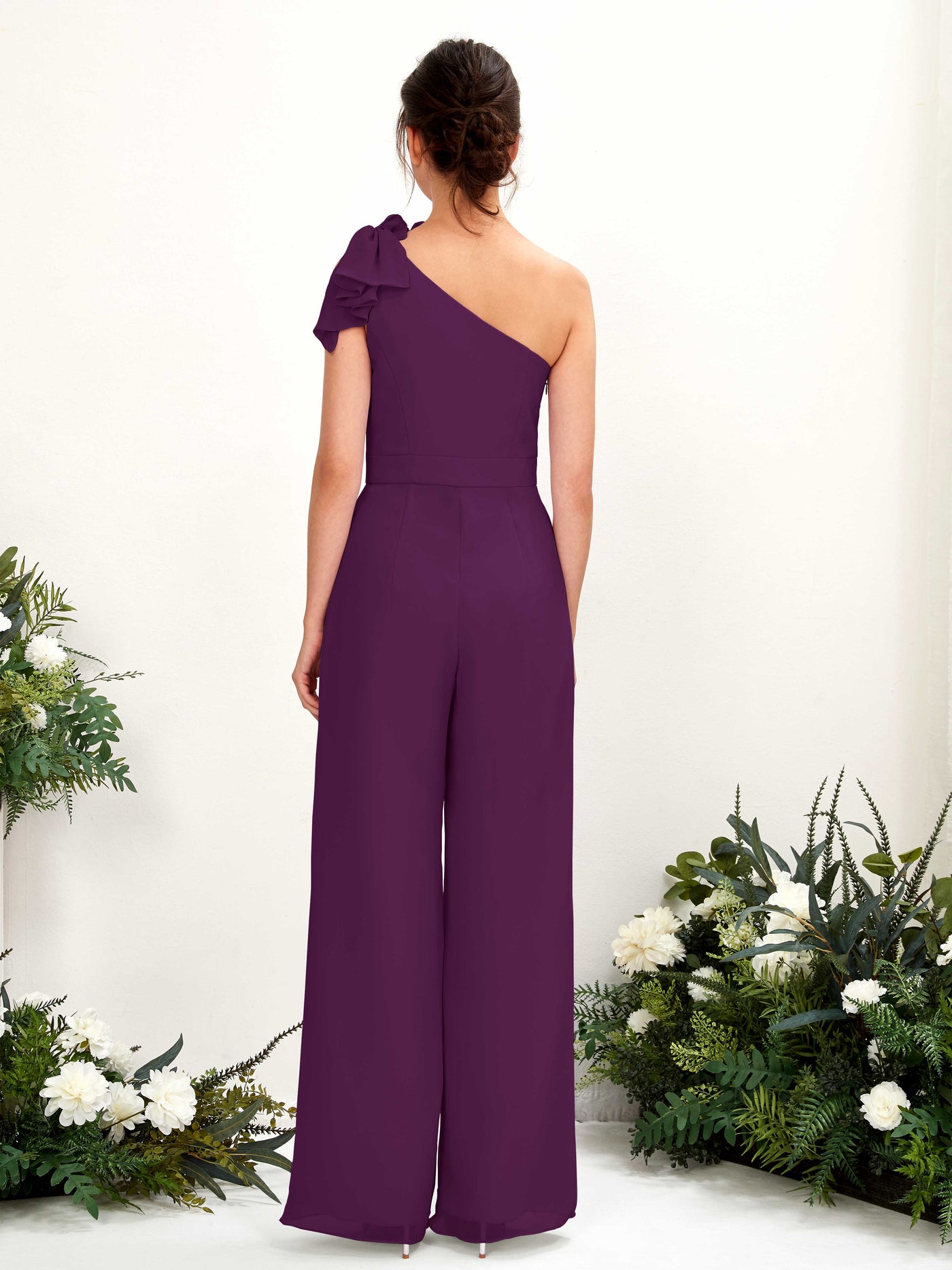 Carlyna Jasmine Jumpsuit Grape Bridesmaid Dress Maxi Sleeveless One Shoulder Dress Back View