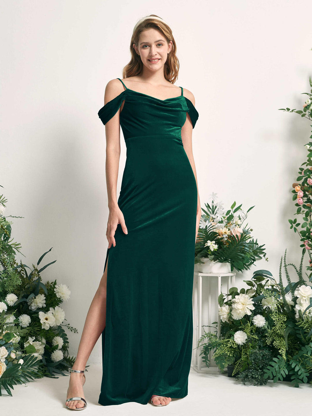 Hunter Green Velvet Mermaid Off the Shoulder Strappy Back Maxi Dress