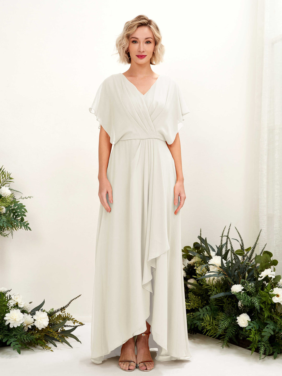 Ivory Chiffon A-Line V-Neck Maxi Dress