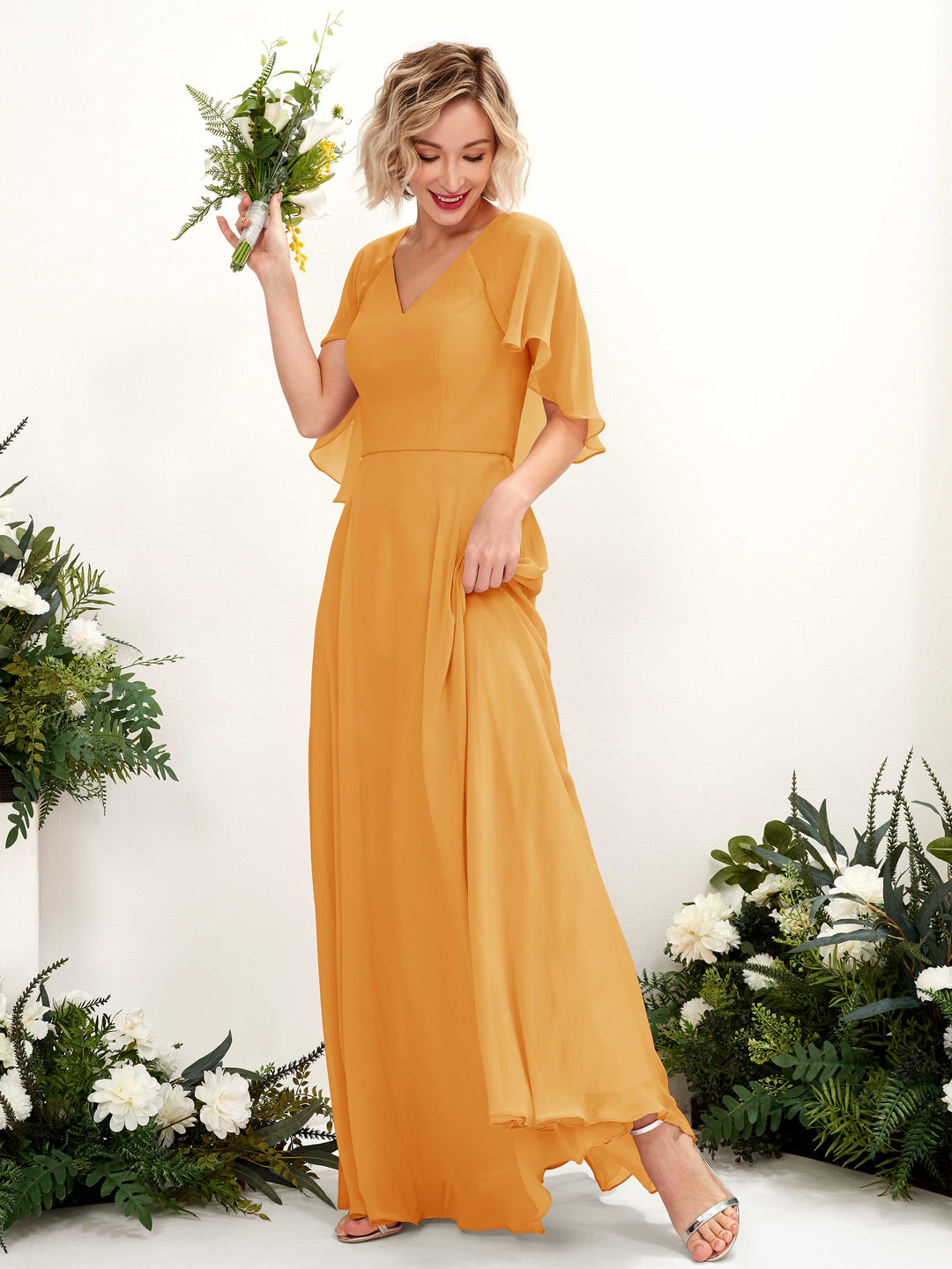 Mango Chiffon A-Line V-Neck Cape Maxi Dress