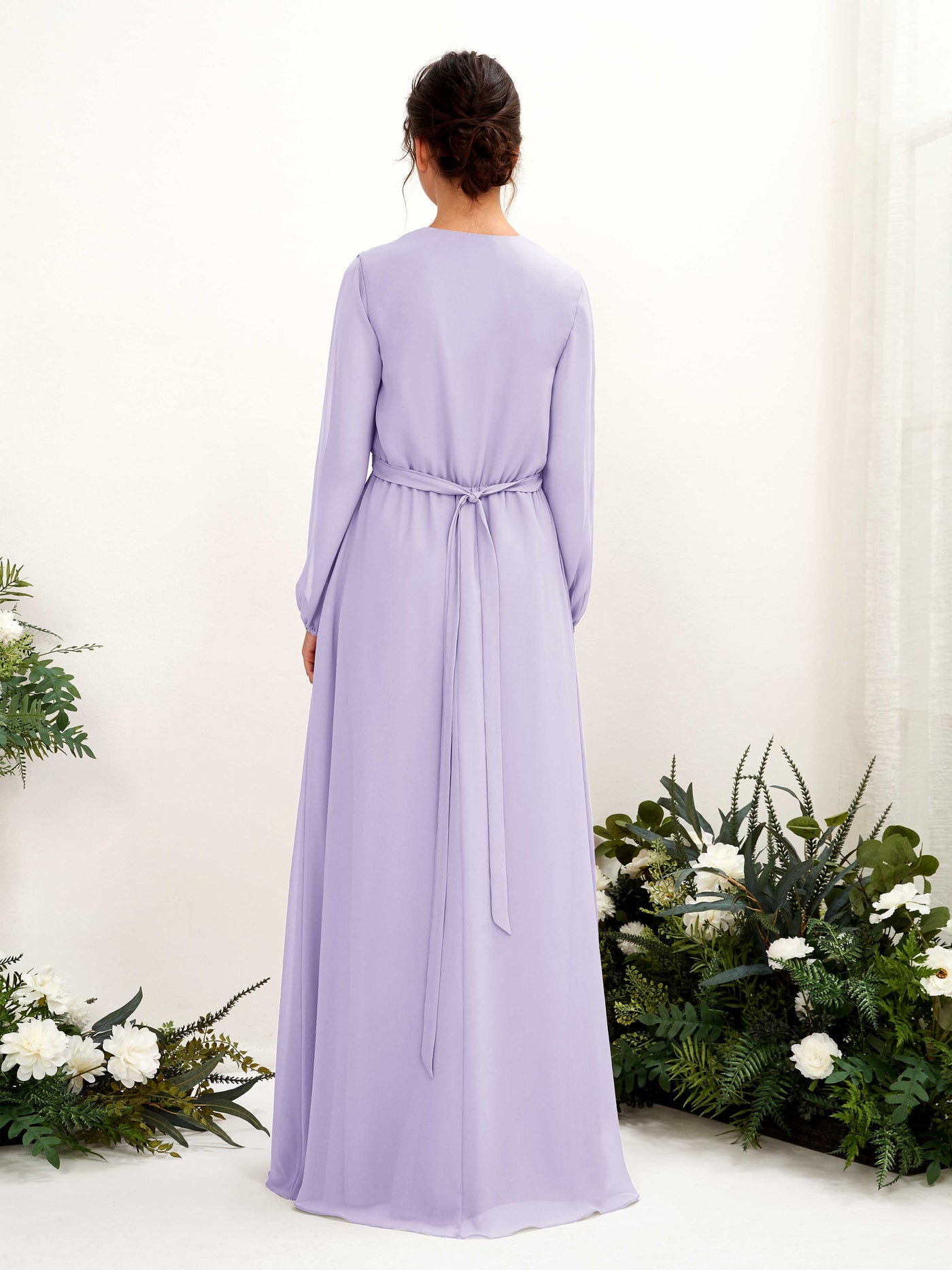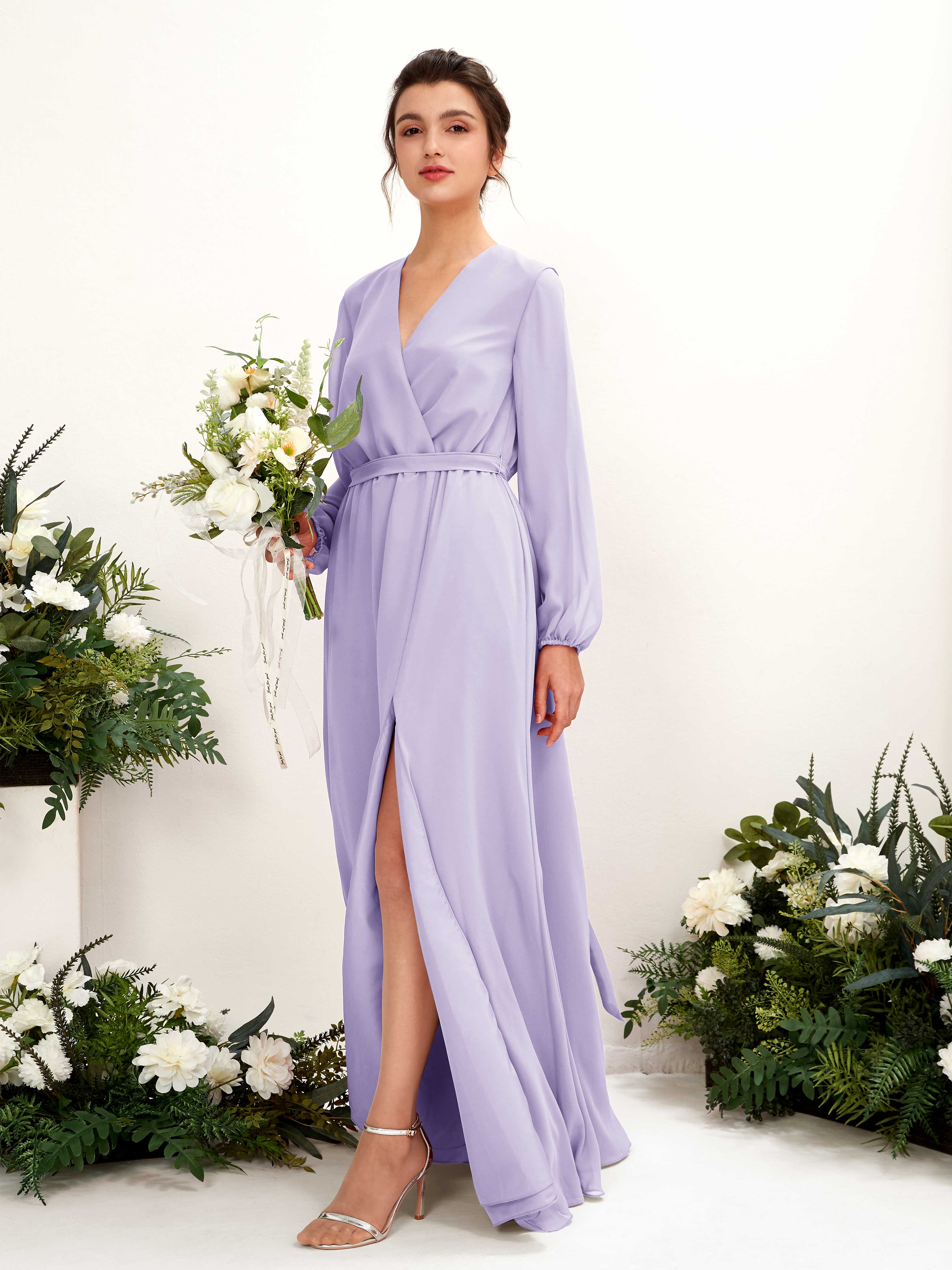 Carlyna Elsie A-Line Lilac Bridesmaid Dress Maxi Long Sleeve V-Neck Front View