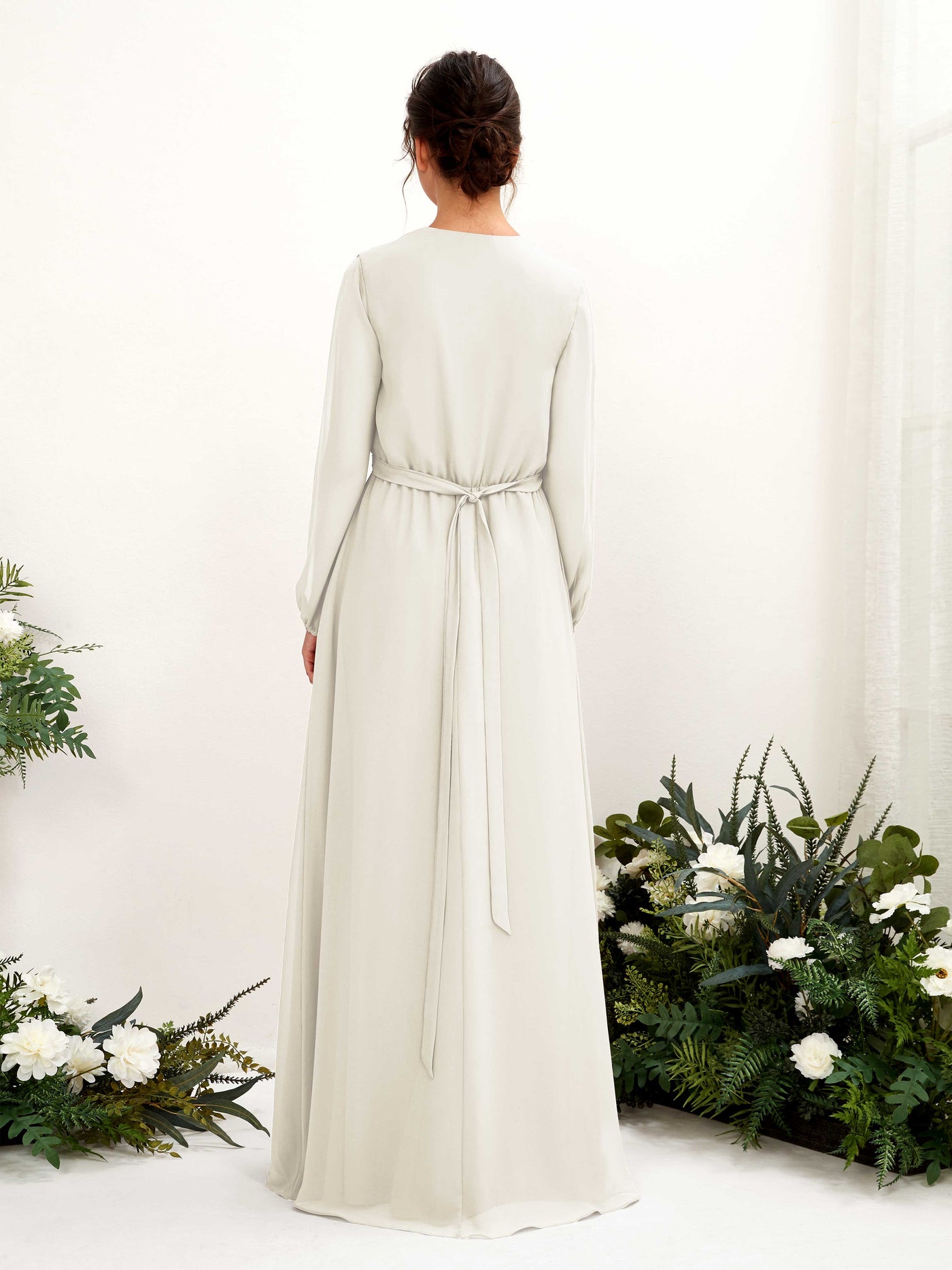 Ivory Chiffon A-Line V-Neck Long Sleeve Maxi Dress