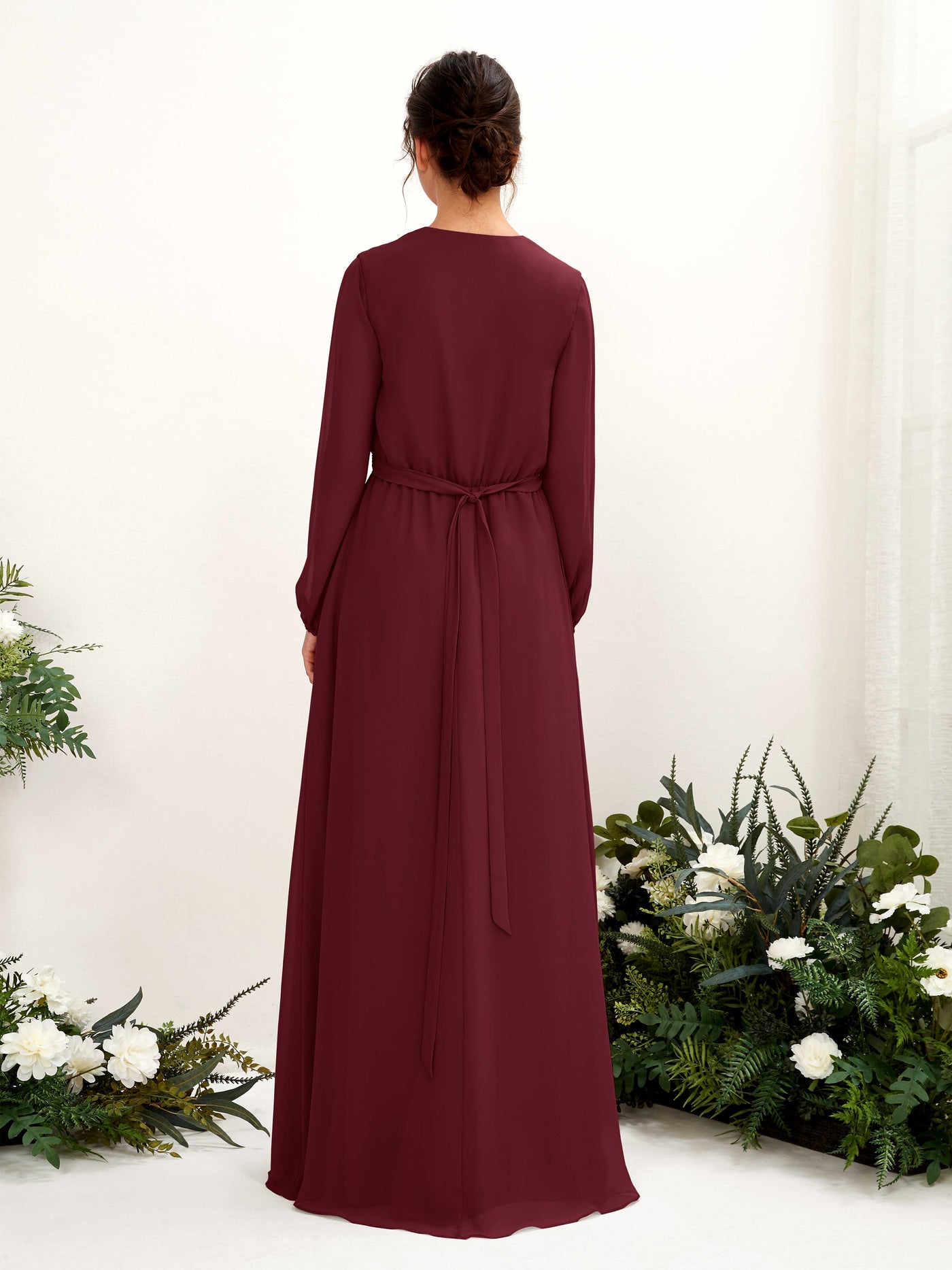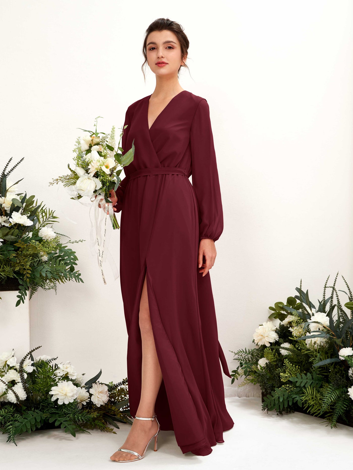 Carlyna Elsie A-Line Burgundy Bridesmaid Dress Maxi Long Sleeve V-Neck Front View