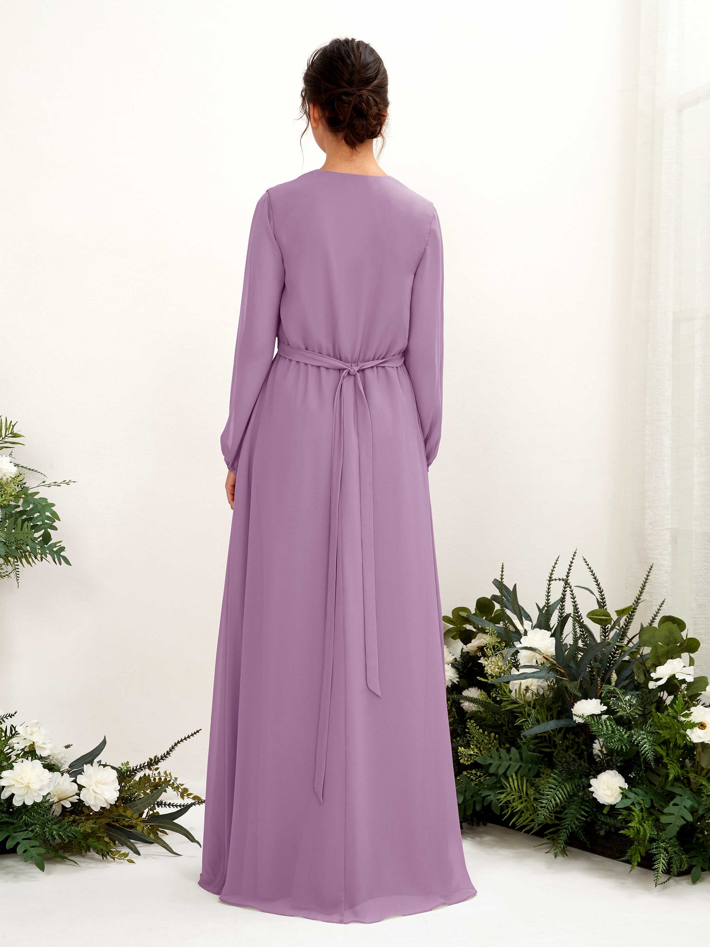Carlyna Elsie A-Line Orchid Mist Bridesmaid Dress Maxi Long Sleeve V-Neck Front View