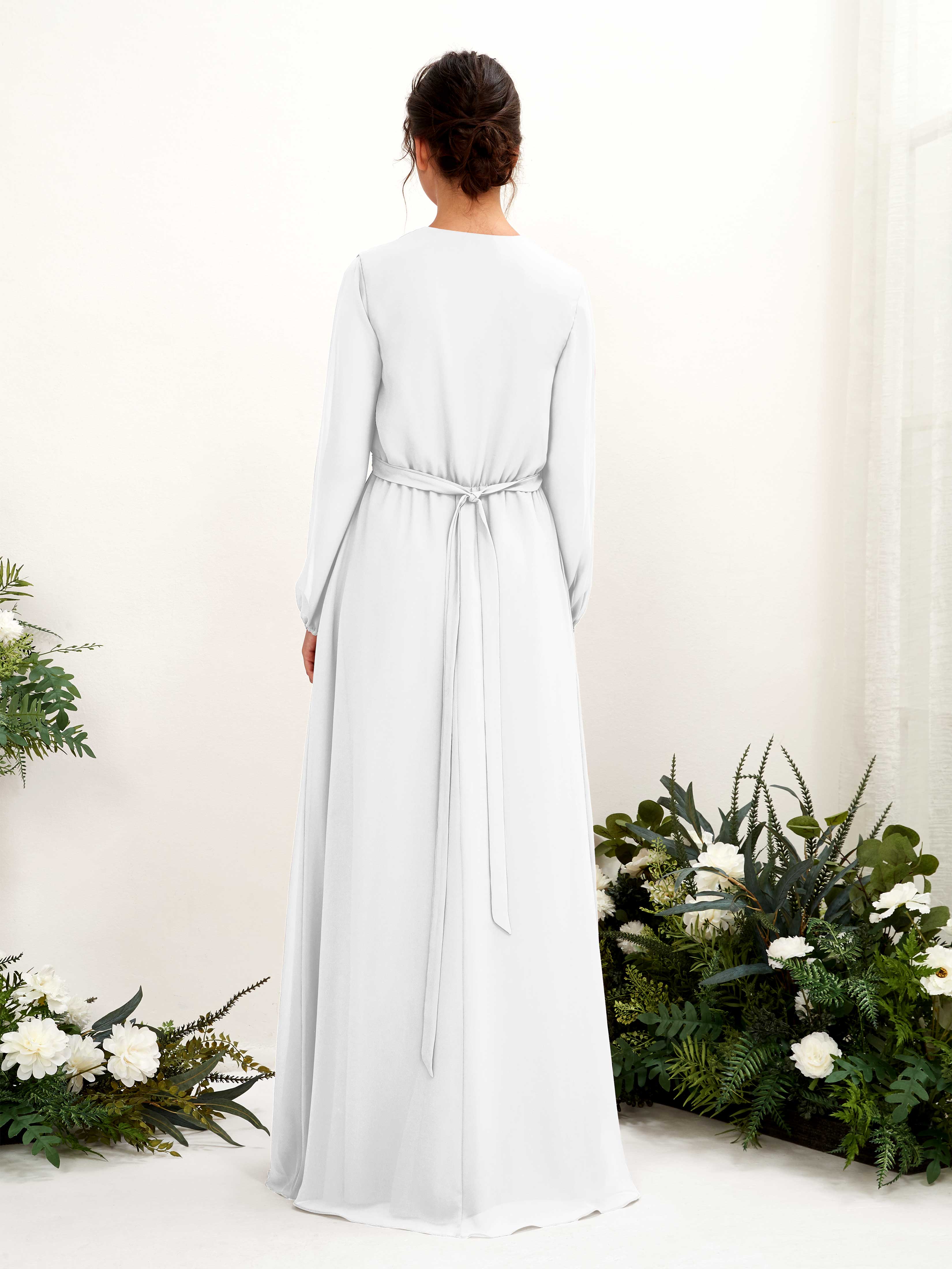 Carlyna Elsie A-Line White Bridesmaid Dress Maxi Long Sleeve V-Neck Back View