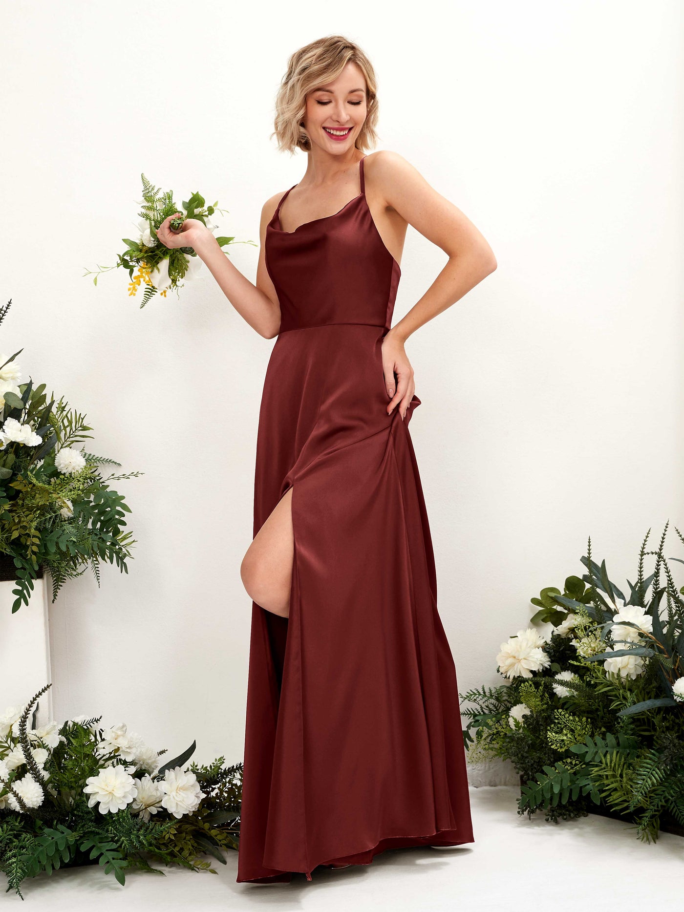 Ink blue Satin A-Line Cowl Neck Maxi Dress