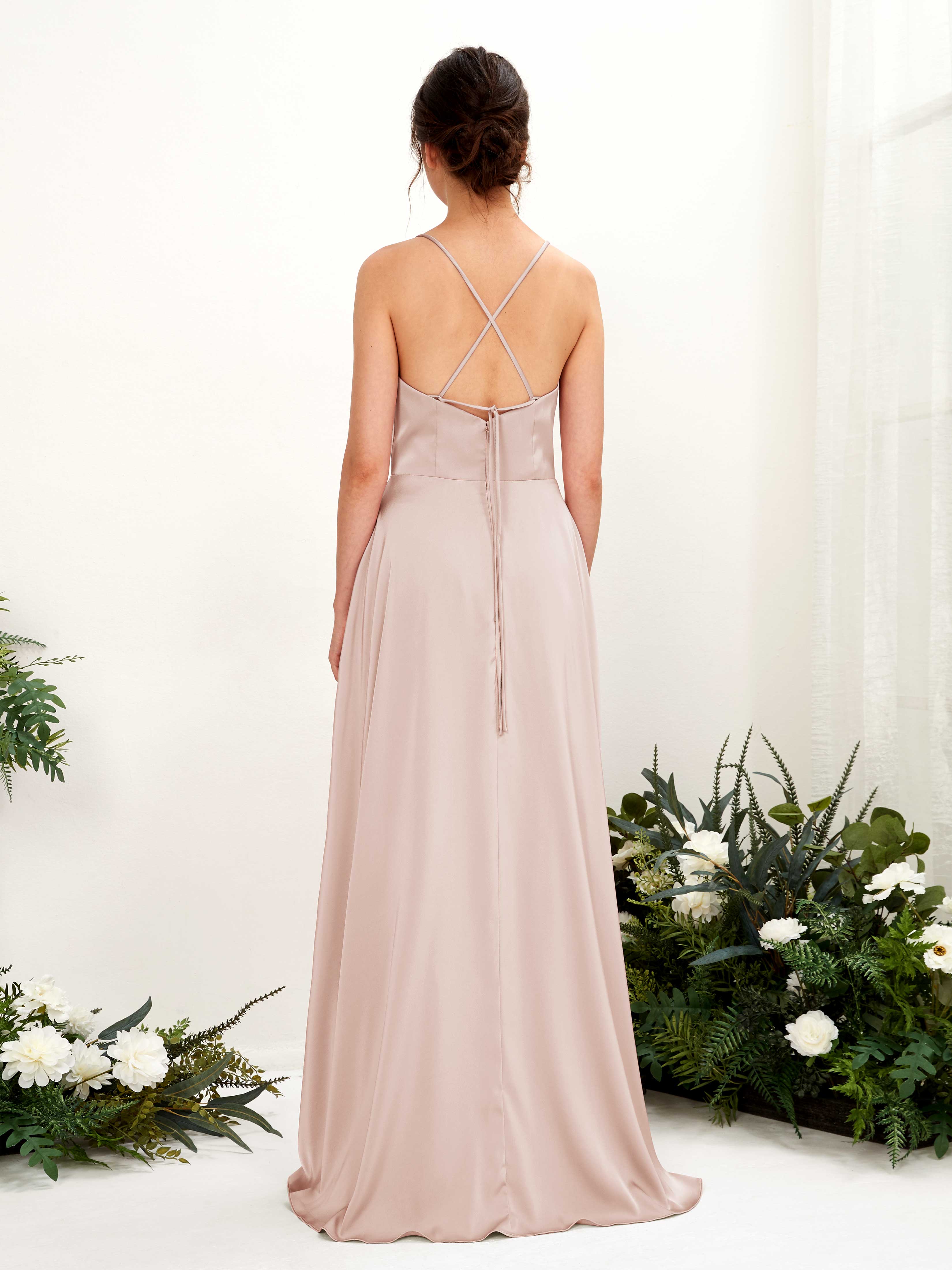 Carlyna Theresa A-Line Champagne Satin Bridesmaid Dress Maxi Sleeveless Cowl Neck Dress Back View