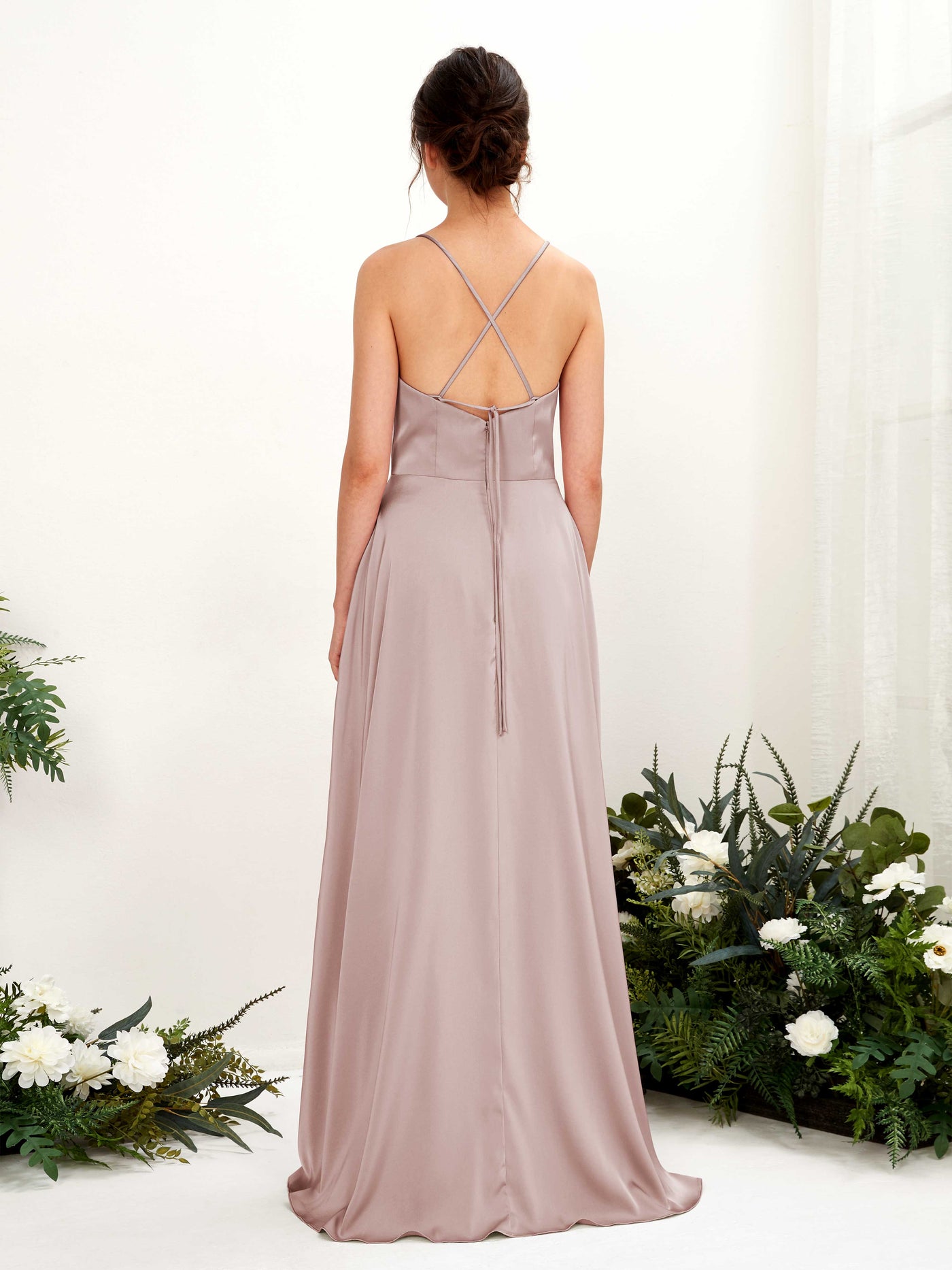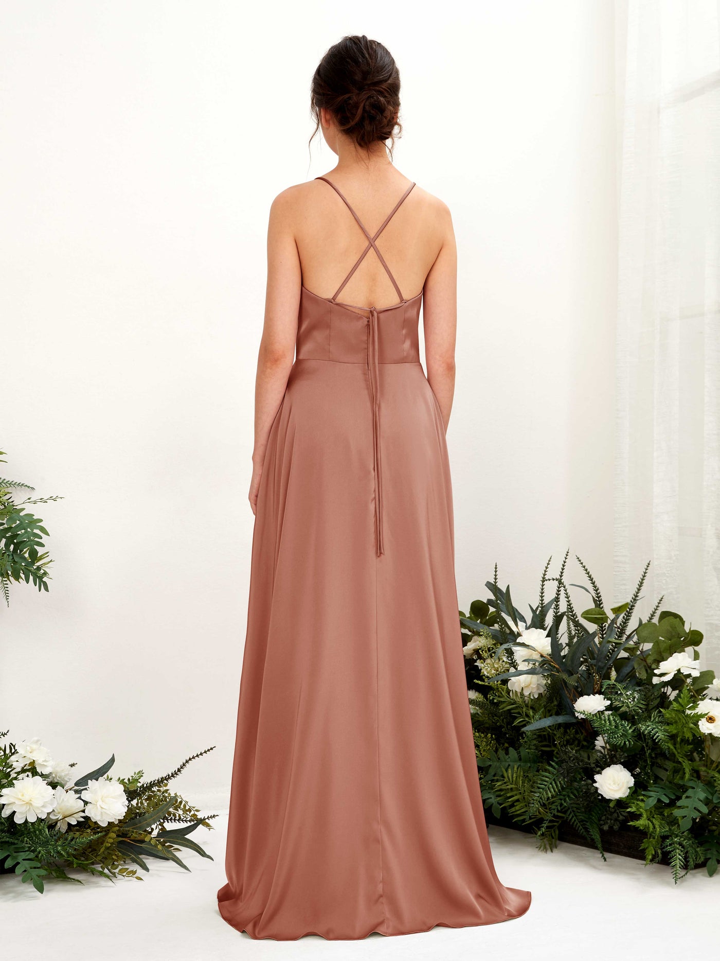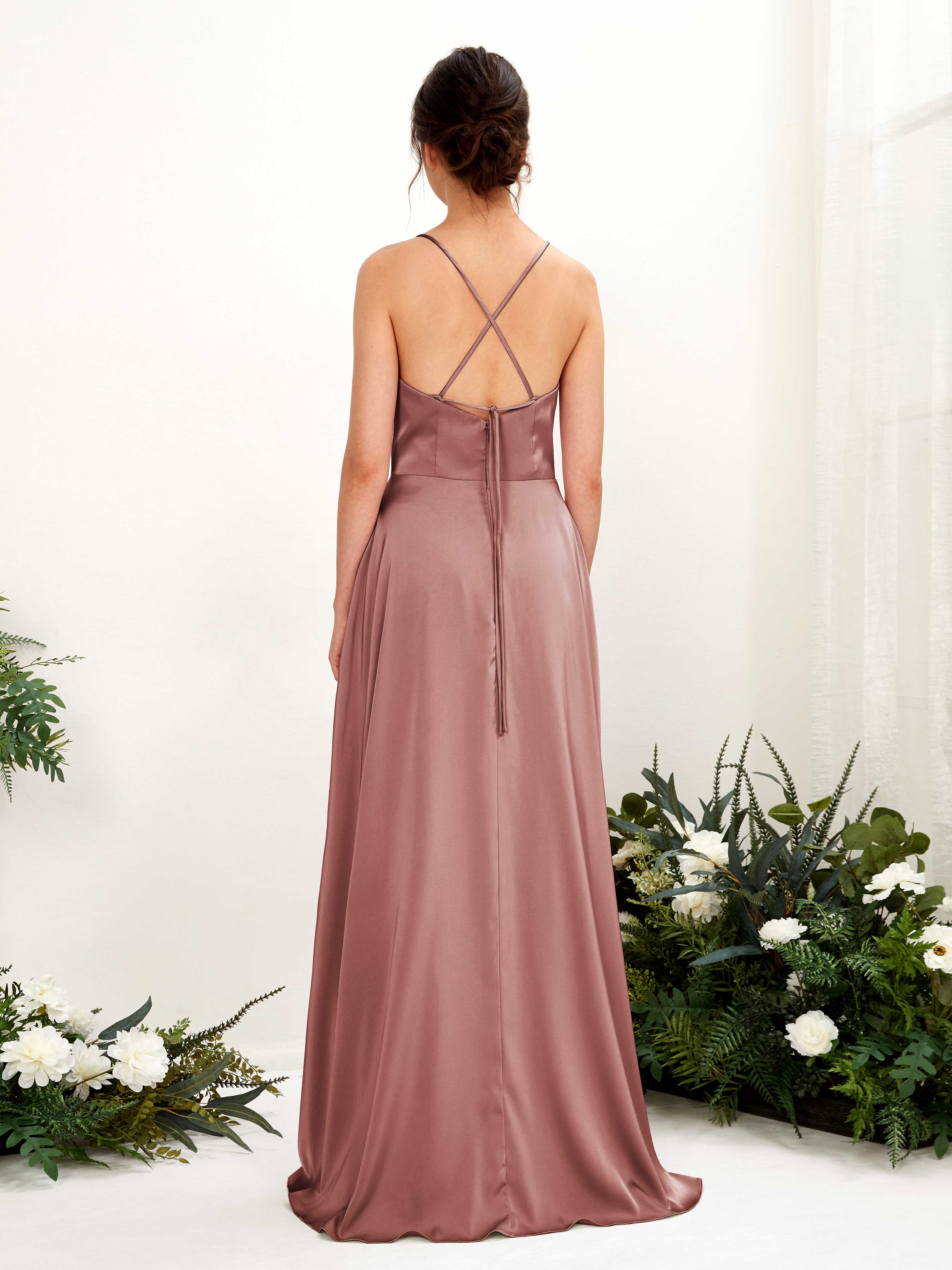 Carlyna Theresa A-Line Desert Rose Satin Bridesmaid Dress Maxi Sleeveless Cowl Neck Dress Back View