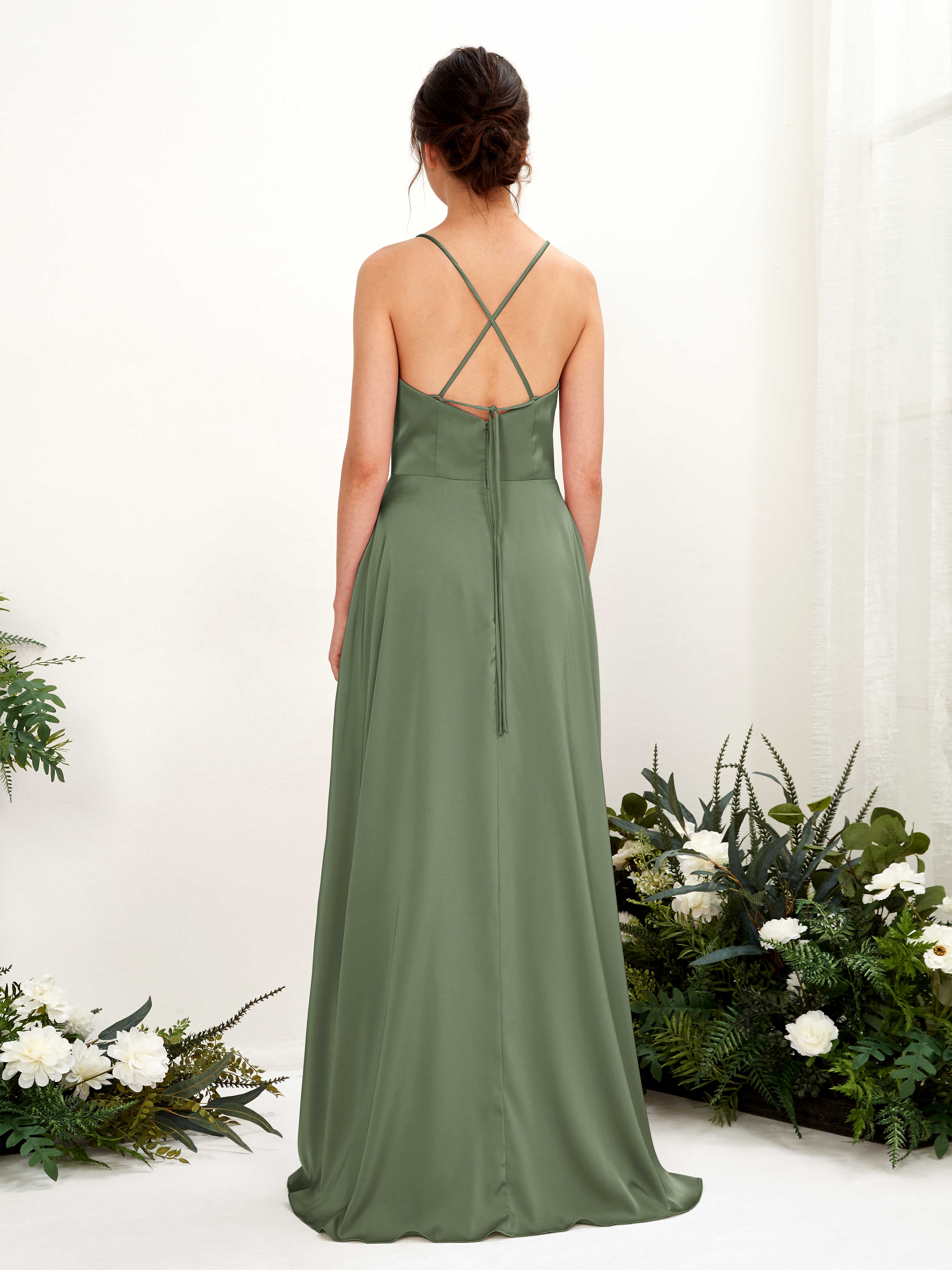 Carlyna Theresa A-Line Green Olive Satin Bridesmaid Dress Maxi Sleeveless Cowl Neck Dress Back View