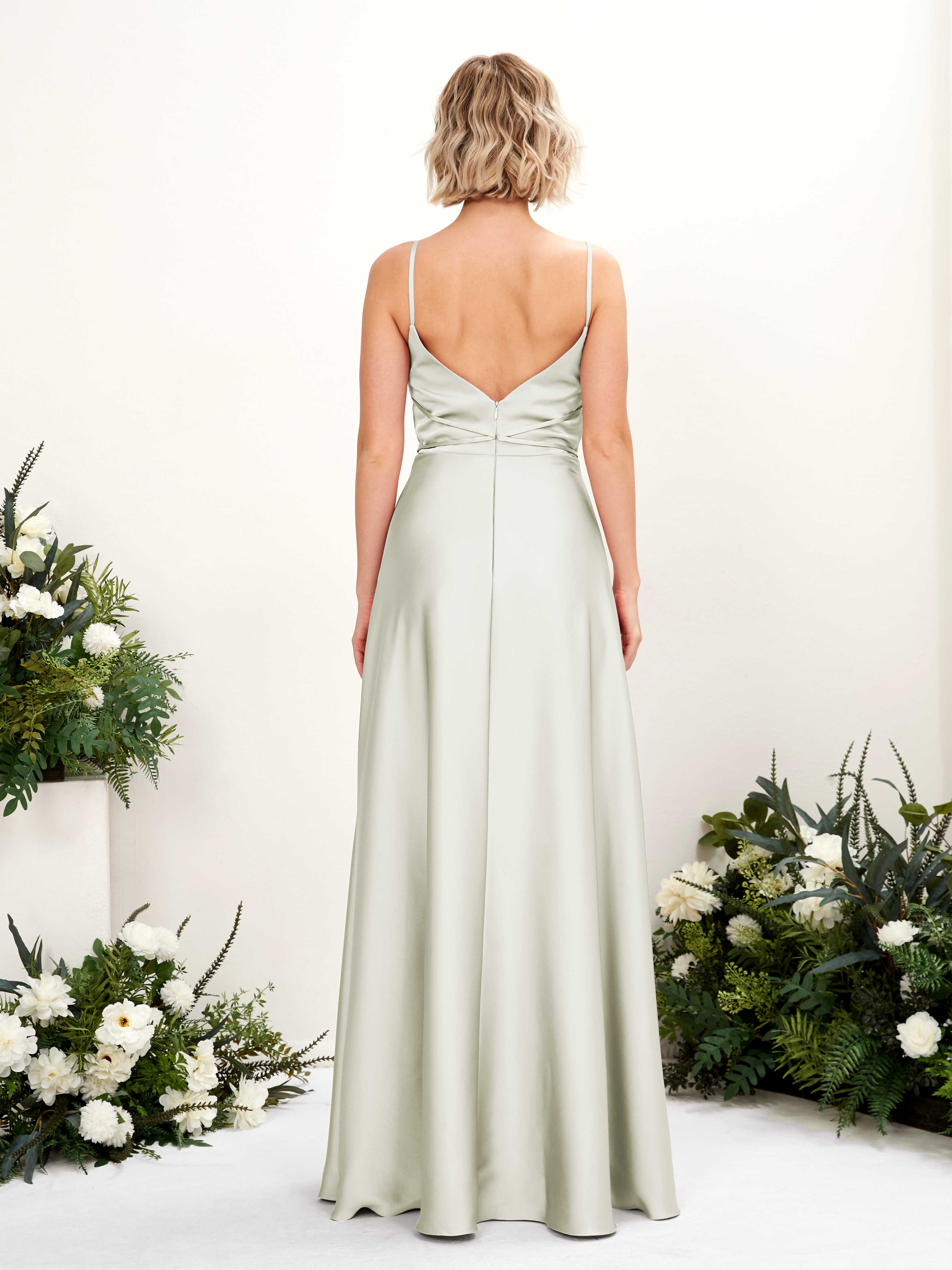 Carlyna Wallis A-Line Sage Green Satin Bridesmaid Dress Maxi Sleeveless Cowl Neck Dress Back View
