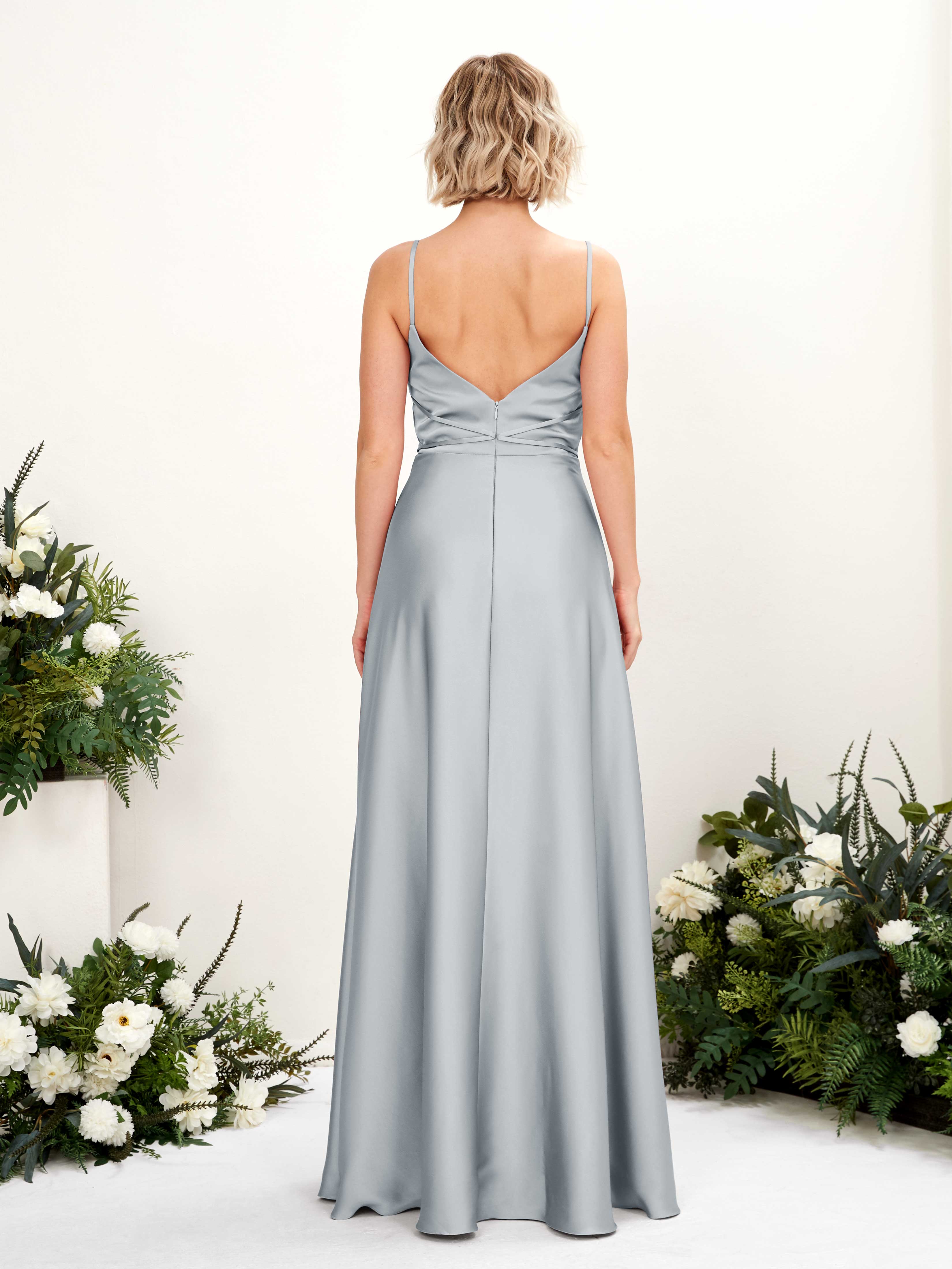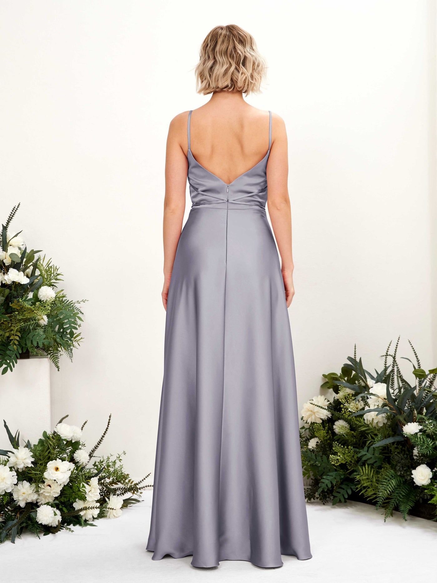 Carlyna Wallis A-Line Steel Gray Satin Bridesmaid Dress Maxi Sleeveless Cowl Neck Dress Back View