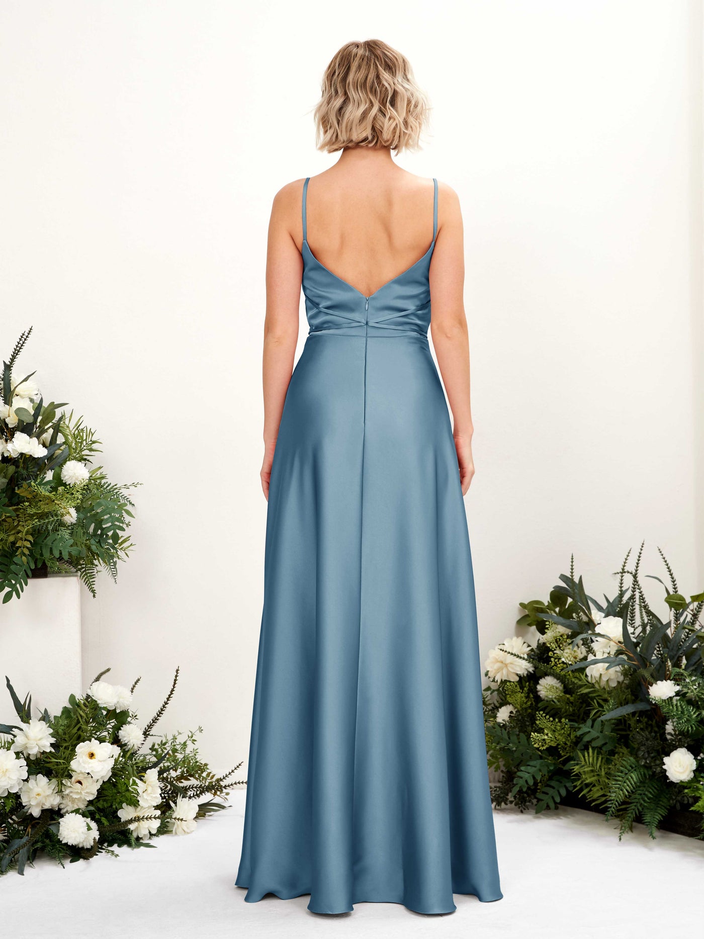 Carlyna Wallis A-Line Dusty Blue Satin Bridesmaid Dress Maxi Sleeveless Cowl Neck Dress Back View