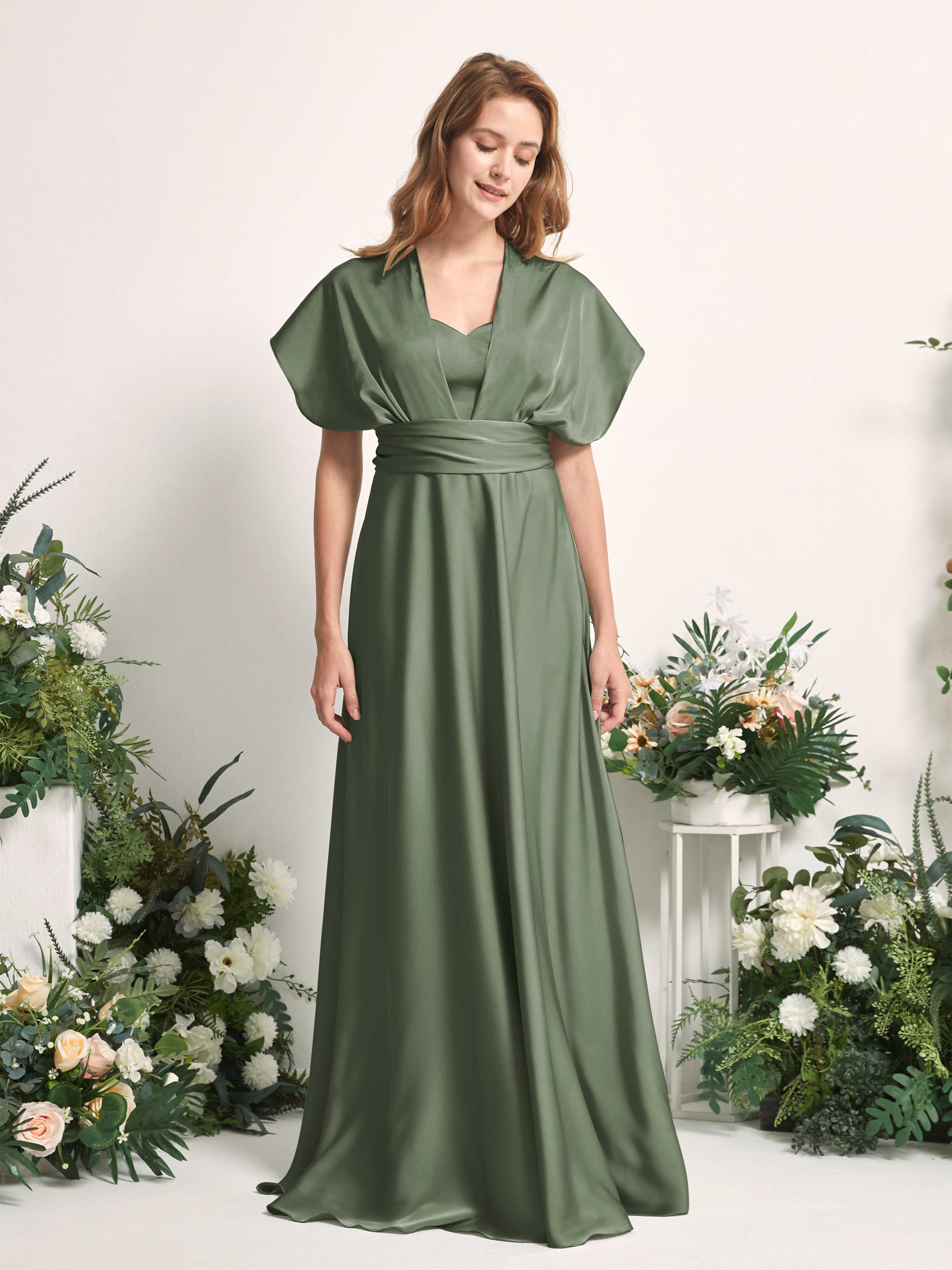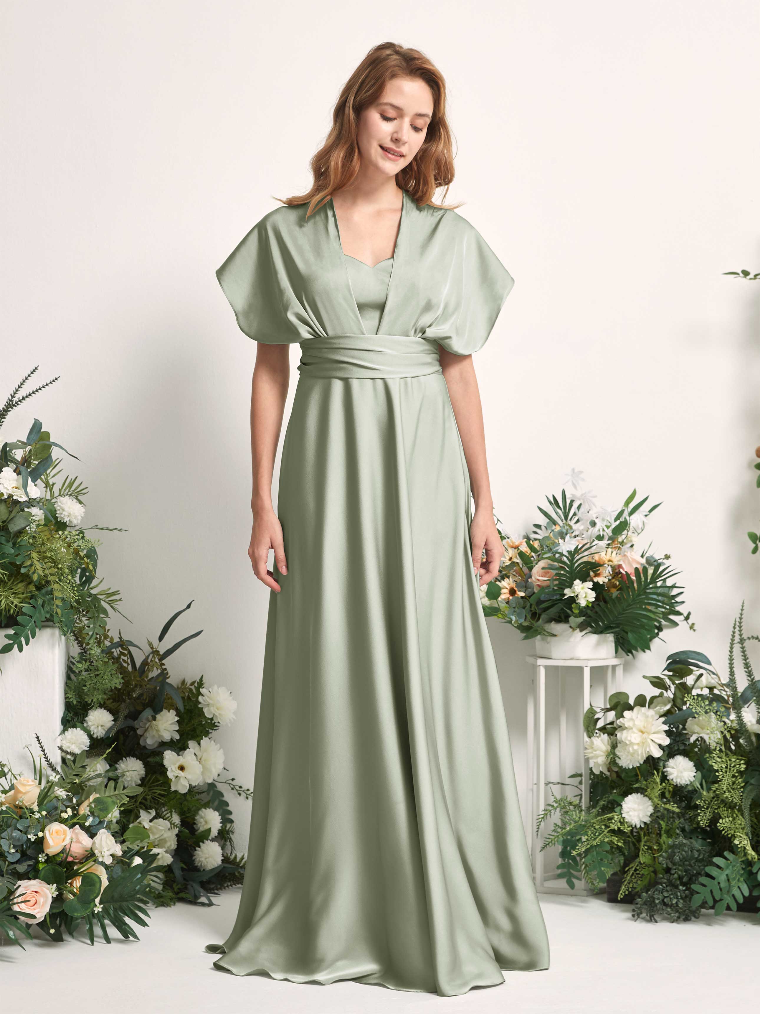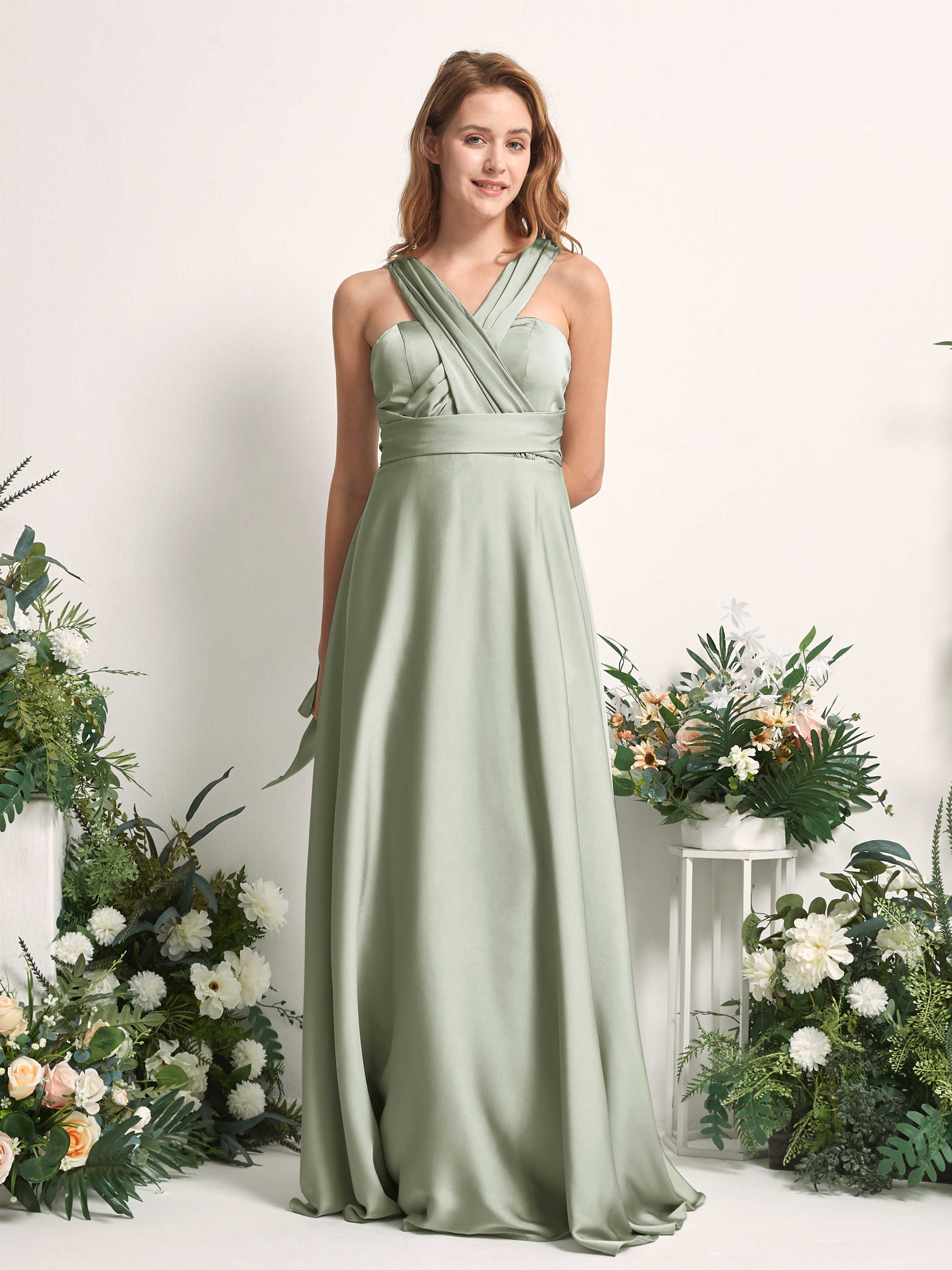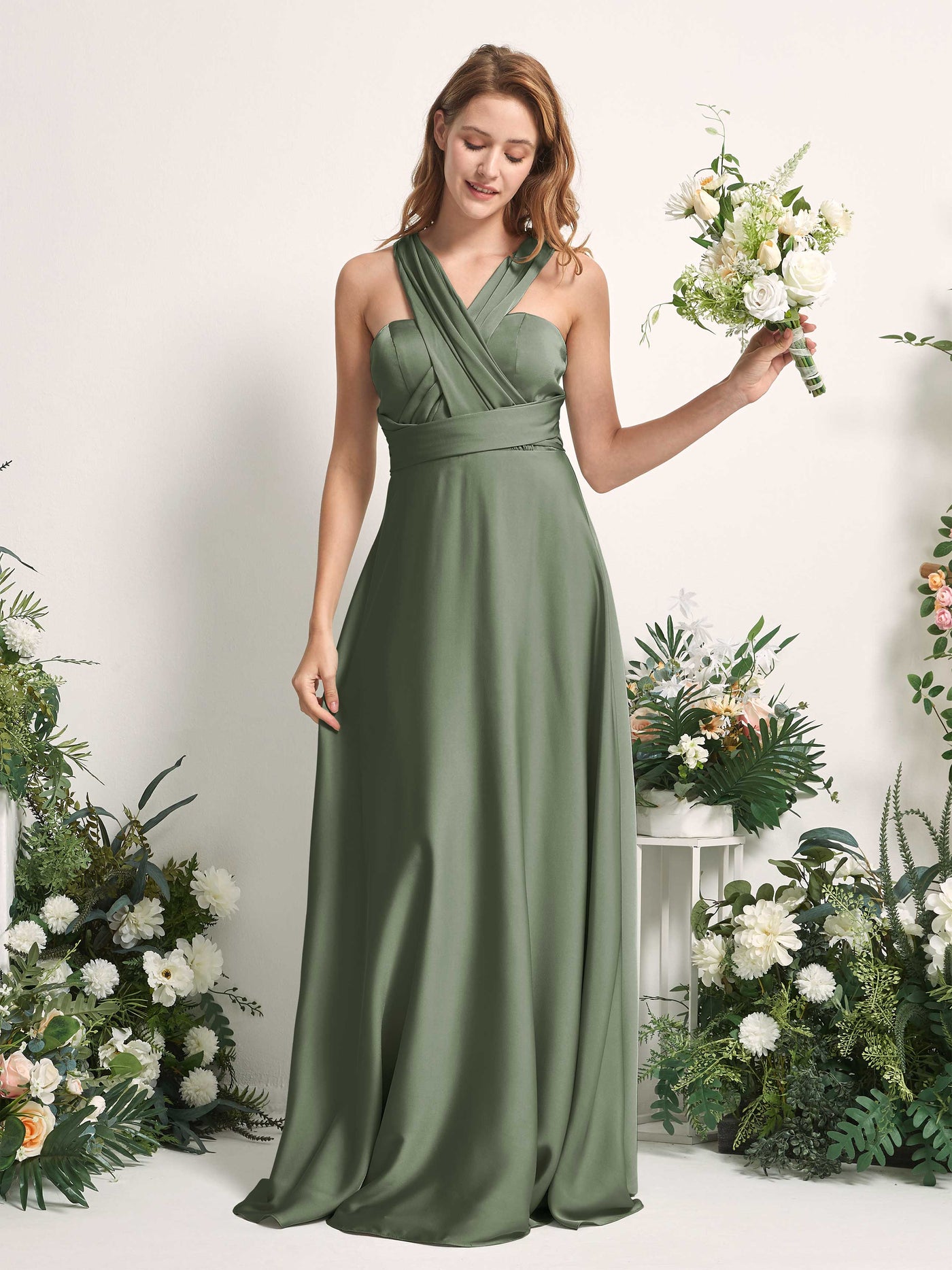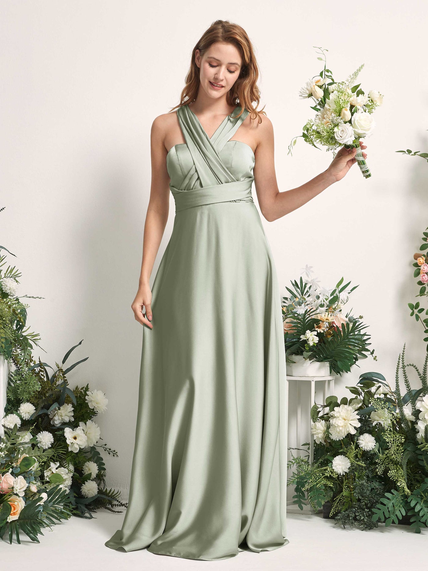 Sage Green Satin Convertible Sweetheart Strappy Back Maxi Dress
