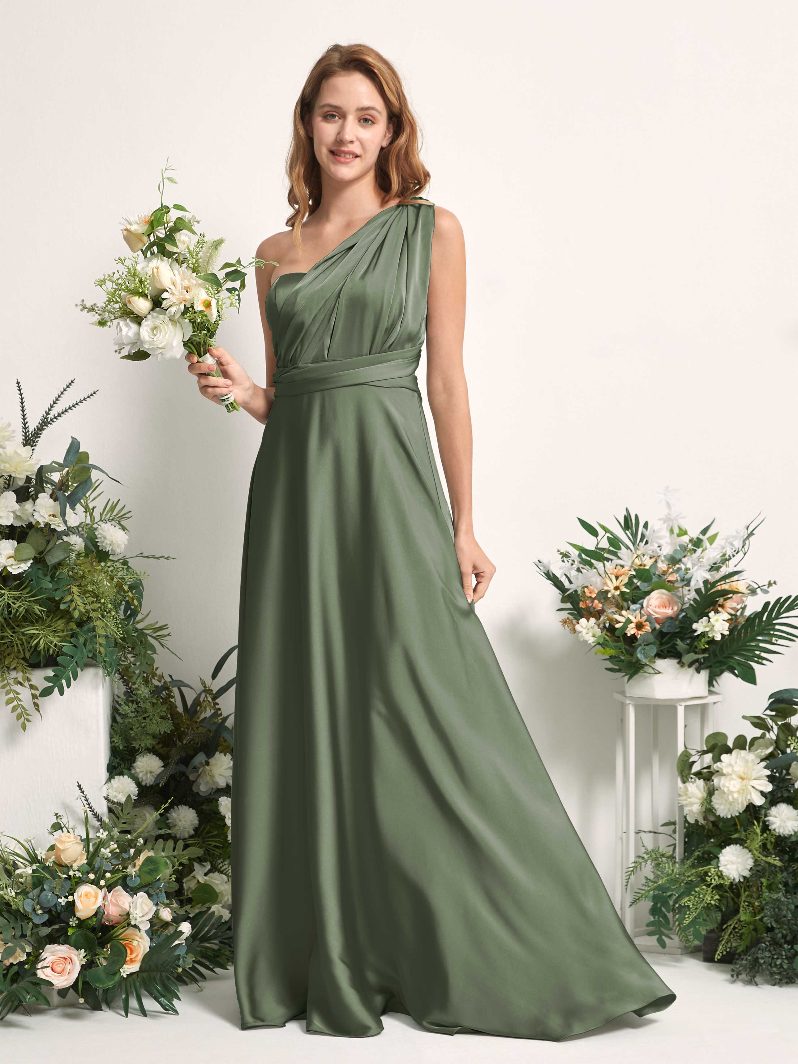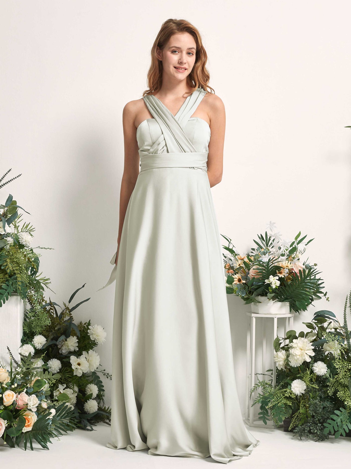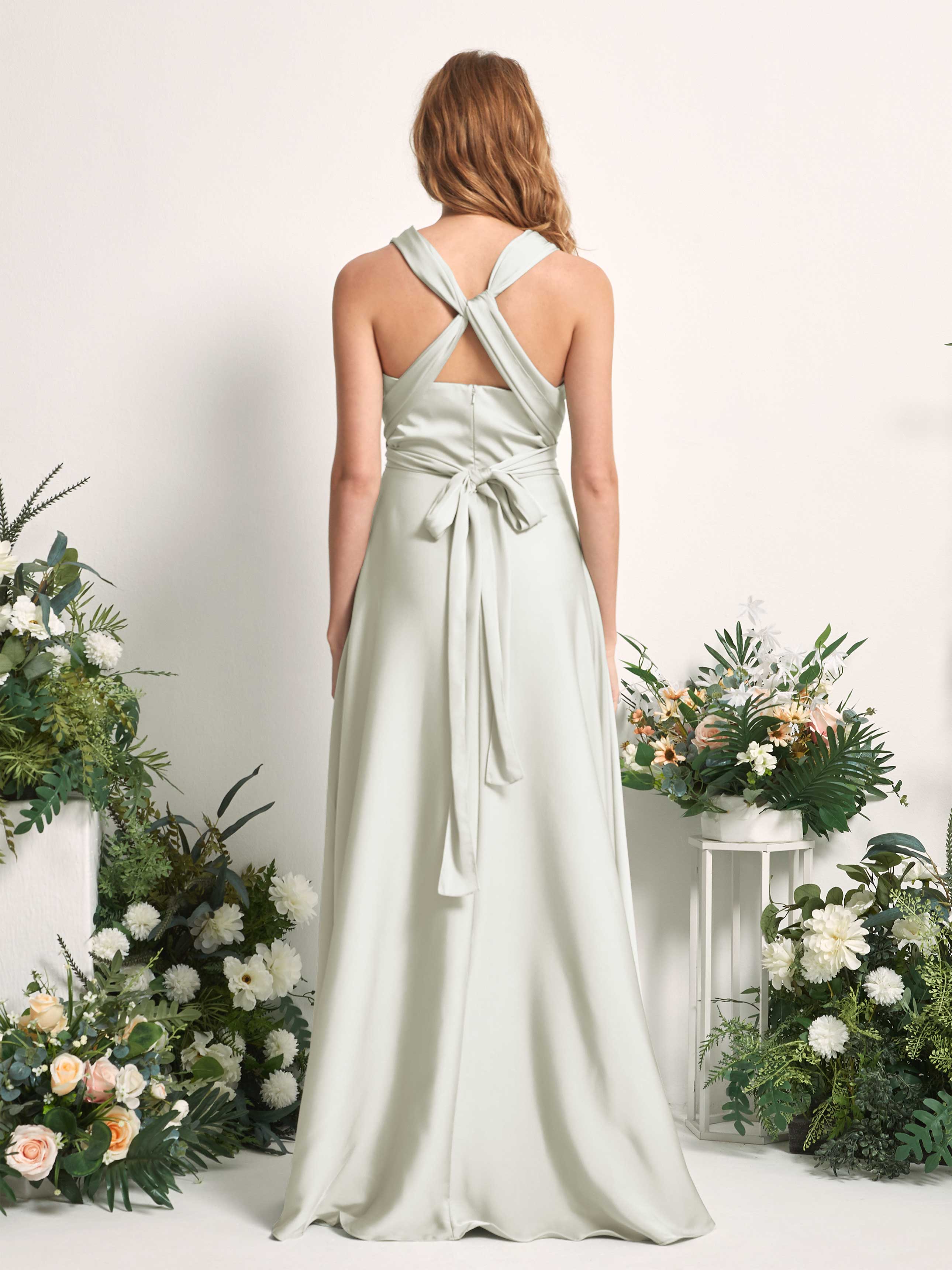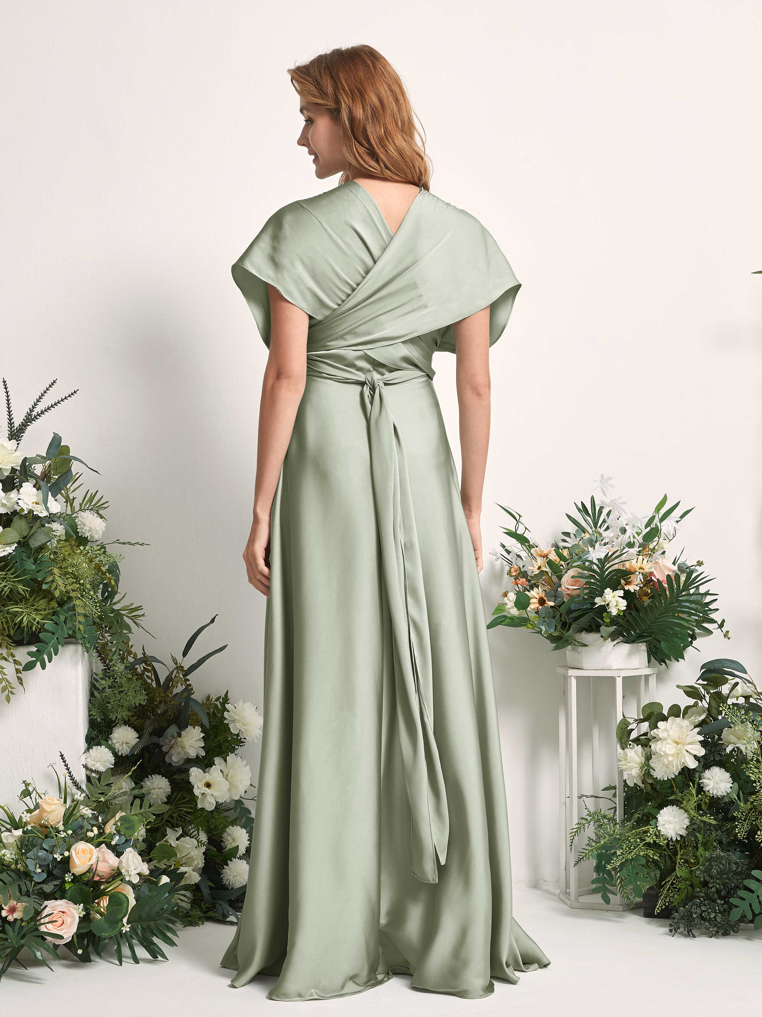 Sage Green Satin Convertible Sweetheart Strappy Back Maxi Dress