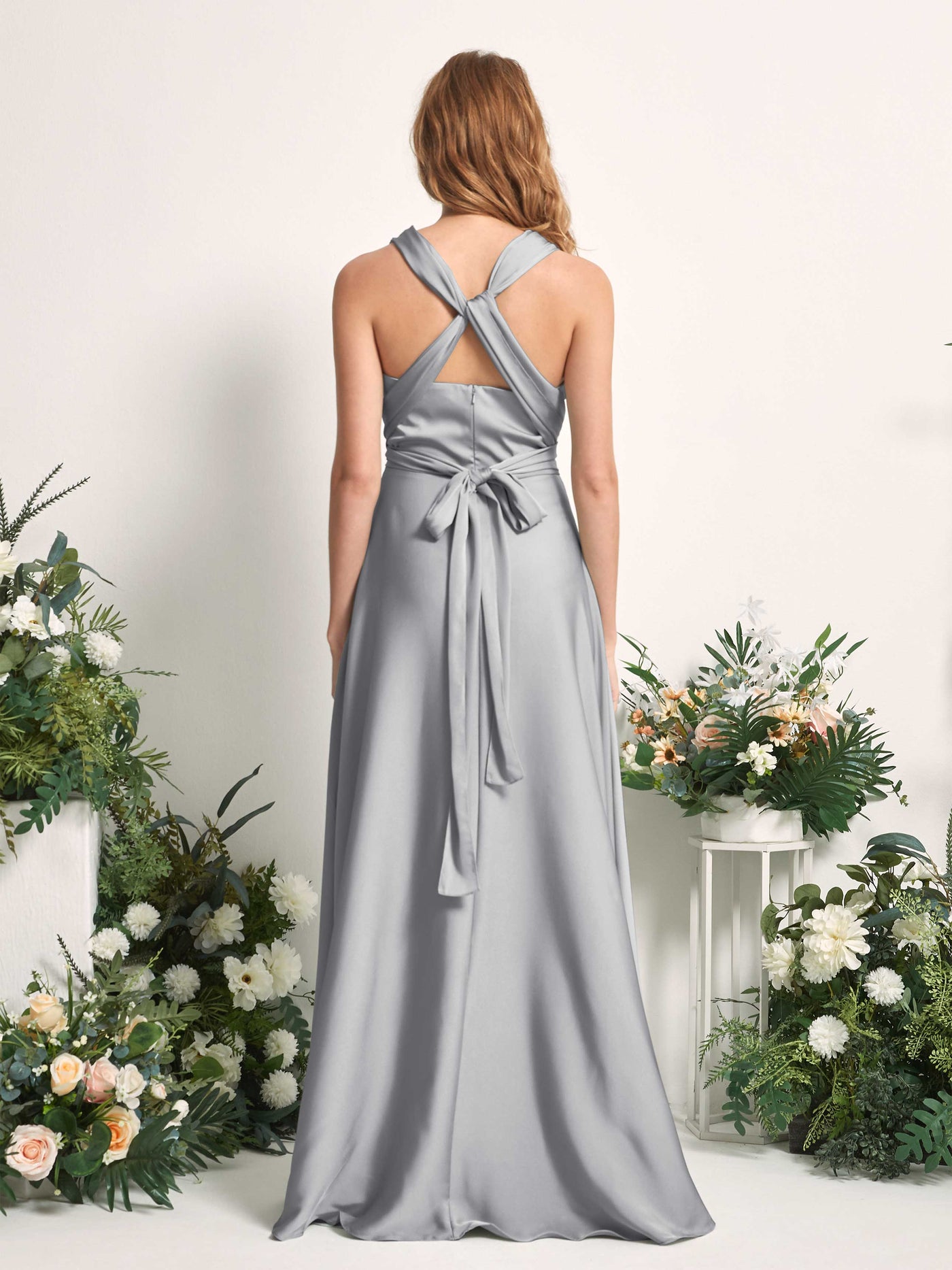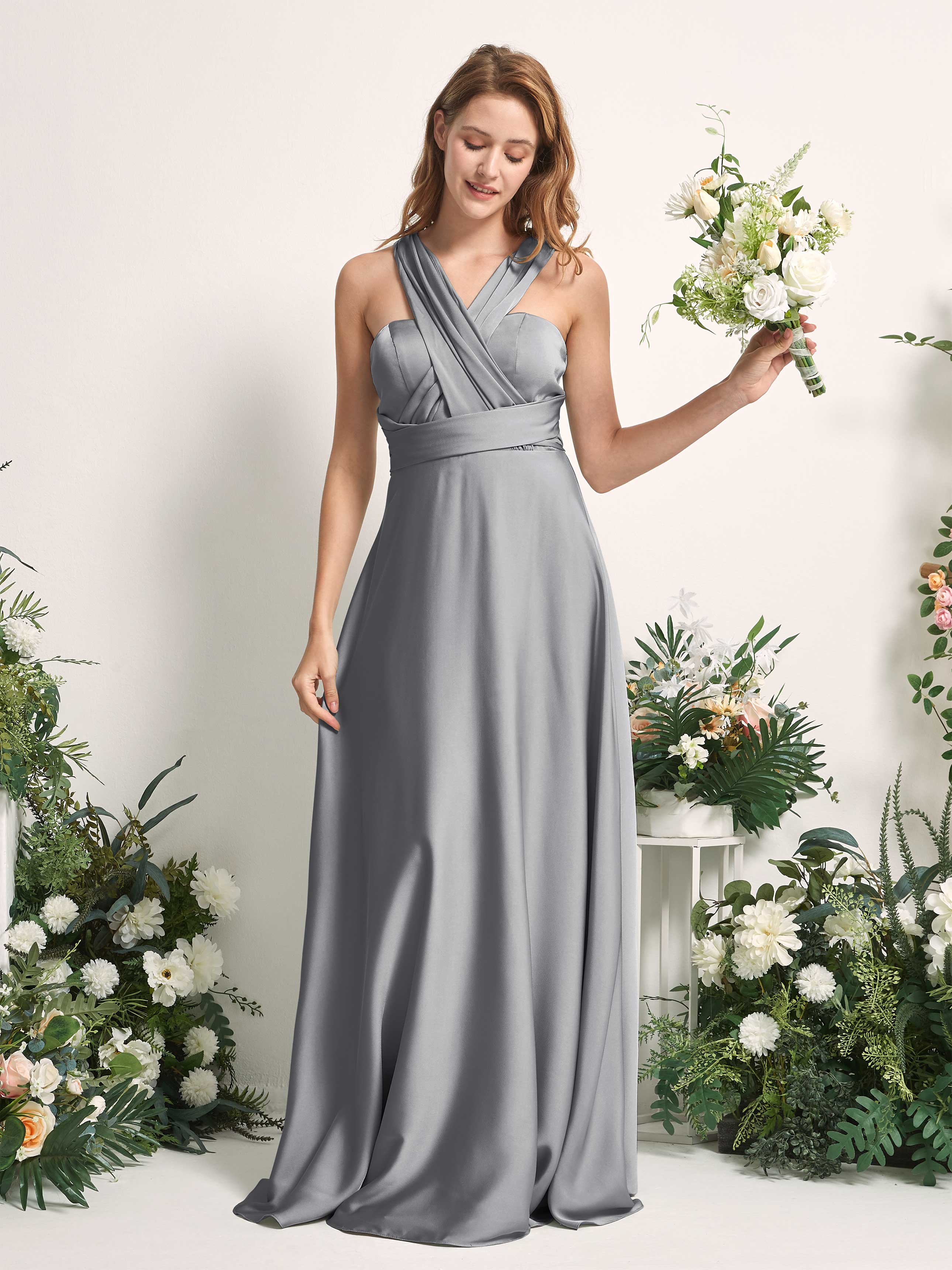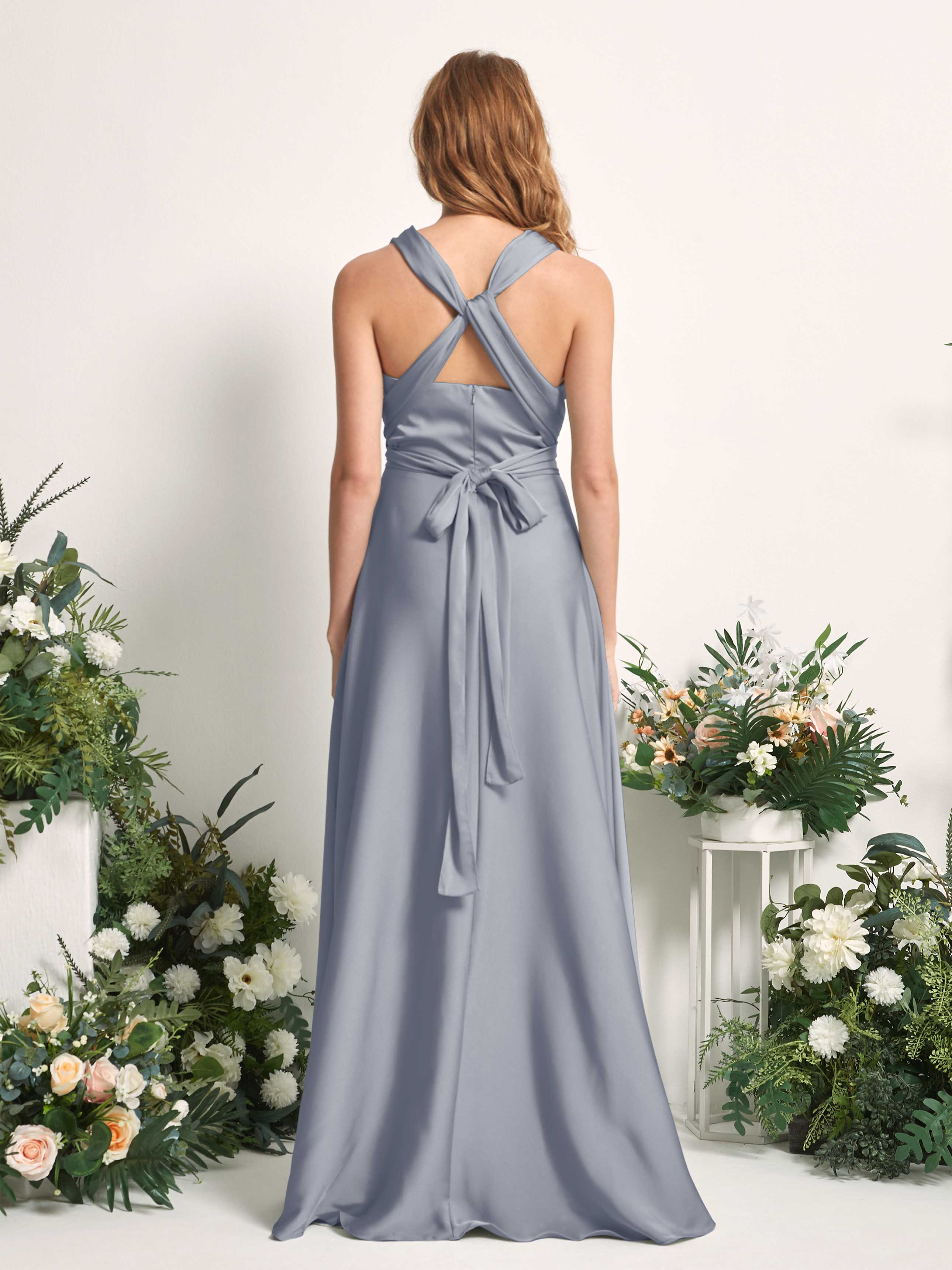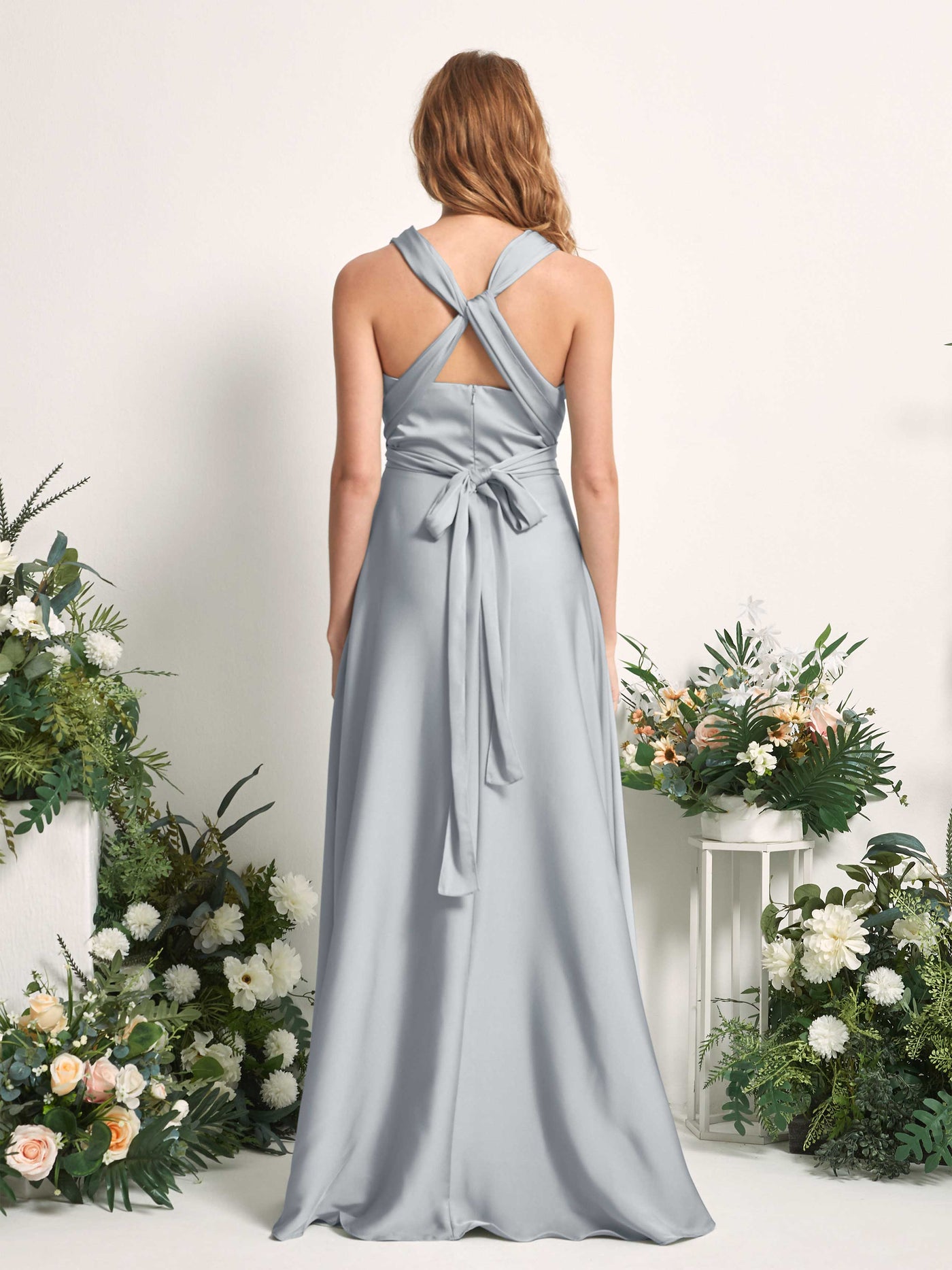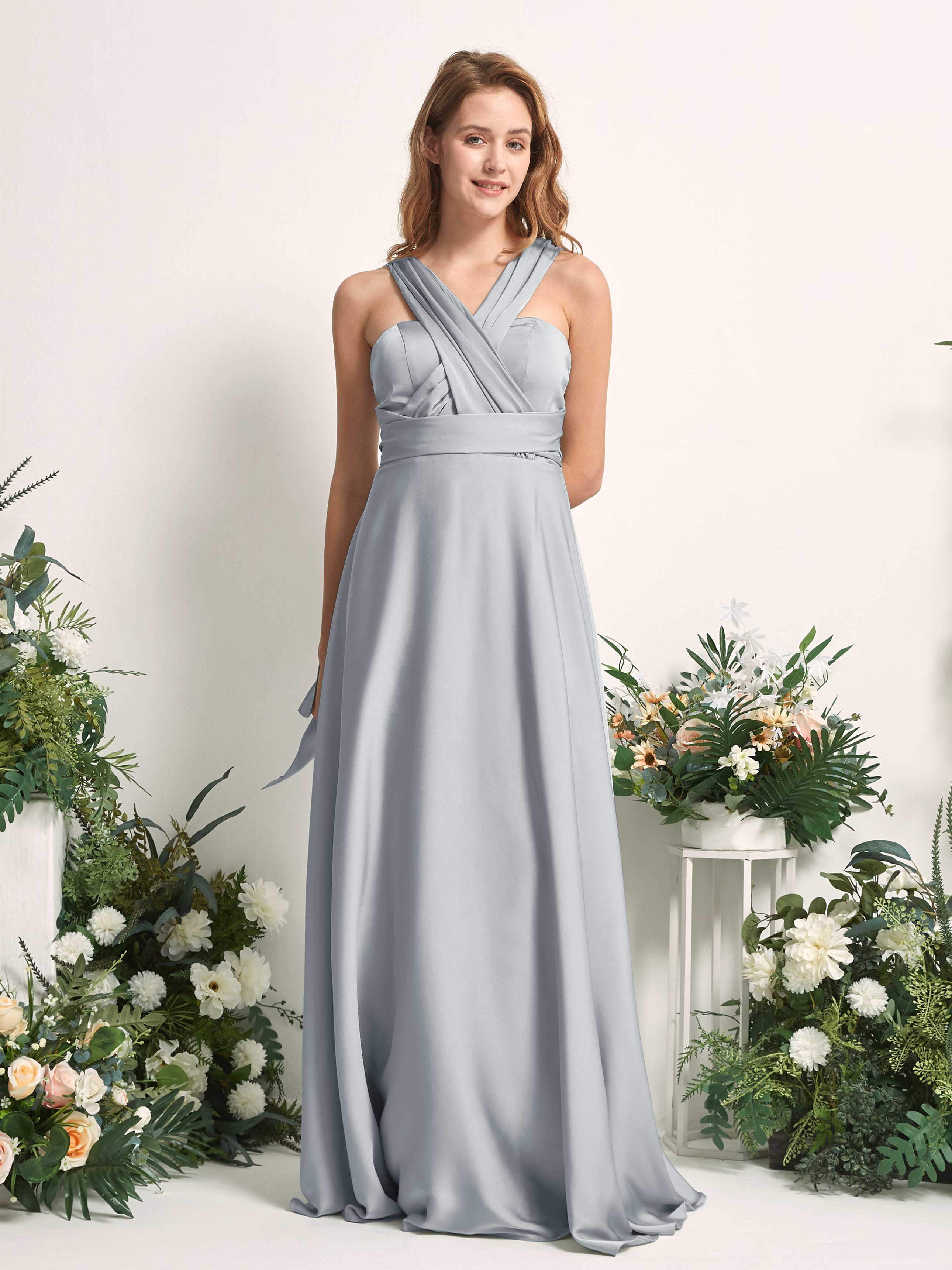 Sage Green Satin Convertible Sweetheart Strappy Back Maxi Dress