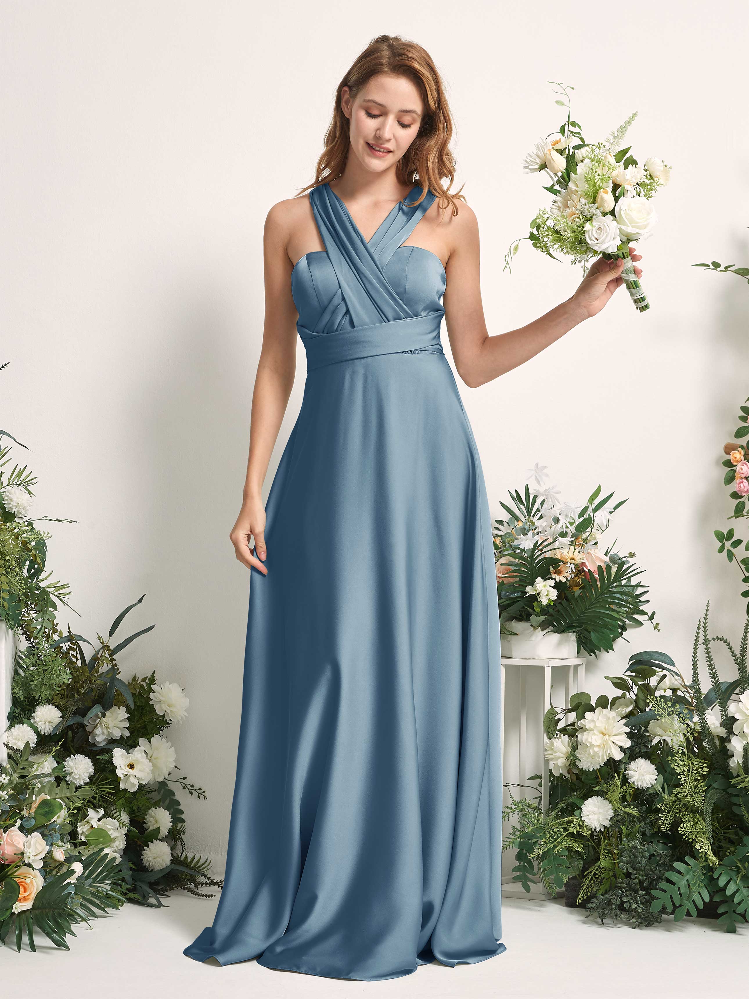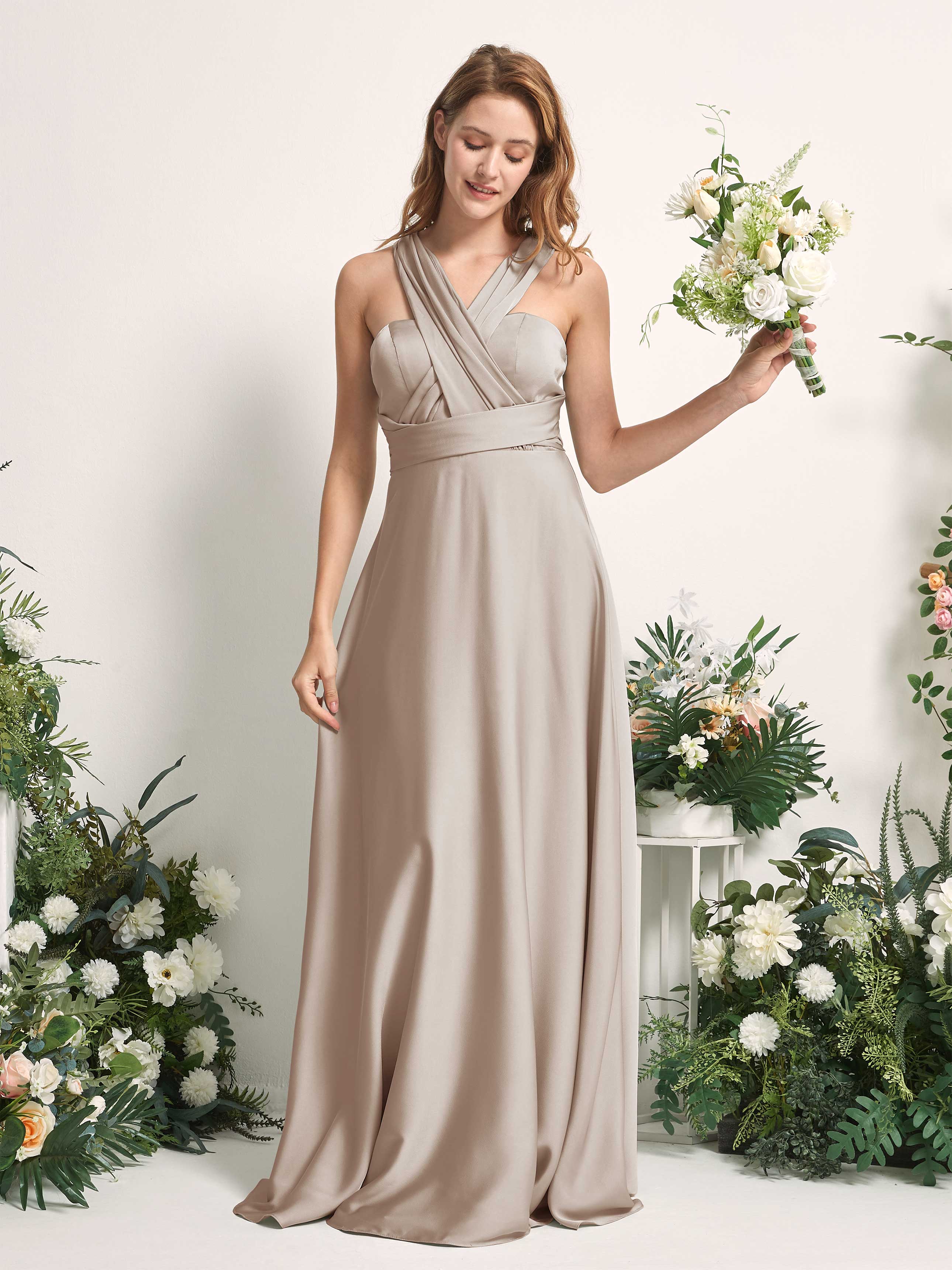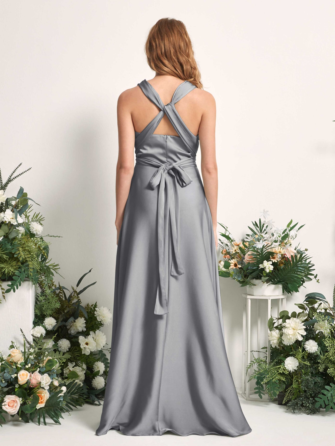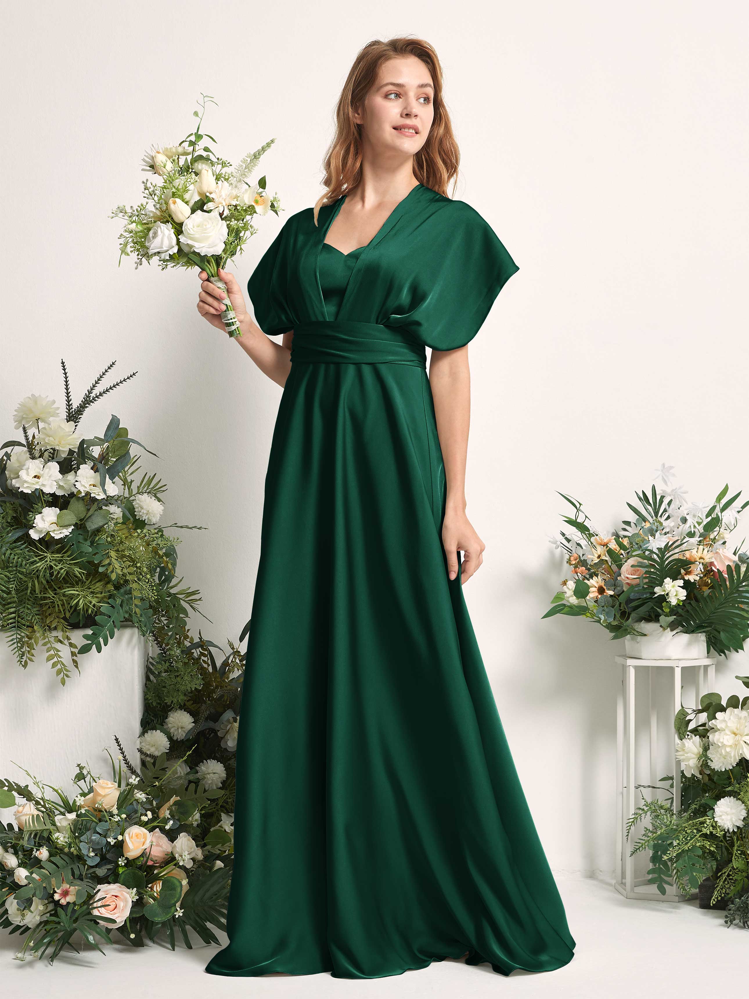 Sage Green Satin Convertible Sweetheart Strappy Back Maxi Dress