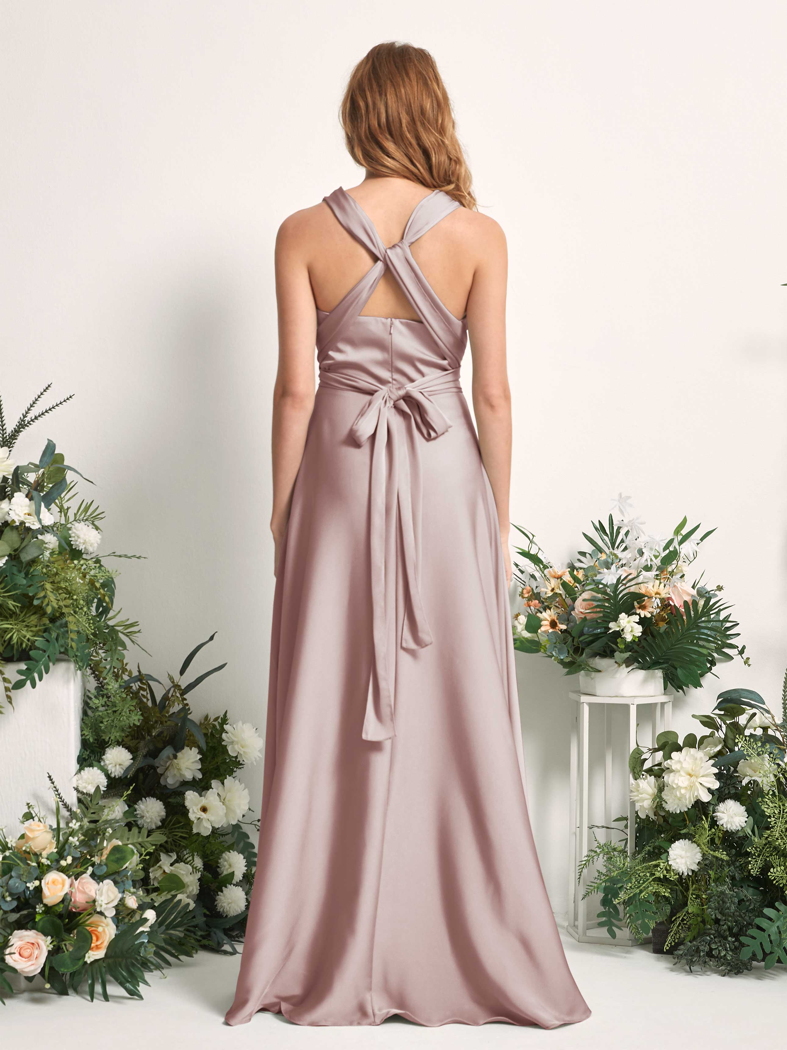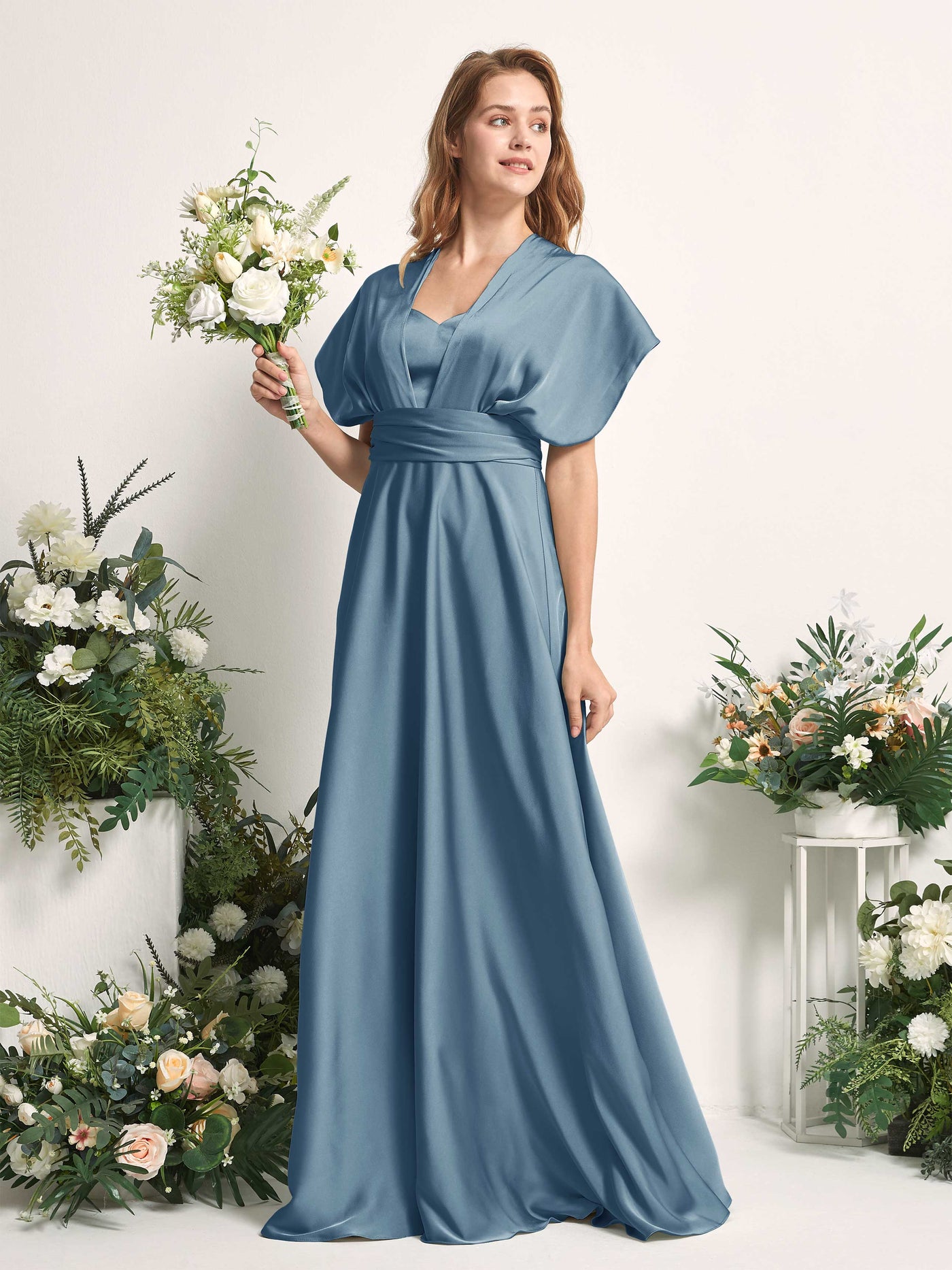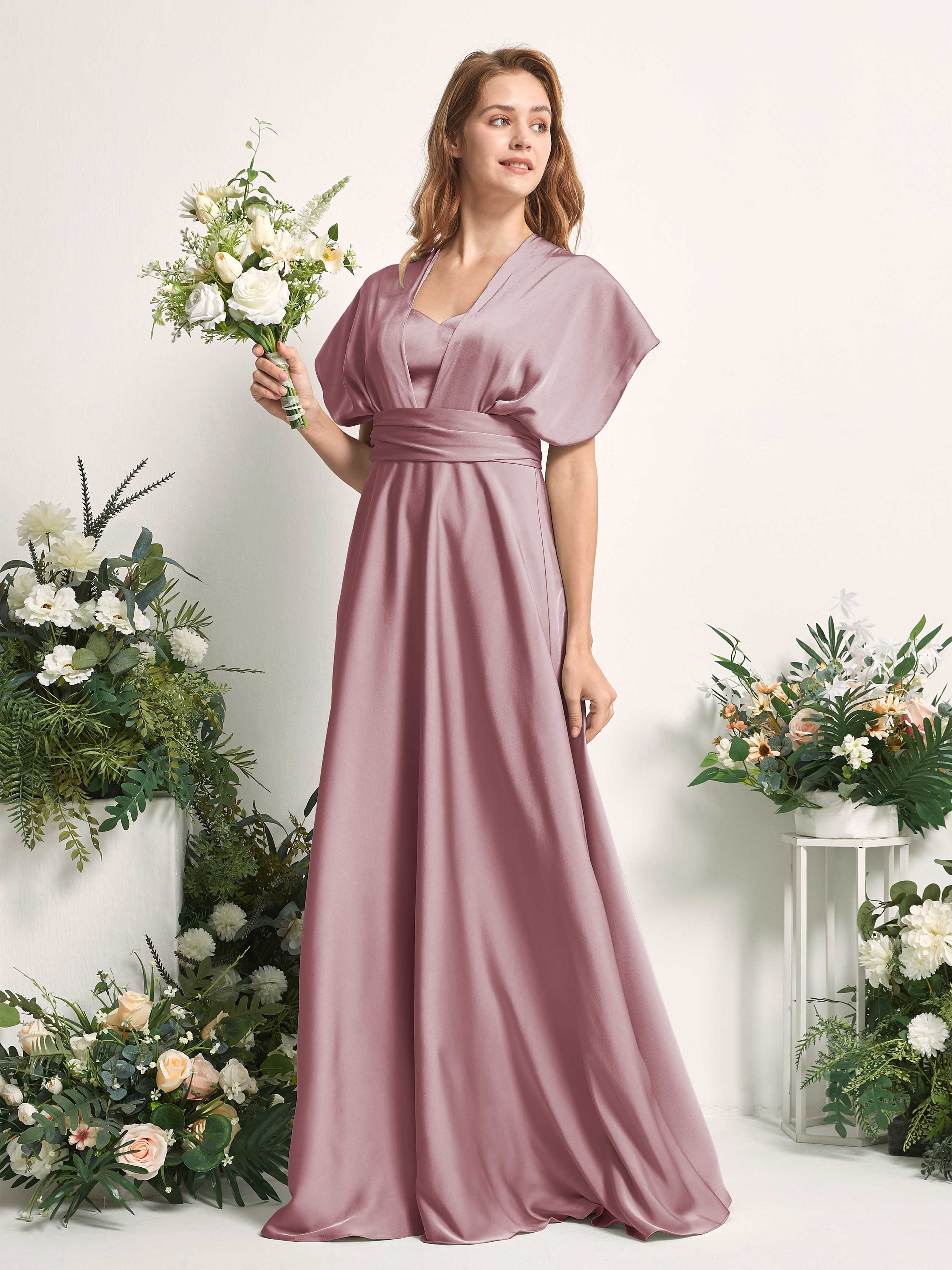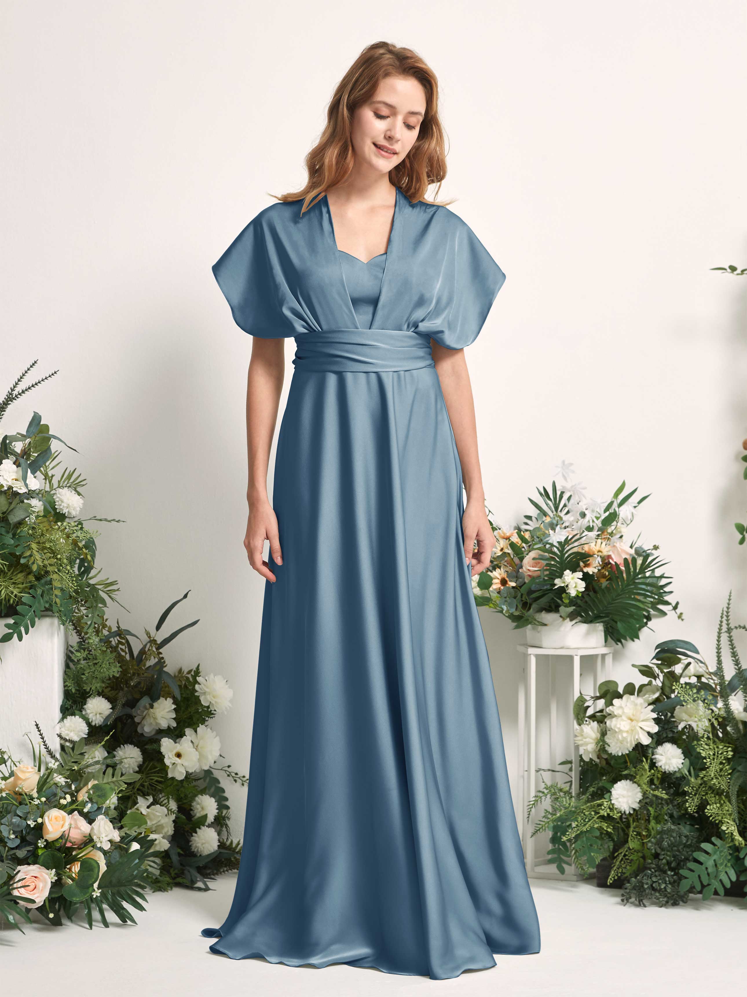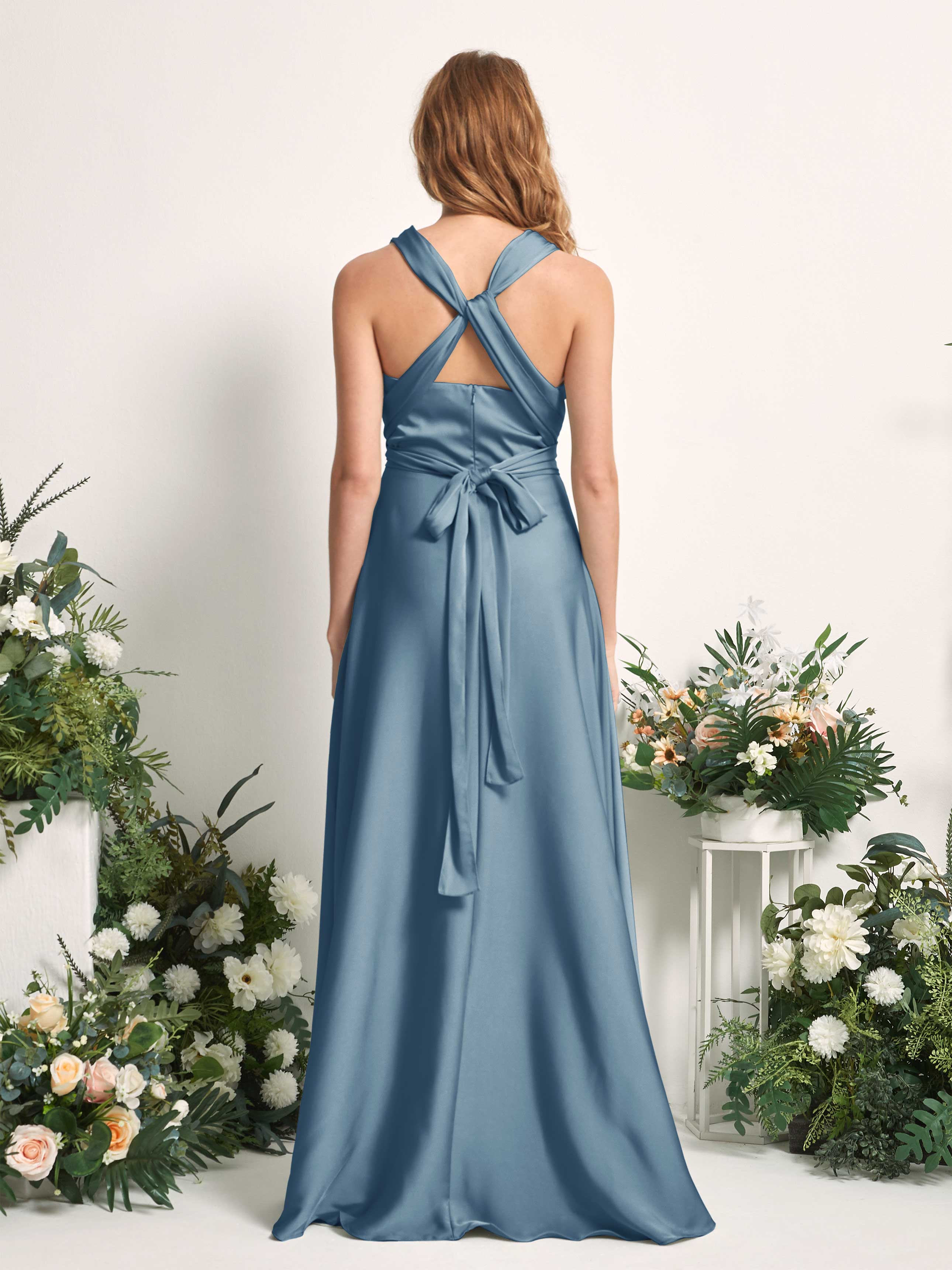 Sage Green Satin Convertible Sweetheart Strappy Back Maxi Dress