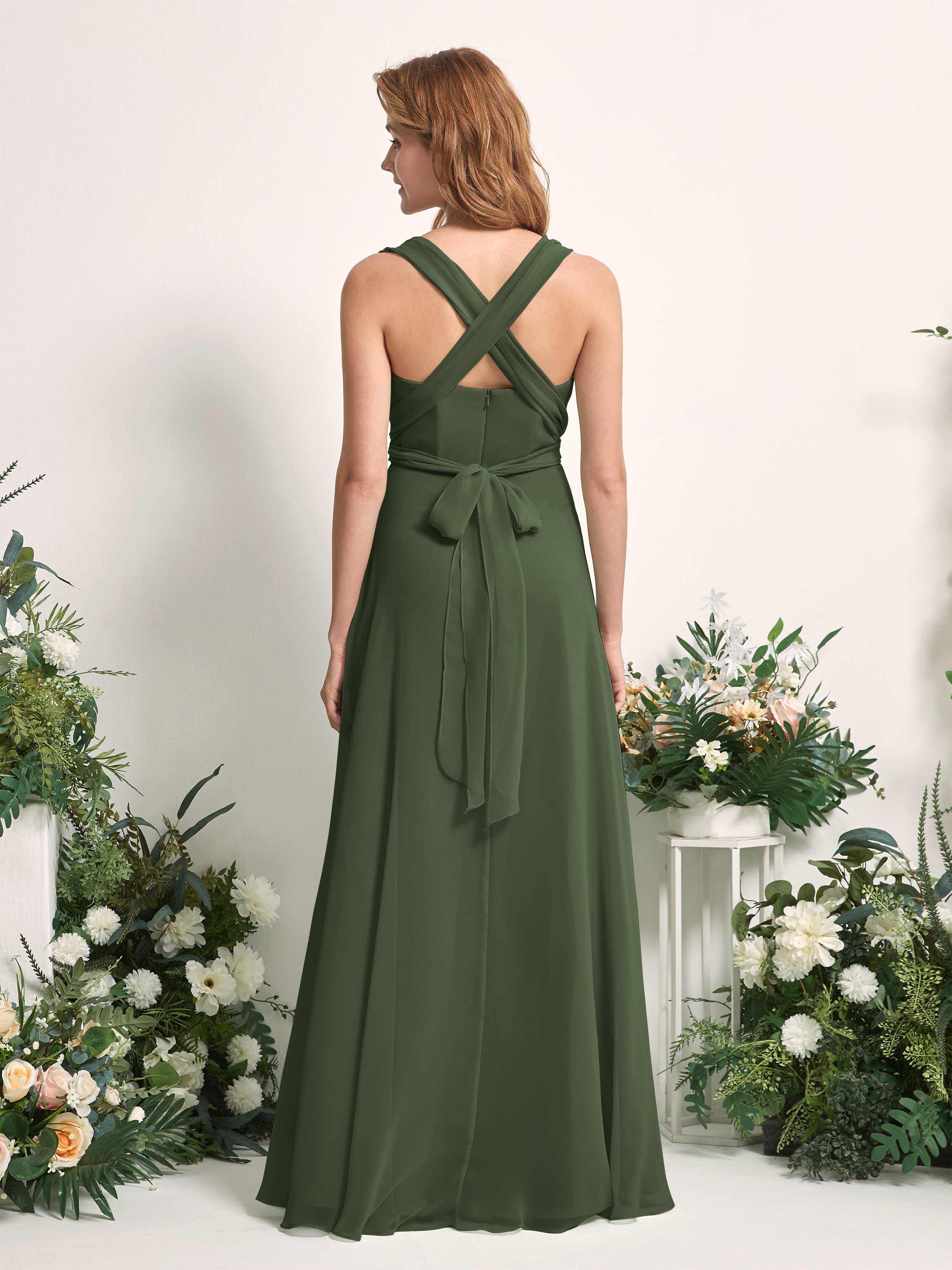 Carlyna Carolyn Convertible Martini Olive Bridesmaid Dress Maxi Sleeveless Sweetheart Dress Back View