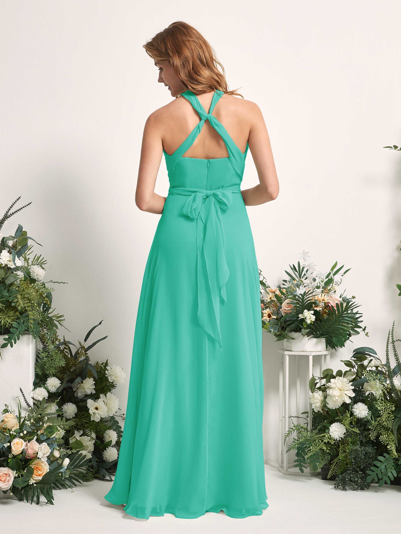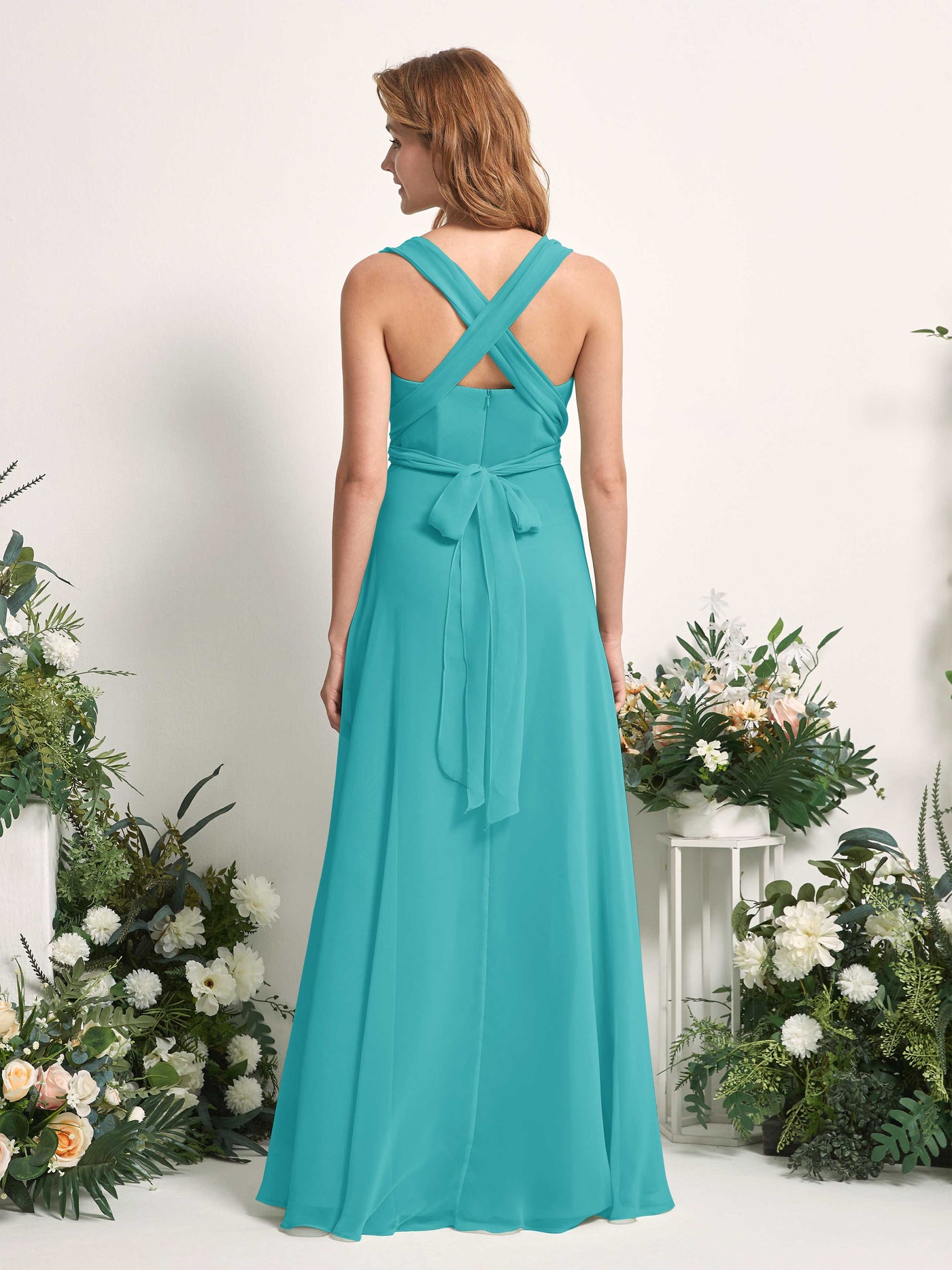 Carlyna Carolyn Convertible Turquoise Bridesmaid Dress Maxi Sleeveless Sweetheart Dress Back View