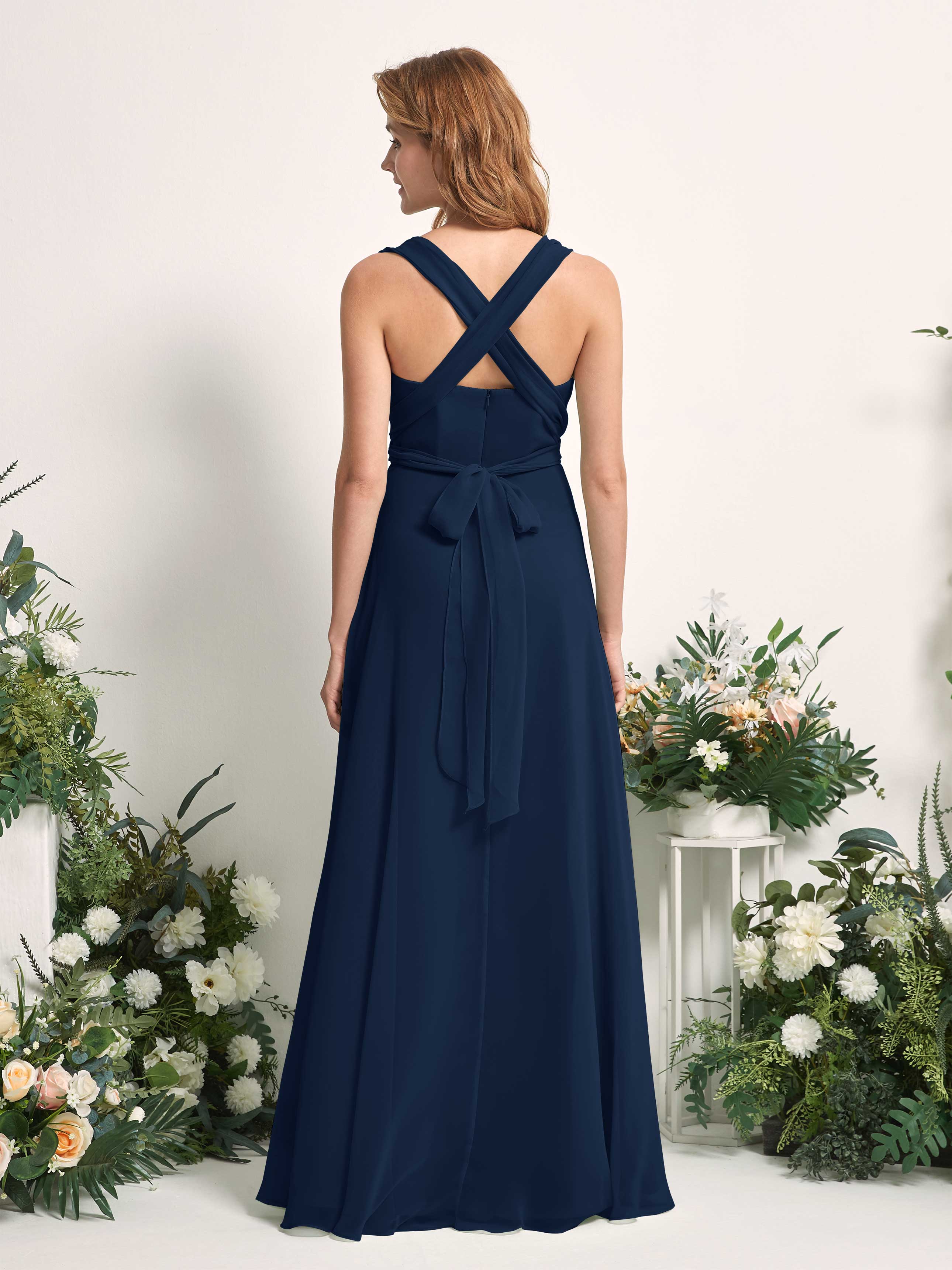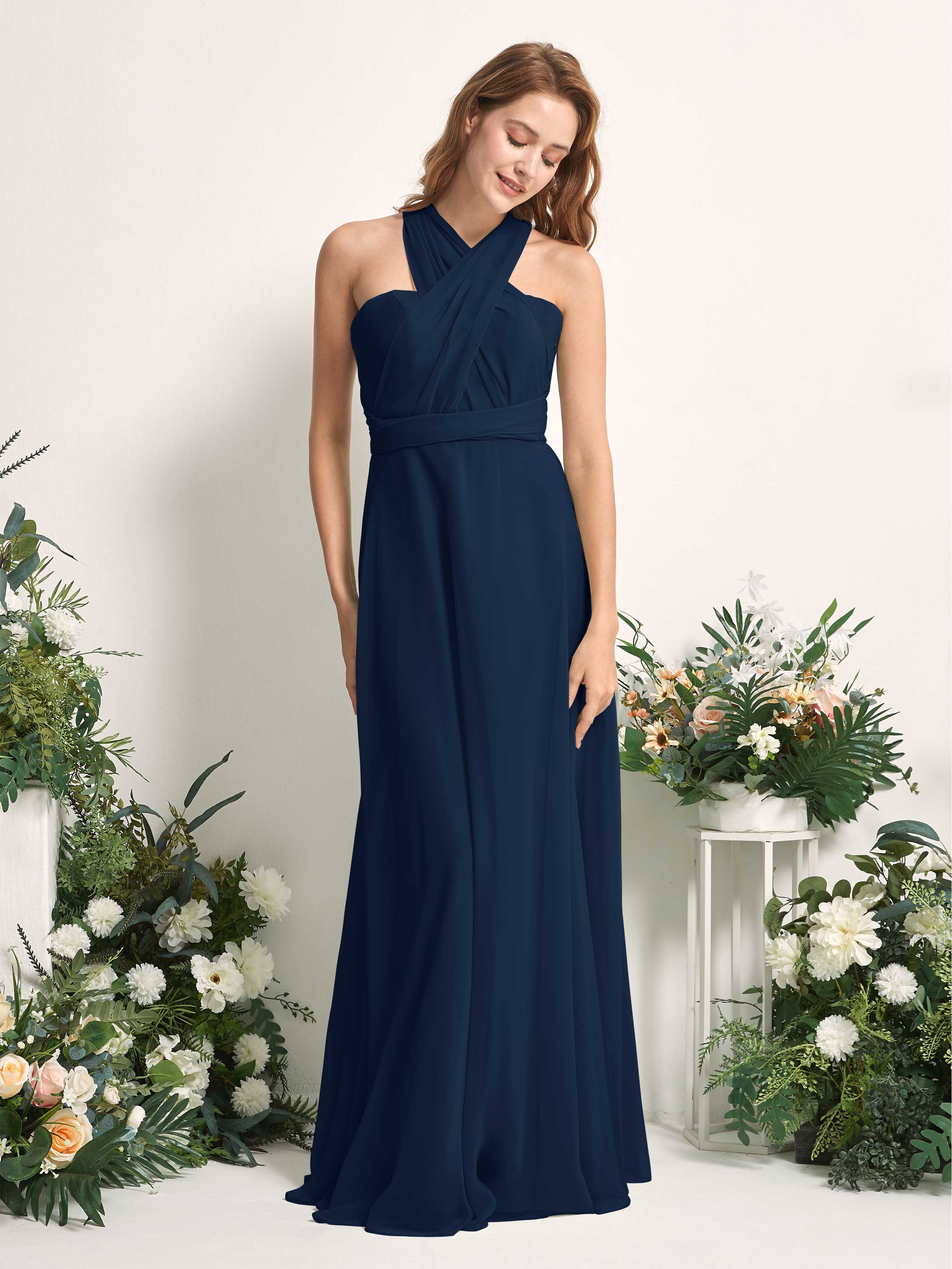 Carlyna Carolyn Convertible Navy Bridesmaid Dress Maxi Sleeveless Sweetheart Dress Front View