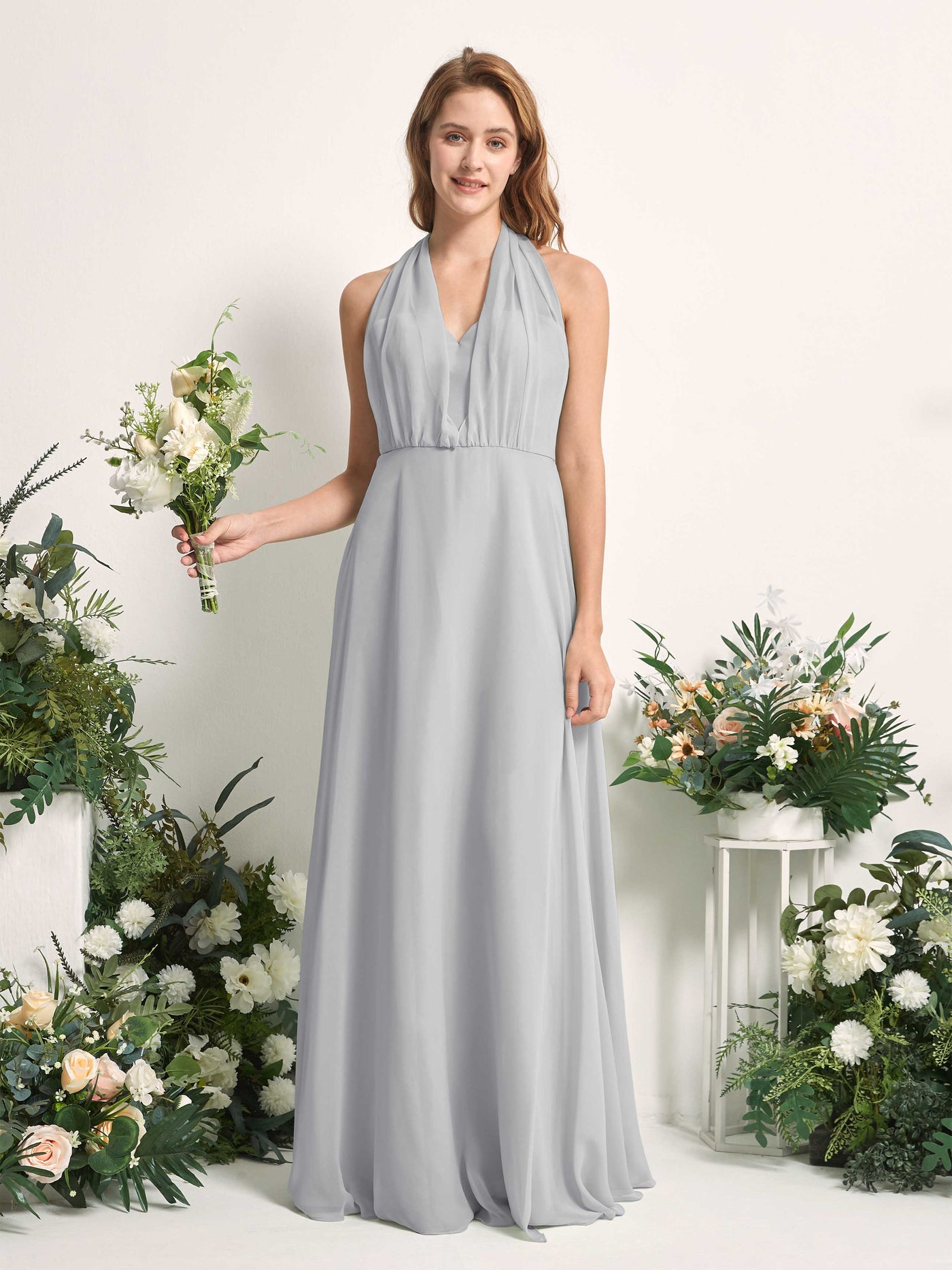 Carlyna Carolyn Convertible Silver Bridesmaid Dress Maxi Sleeveless Sweetheart Dress Front View