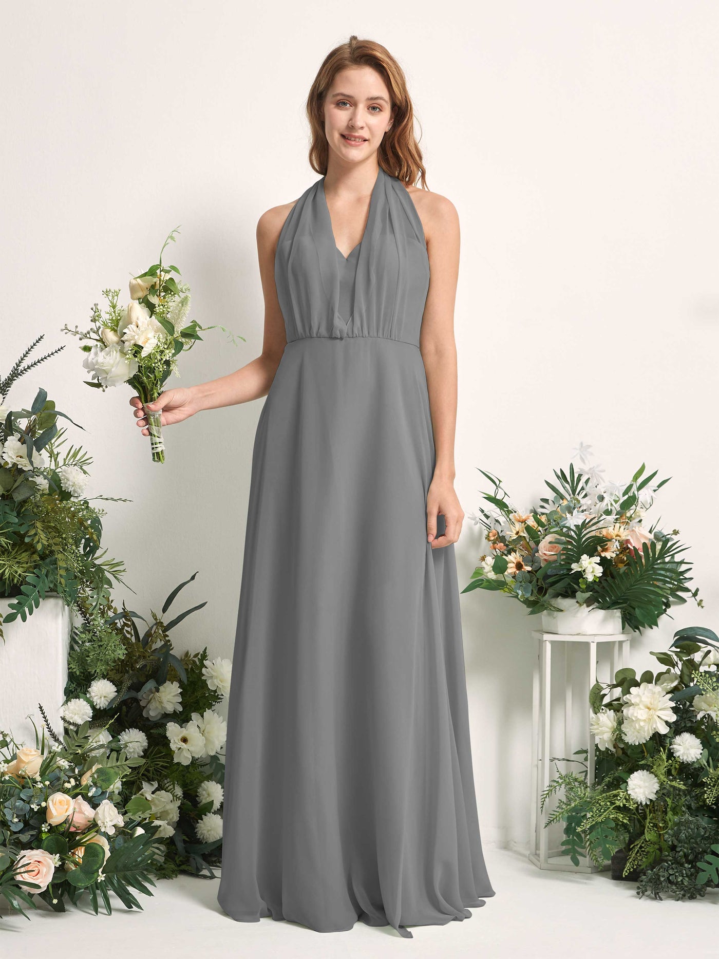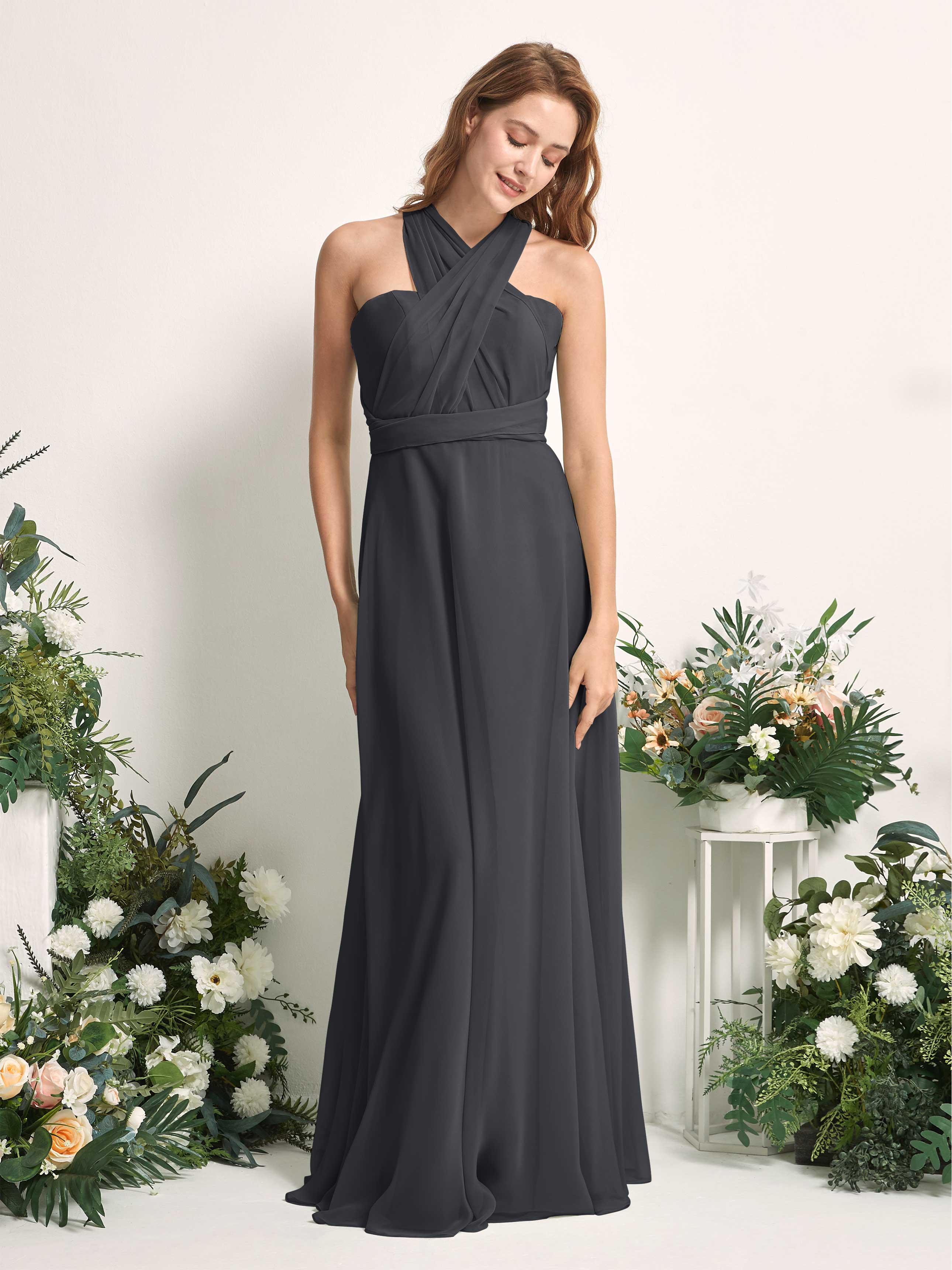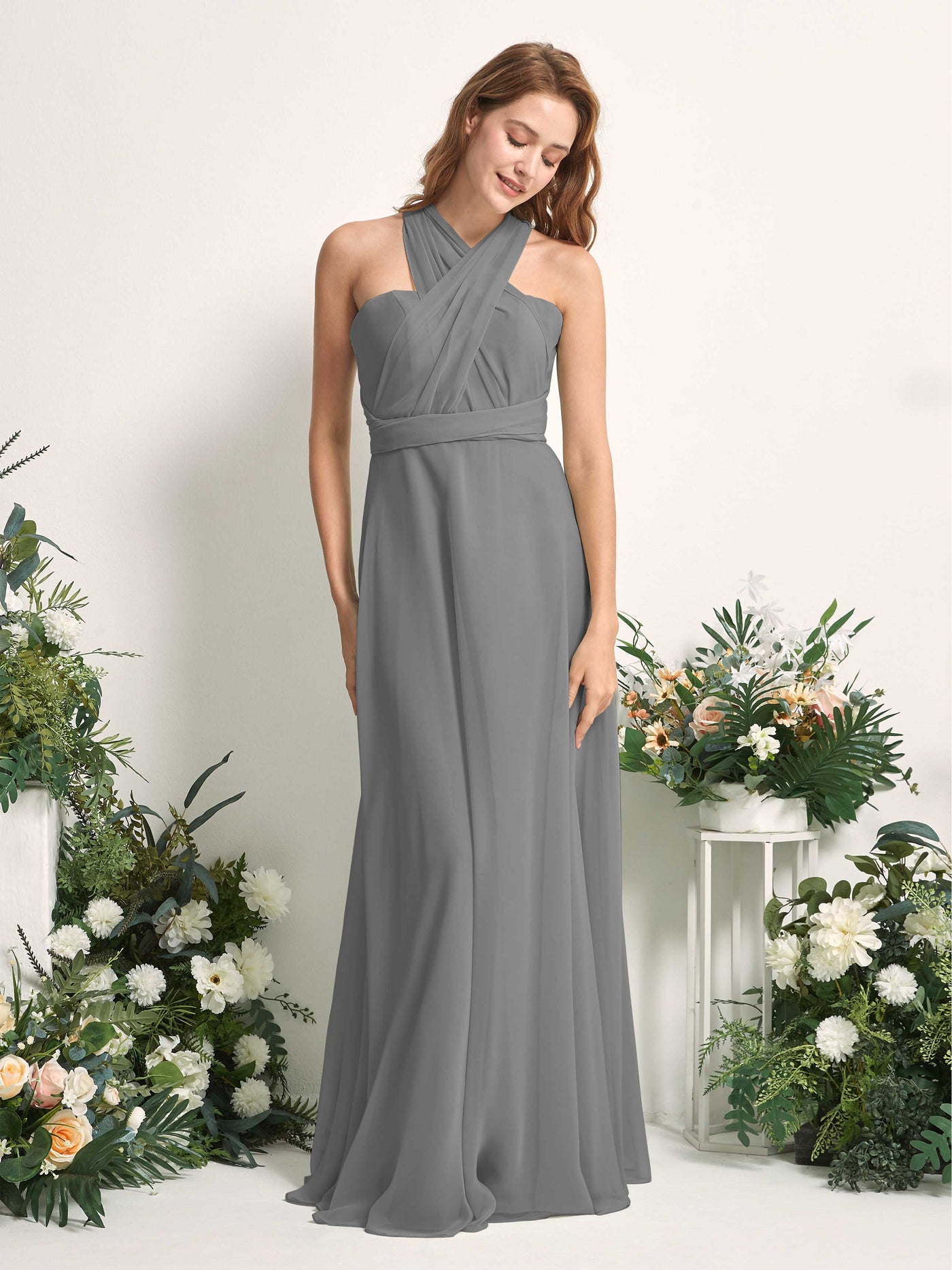 Carlyna Carolyn Convertible Steel Gray Bridesmaid Dress Maxi Sleeveless Sweetheart Dress Front View