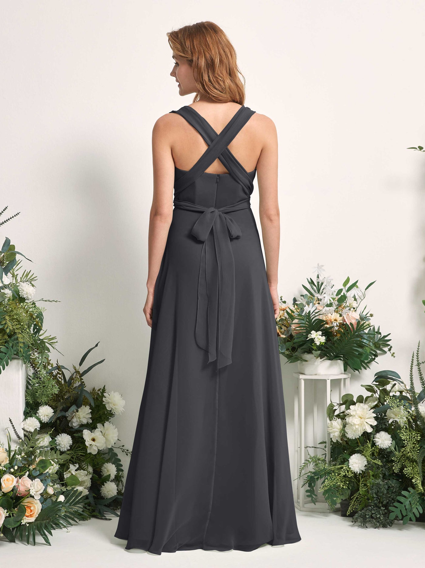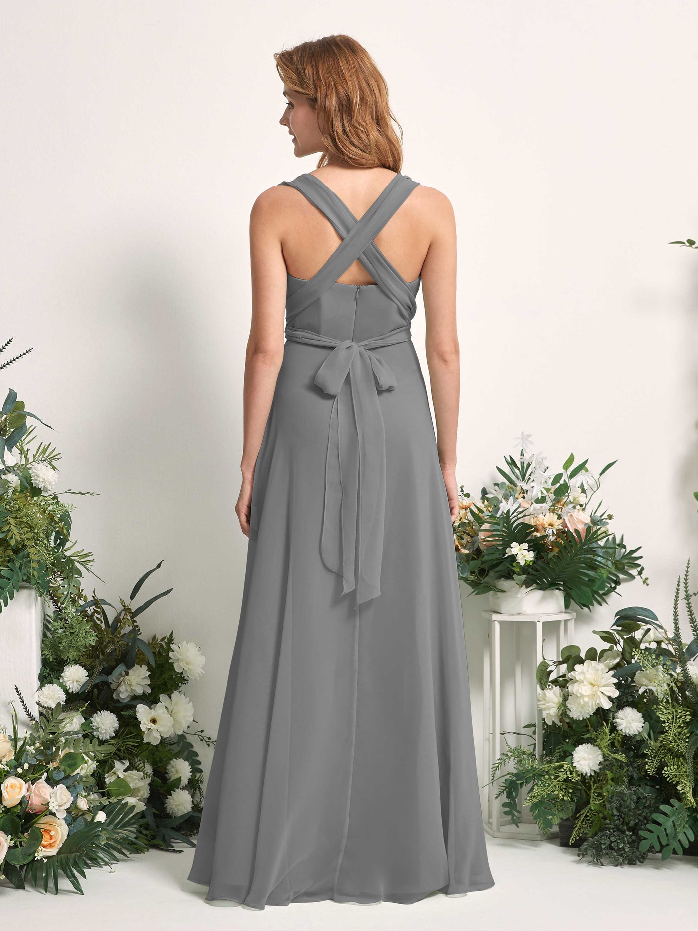 Carlyna Carolyn Convertible Steel Gray Bridesmaid Dress Maxi Sleeveless Sweetheart Dress Back View
