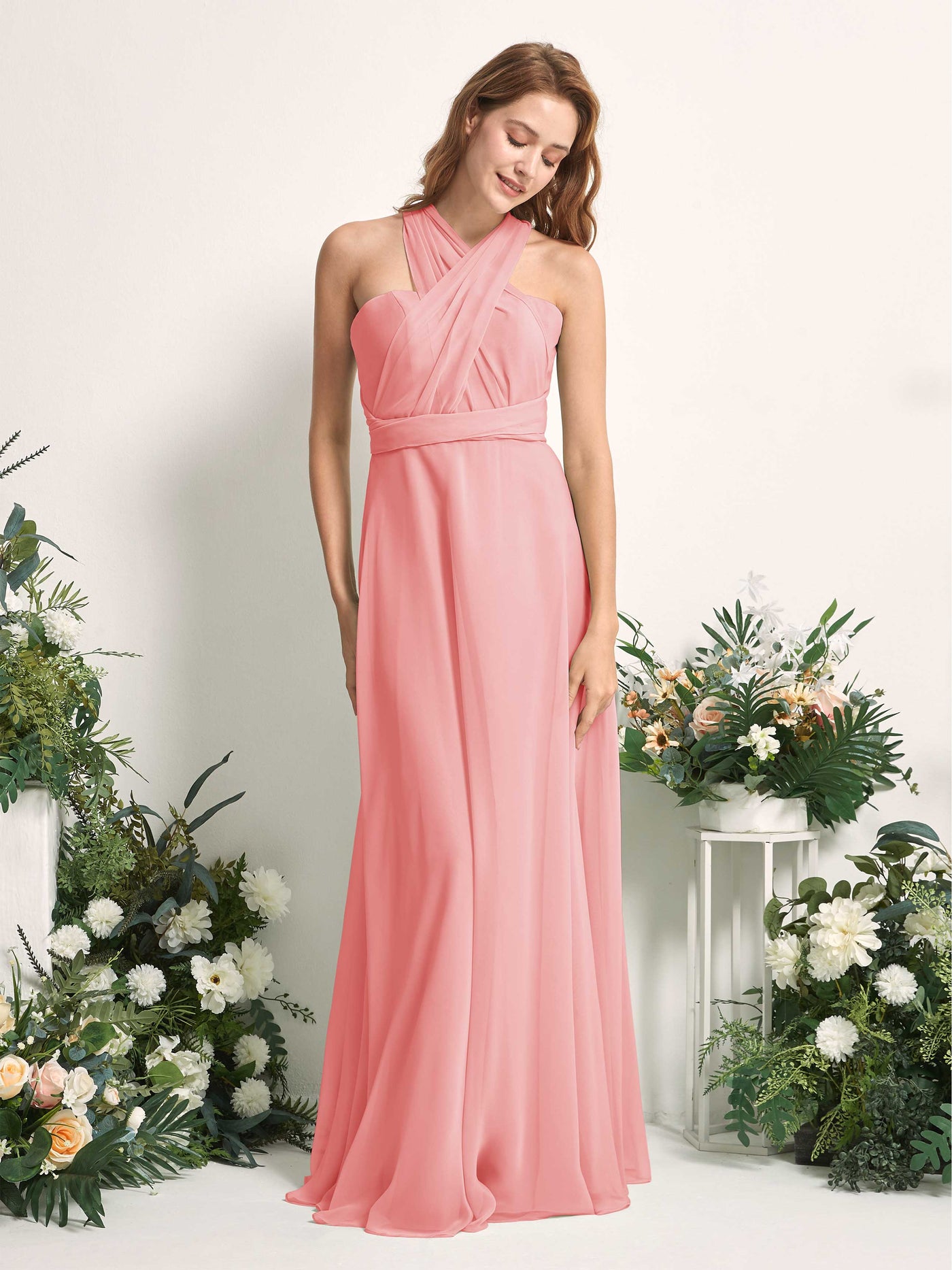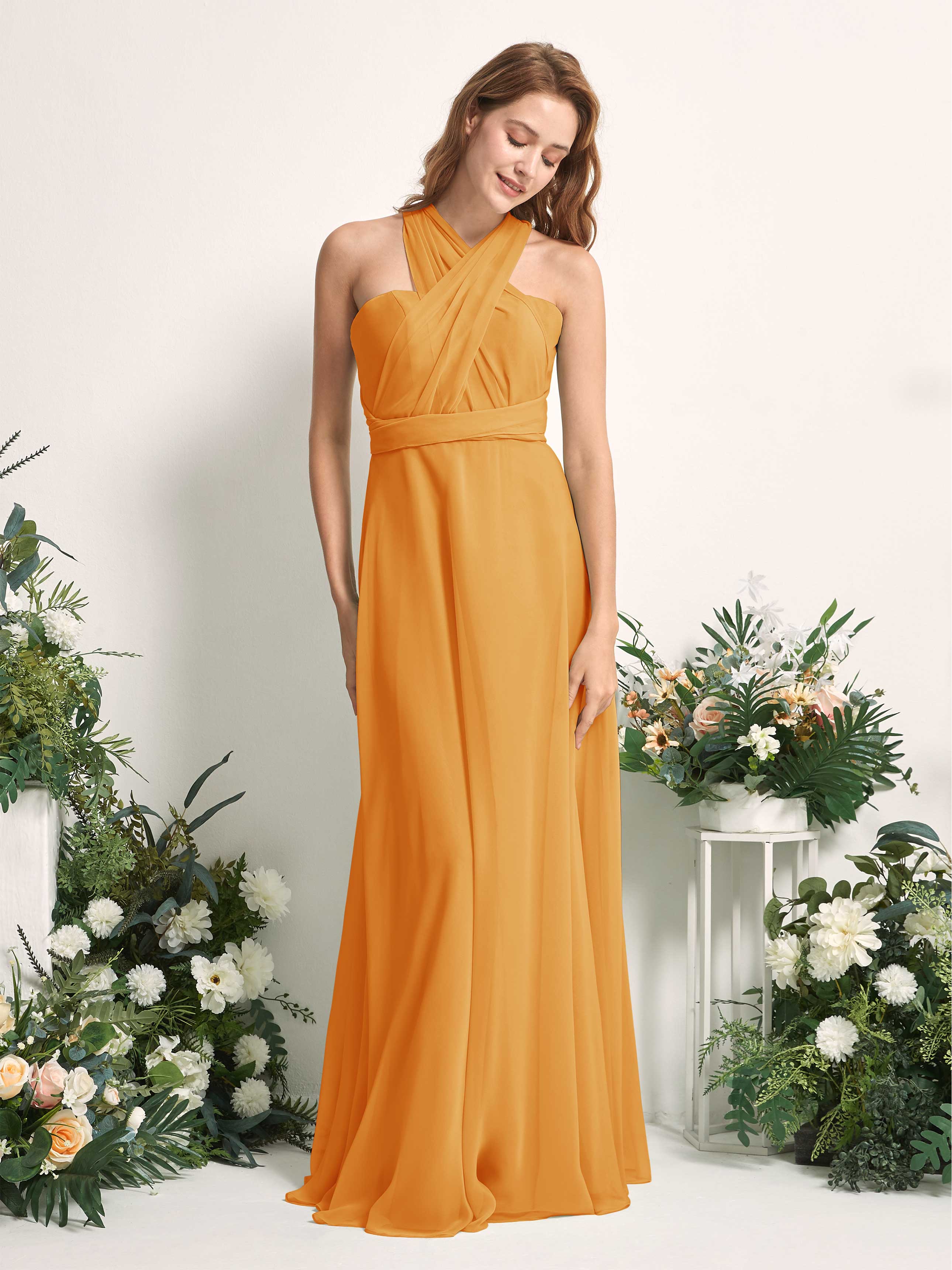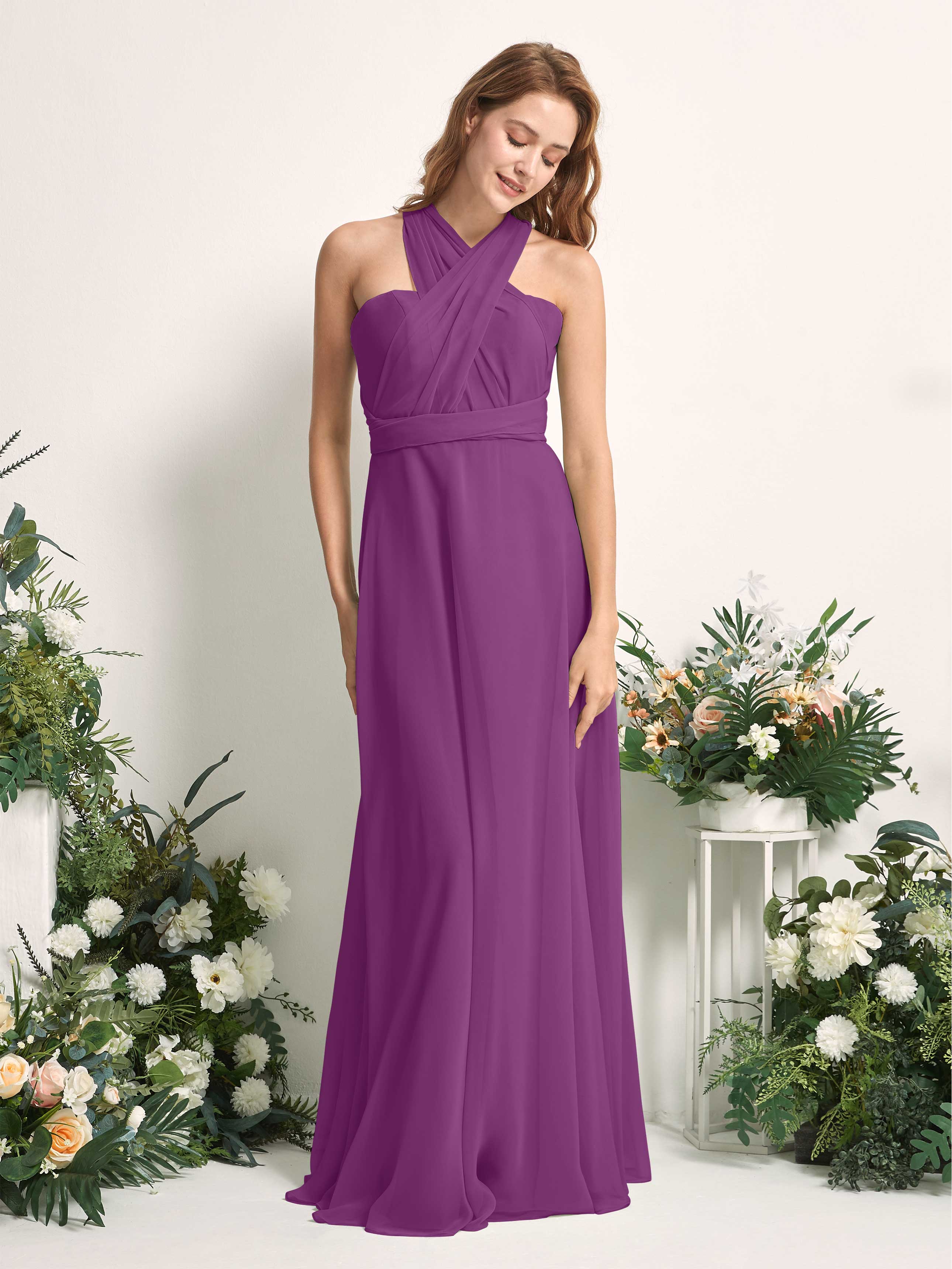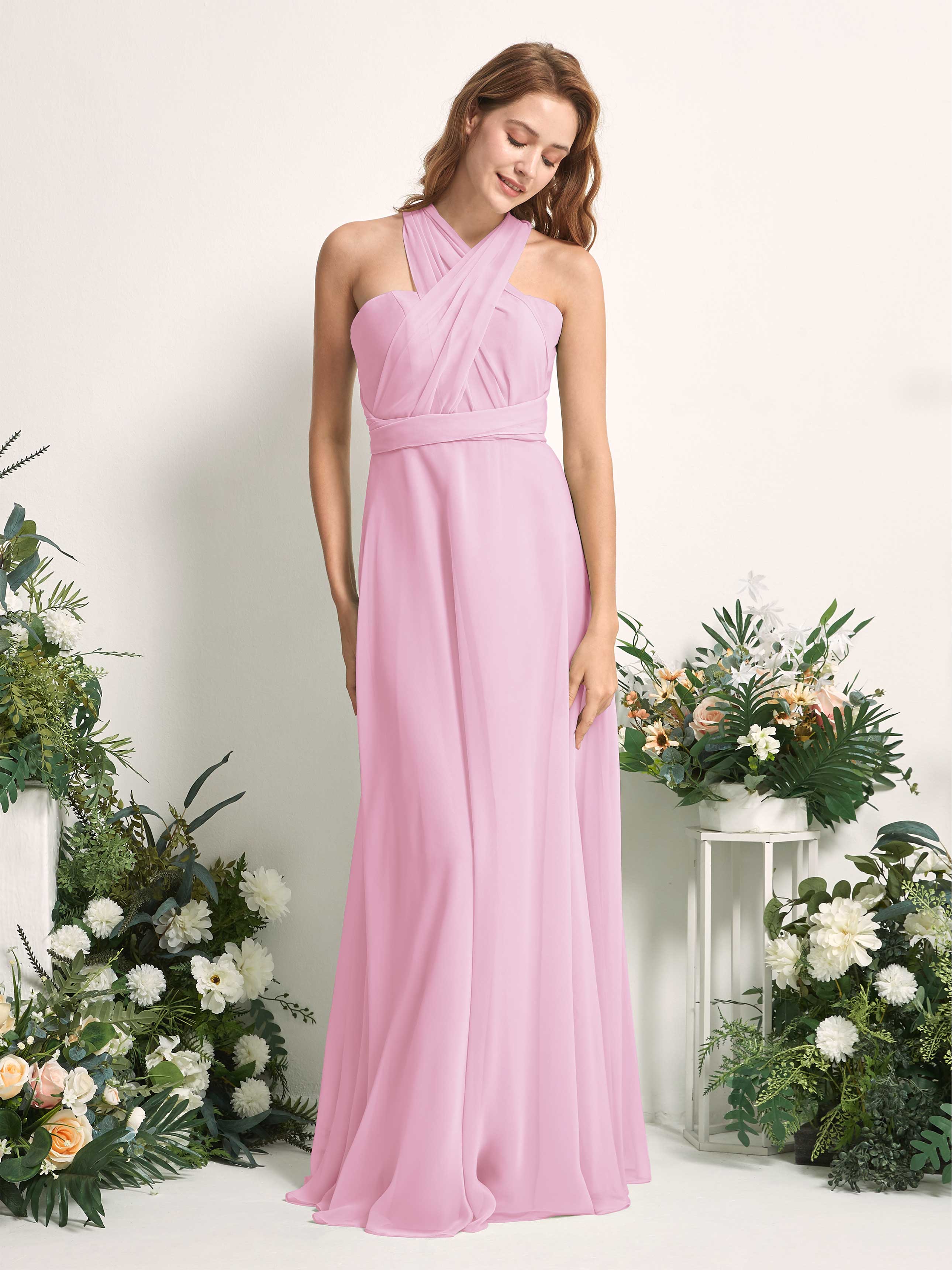 The Carlyna Carolyn Convertible Chiffon Dress offers endless possibilities for your bridesmaids! This versatile maxi dress is crafted from flowing chiffon and features a classic A-line silhouette. Choose from a variety of necklines, including sweetheart and halter, and explore countless styling options thanks to its convertible design. Whether you prefer a strapless look, a one-shoulder design, or a halter neckline, this dress can be customized to suit each bridesmaid's unique style and comfort preferences. The strappy back or low back adds a touch of allure, while the flowing chiffon fabric ensures all-day comfort and effortless elegance.