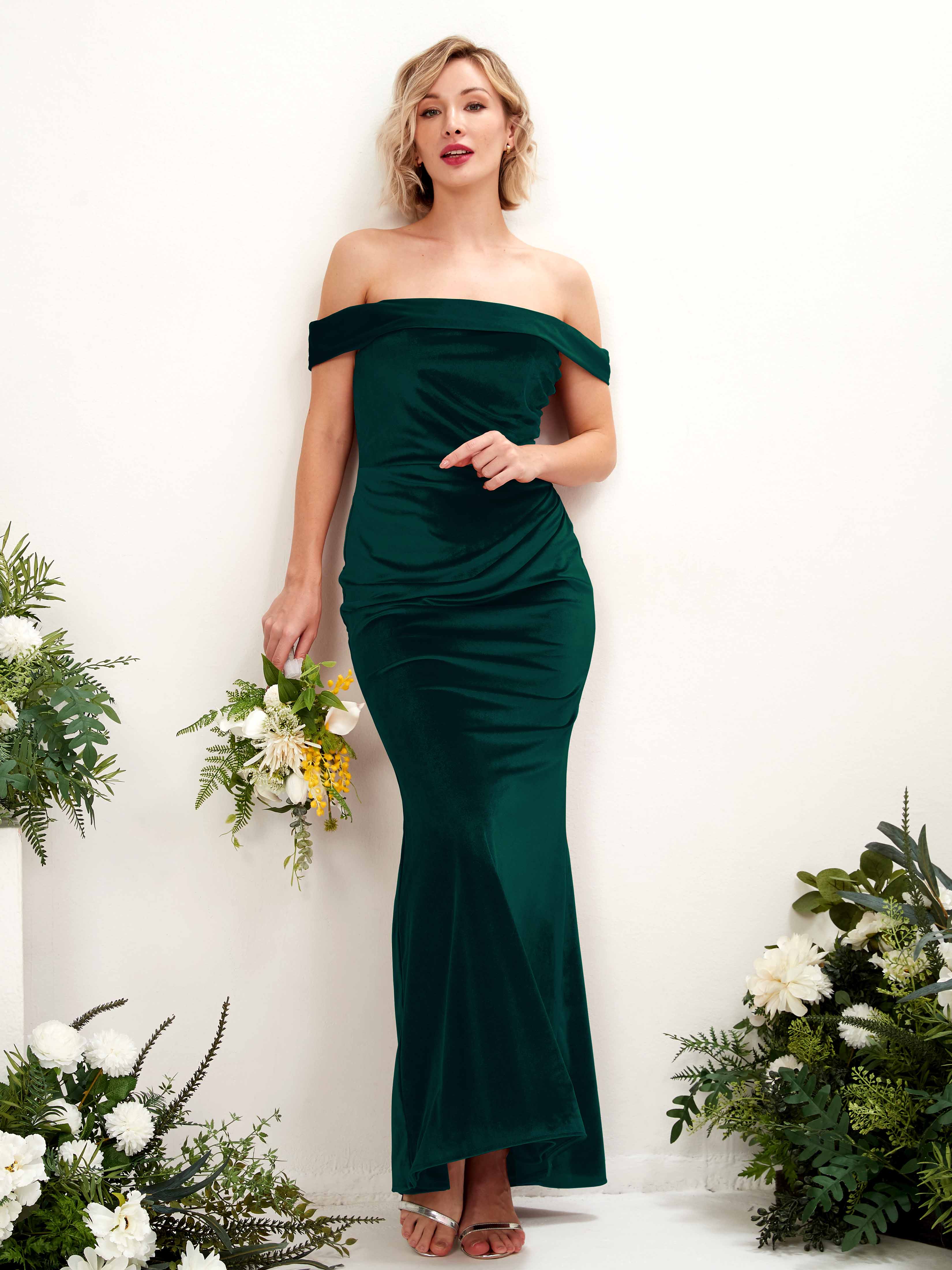Carlyna Mona Mermaid Hunter Green Velvet Bridesmaid Dress Maxi Sleeveless Off the Shoulder Dress Front View