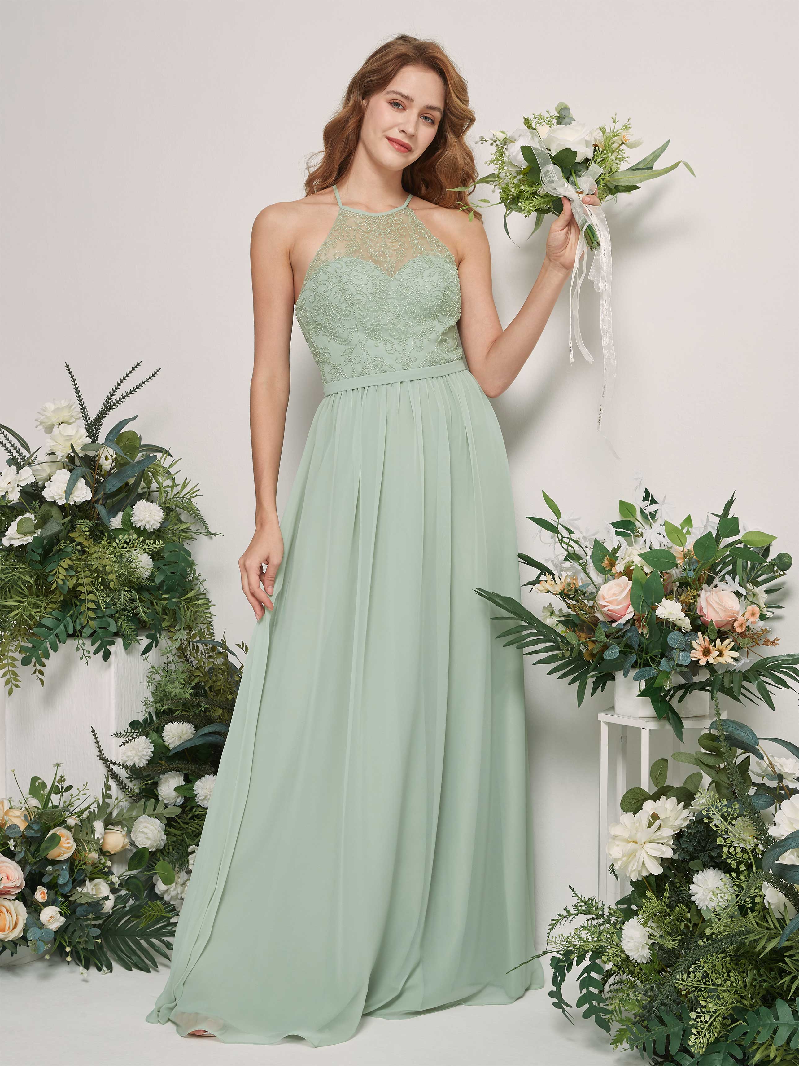 Sage Green Chiffon A-Line Illusion Strappy Back Maxi Dress