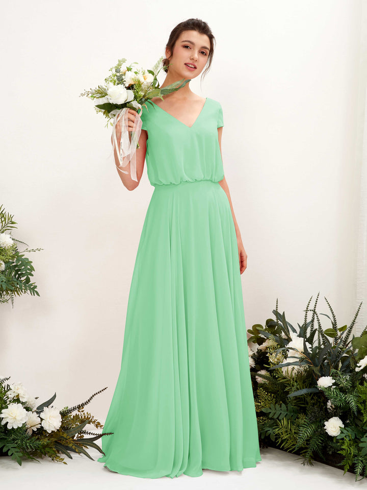 Mint Green Chiffon A-Line V-Neck Maxi Dress