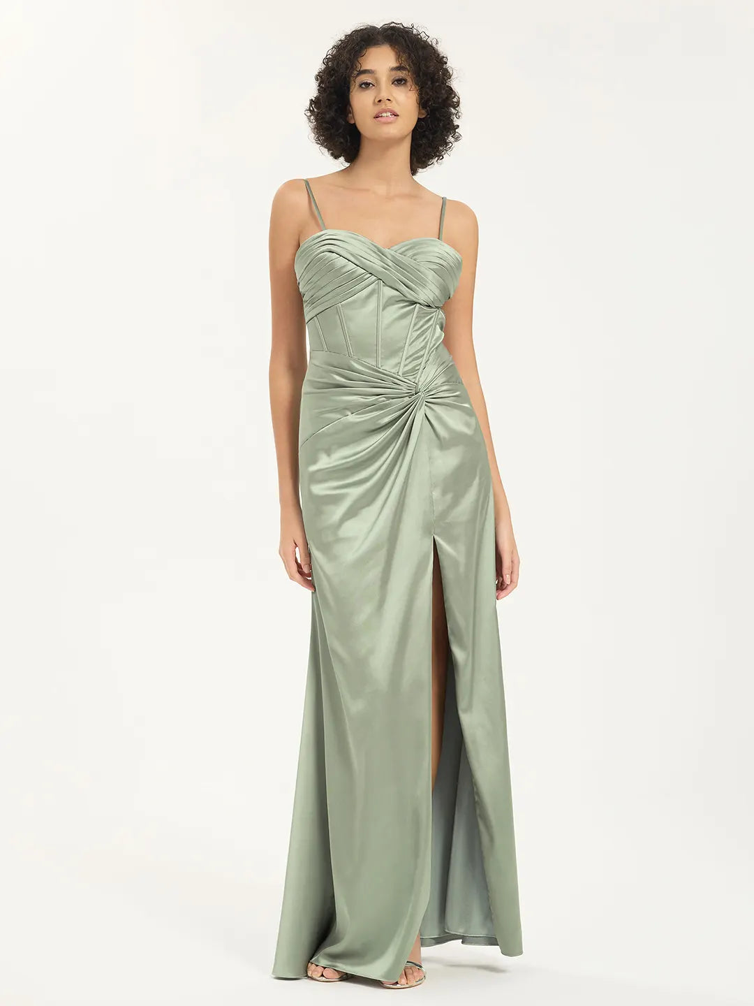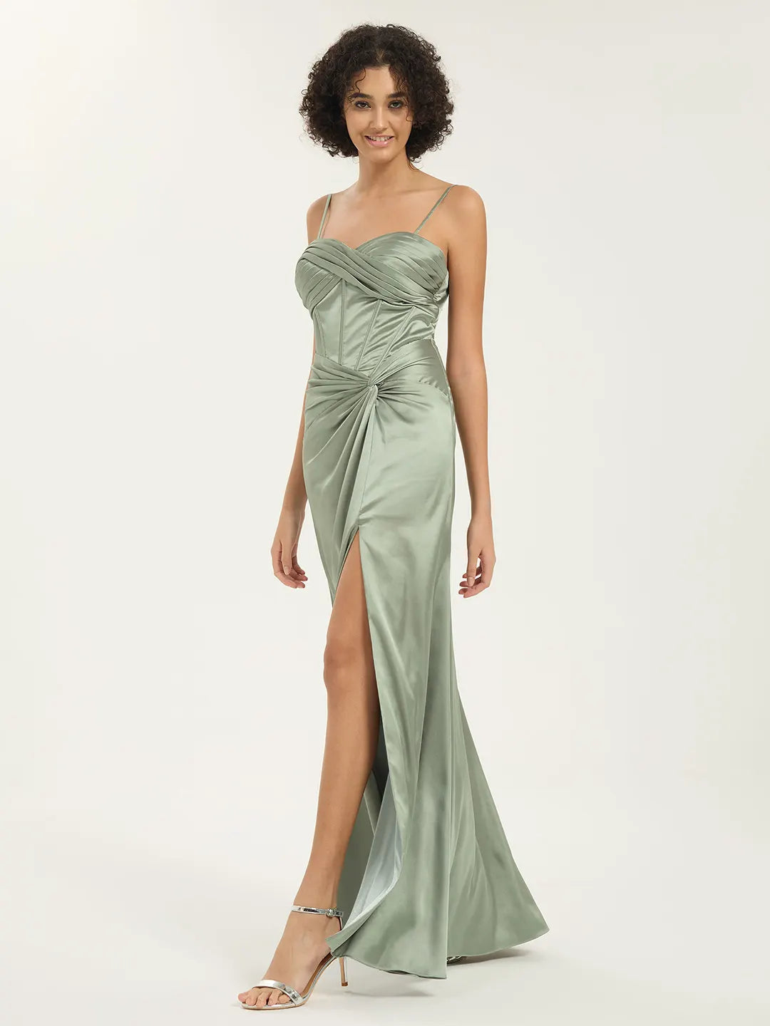 Sweetheart Satin Mermaid Prom Dress with Ruched Accents and Leg Slit