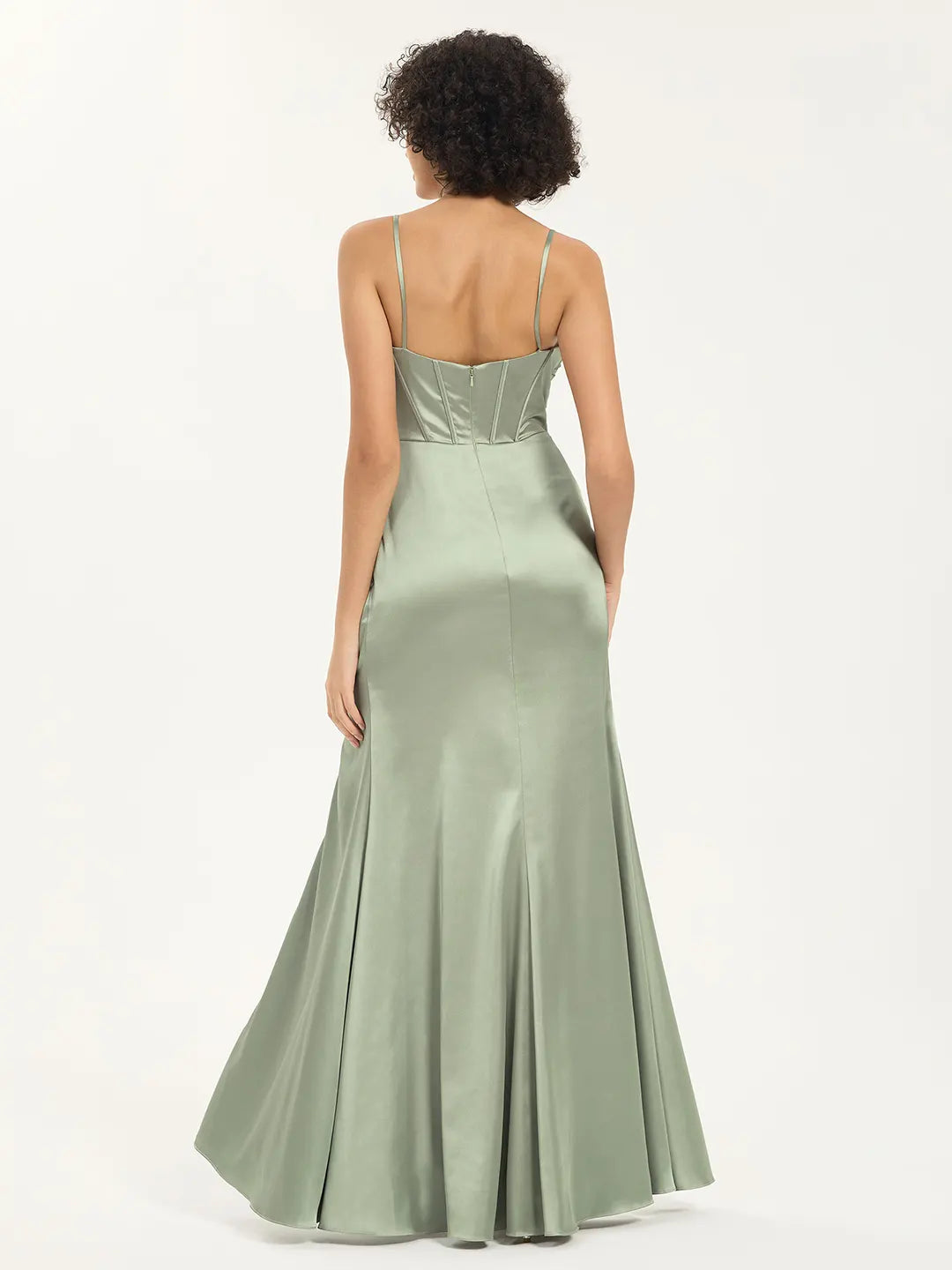Make a statement and step into the spotlight with the stunning Sweetheart Satin Mermaid Prom Dress. This elegant gown is perfect for prom, black-tie events, and upscale evening occasions, offering a sleek, figure-flattering design that exudes sophistication. The sweetheart neckline, combined with a ruched bodice, enhances your curves while maintaining a timeless, refined look. The daring leg slit adds an unexpected touch of allure, and the open back creates a chic, modern finish. Made from luxurious satin, this dress will leave everyone at the event in awe of your impeccable style.